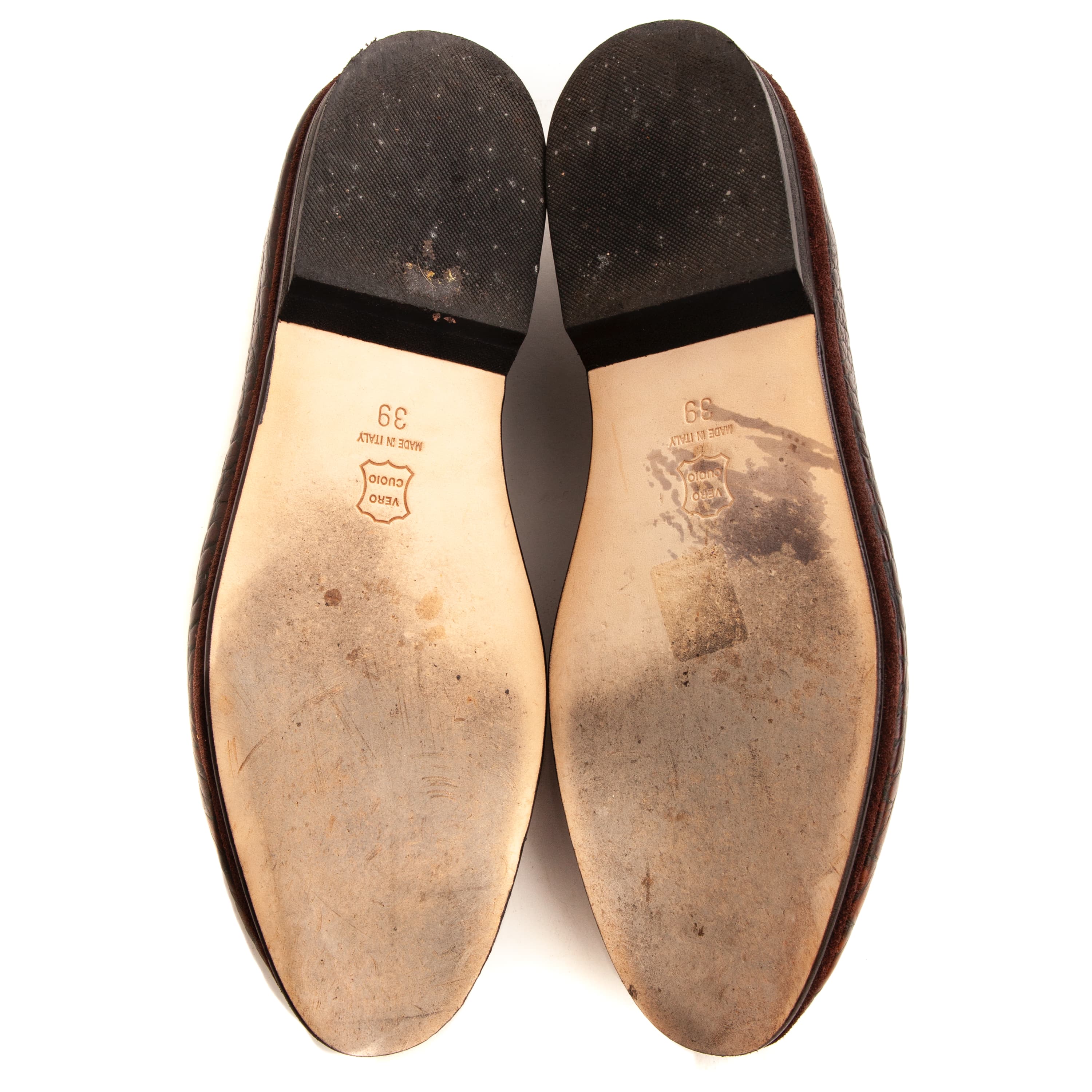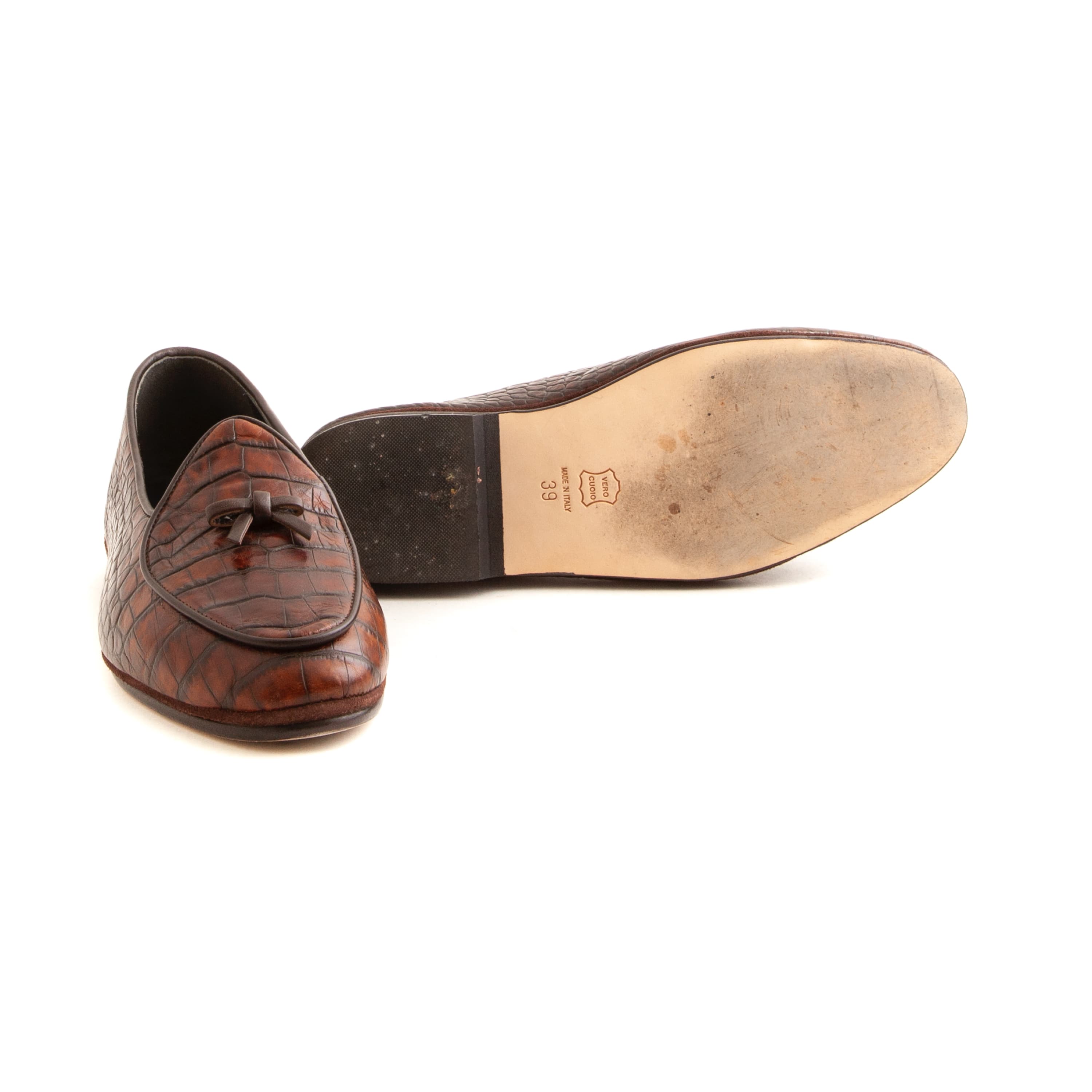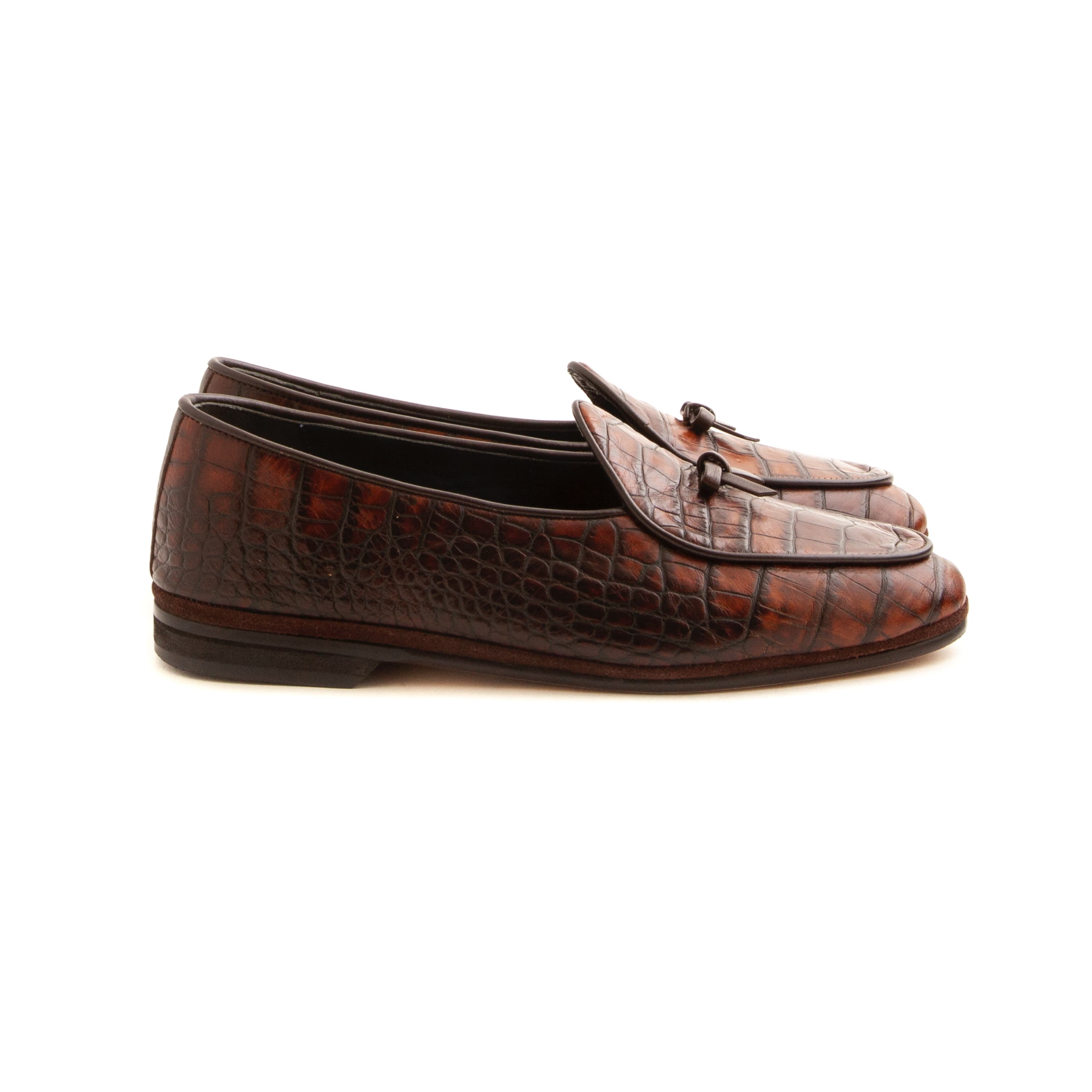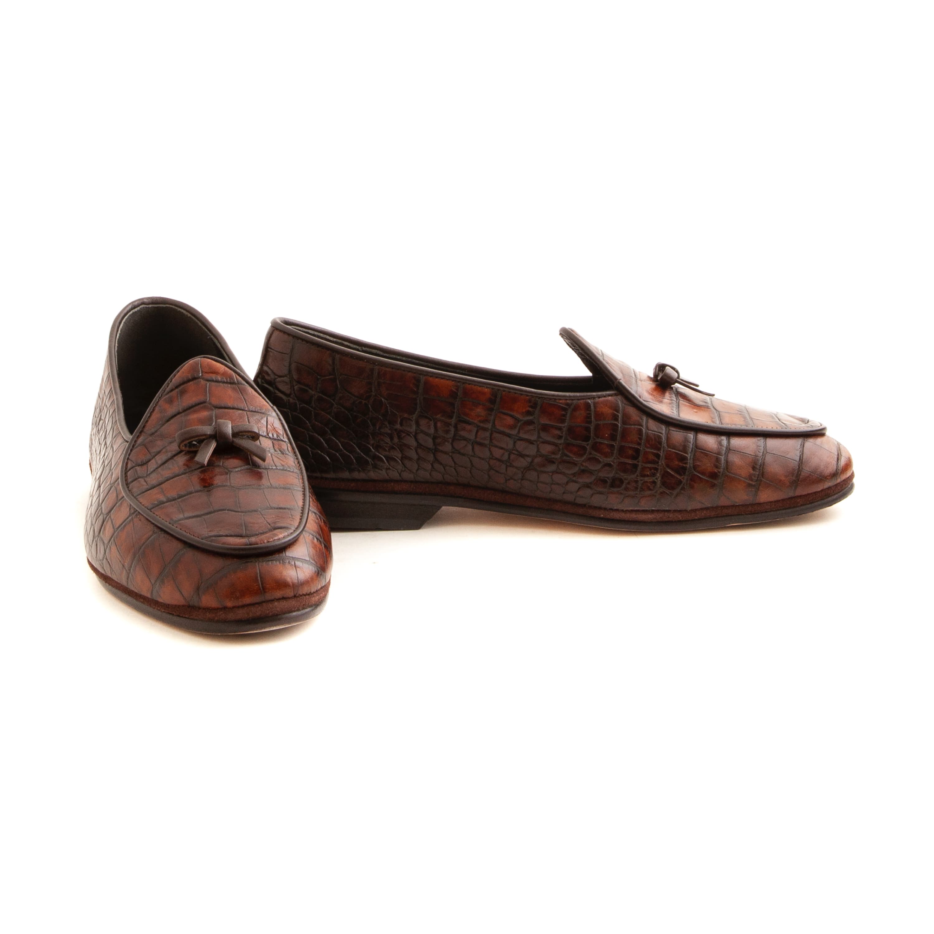 Cognac Faux Croc Calfskin, Single Leather Soles