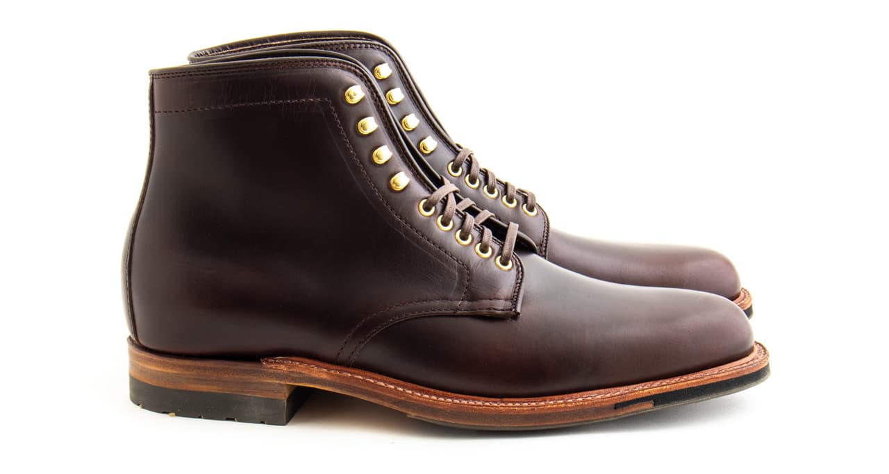 Our PT boot is a combination of a number of our favorite Alden things: brown Chromexcel leather, the Barrie last, commando soles, brass eyelets, and a plain toe. All told, these boots are extremely comfortable and stylish. Because they're made with Horween Chromexcel and lugged commando soles, they are as much at home on a hike as they are out to dinner.