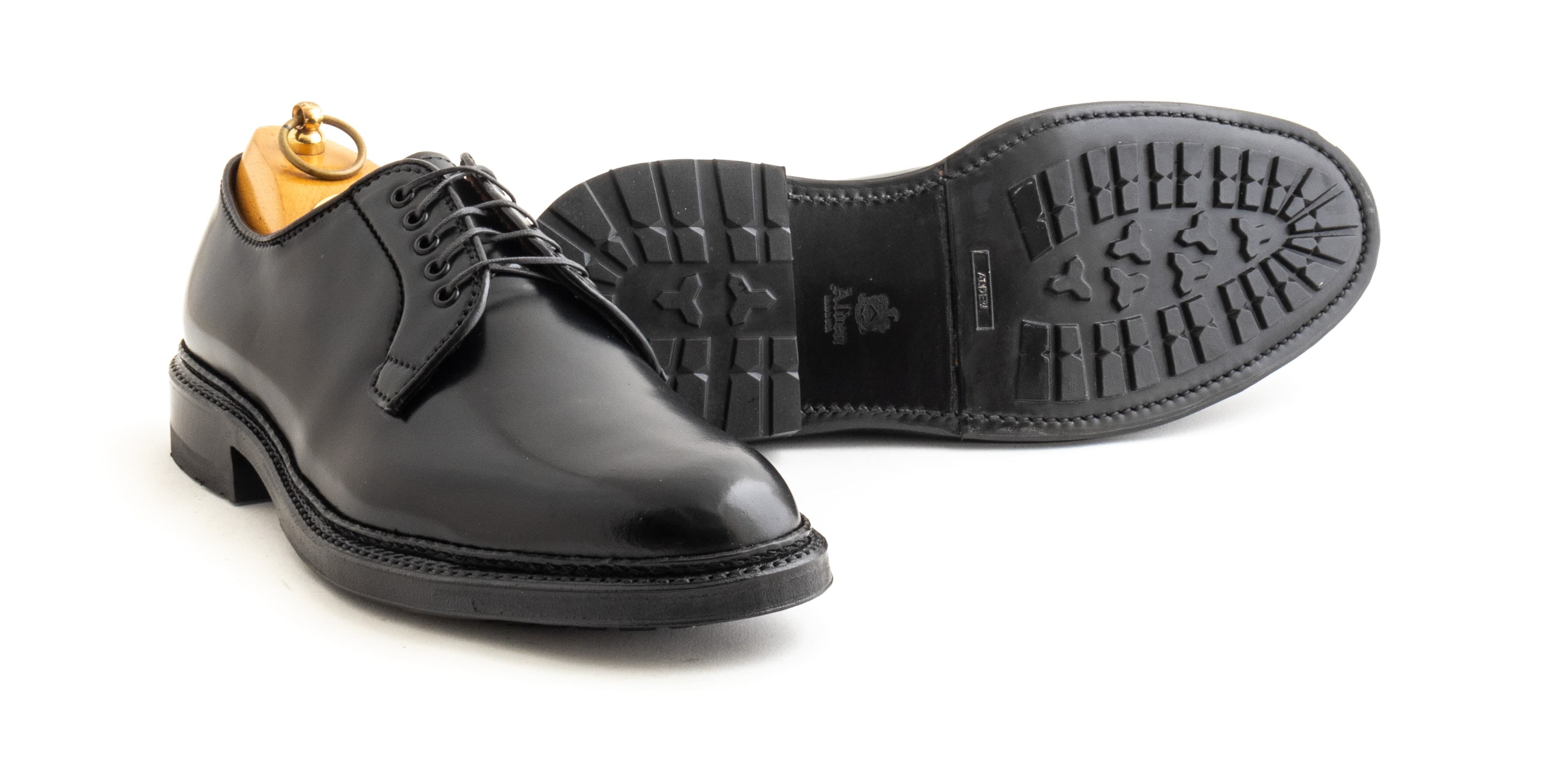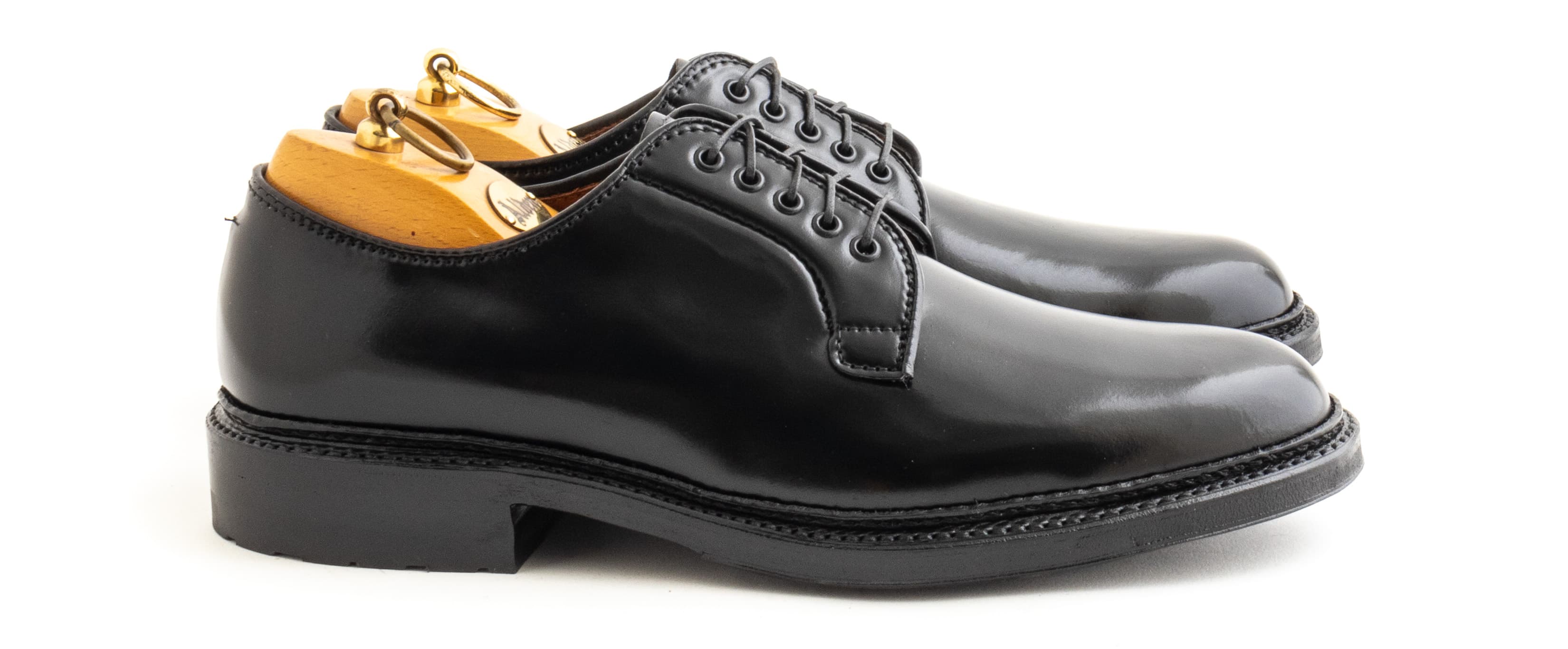 We designed this pair of Alden x Leffot black shell cordovan plain toe bluchers with versatility and ease of wear in mind. Made in lustrous Horween shell cordovan, which is long lasting and low maintenance, paired with rugged commando soles, they’ll take a beating and look good while they’re doing it.
