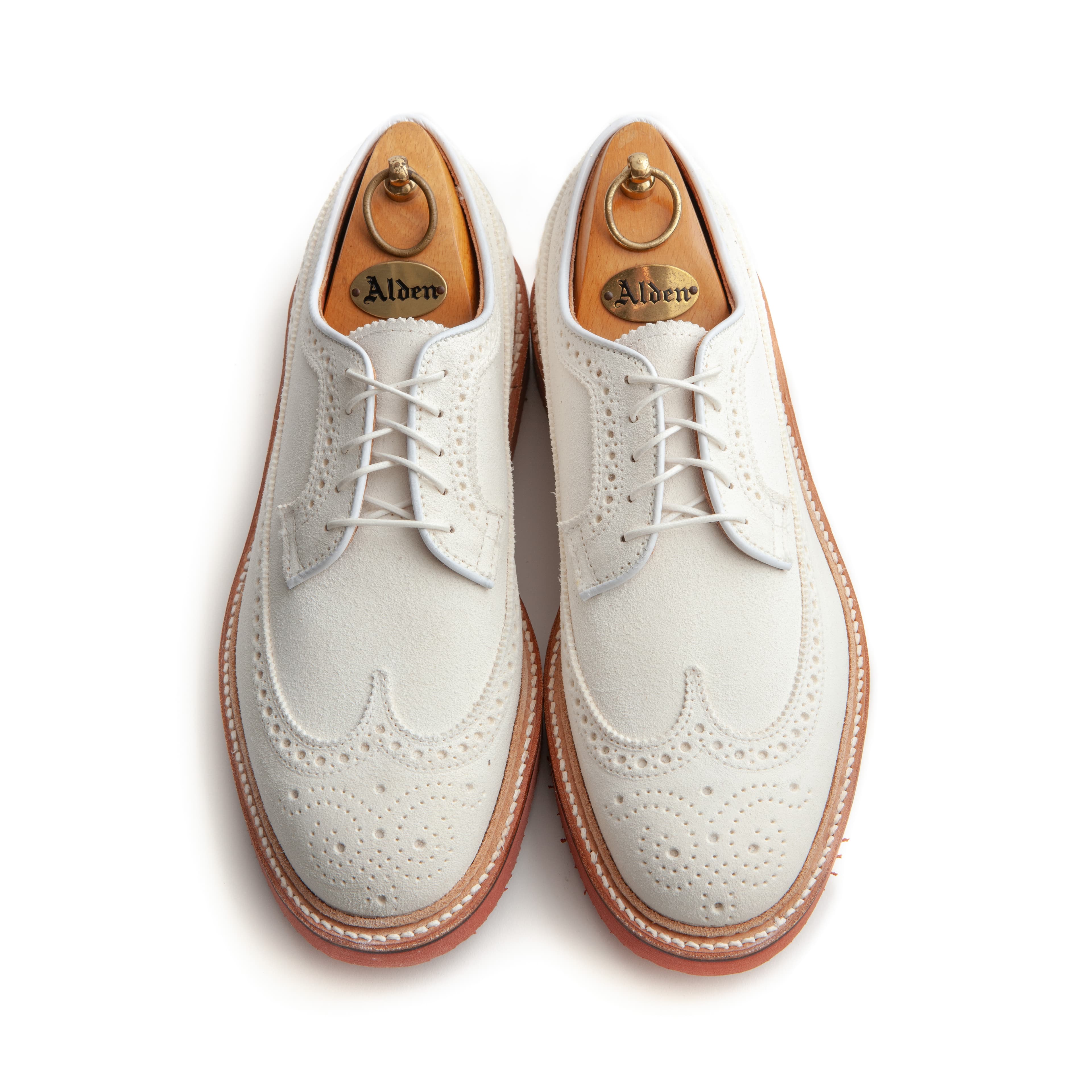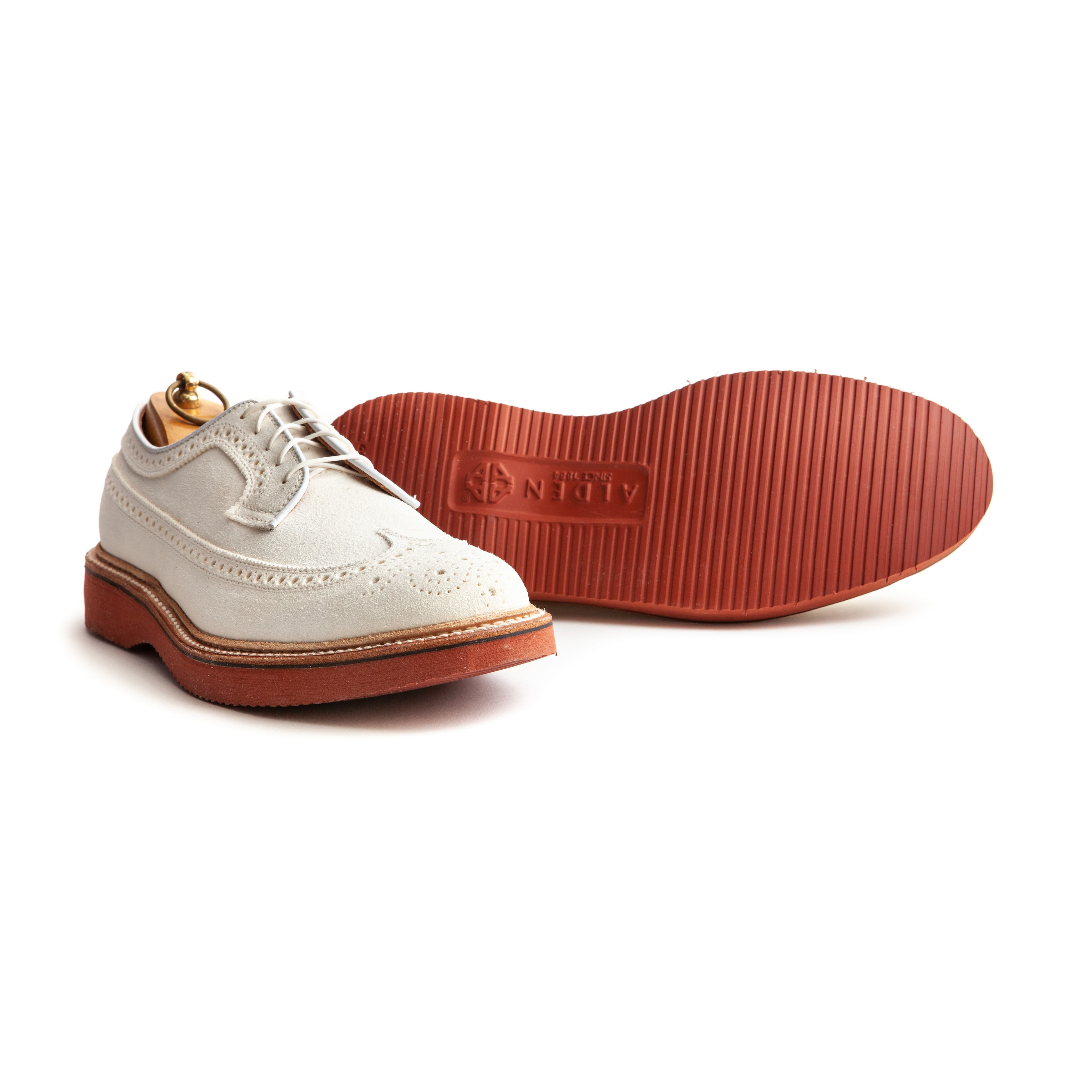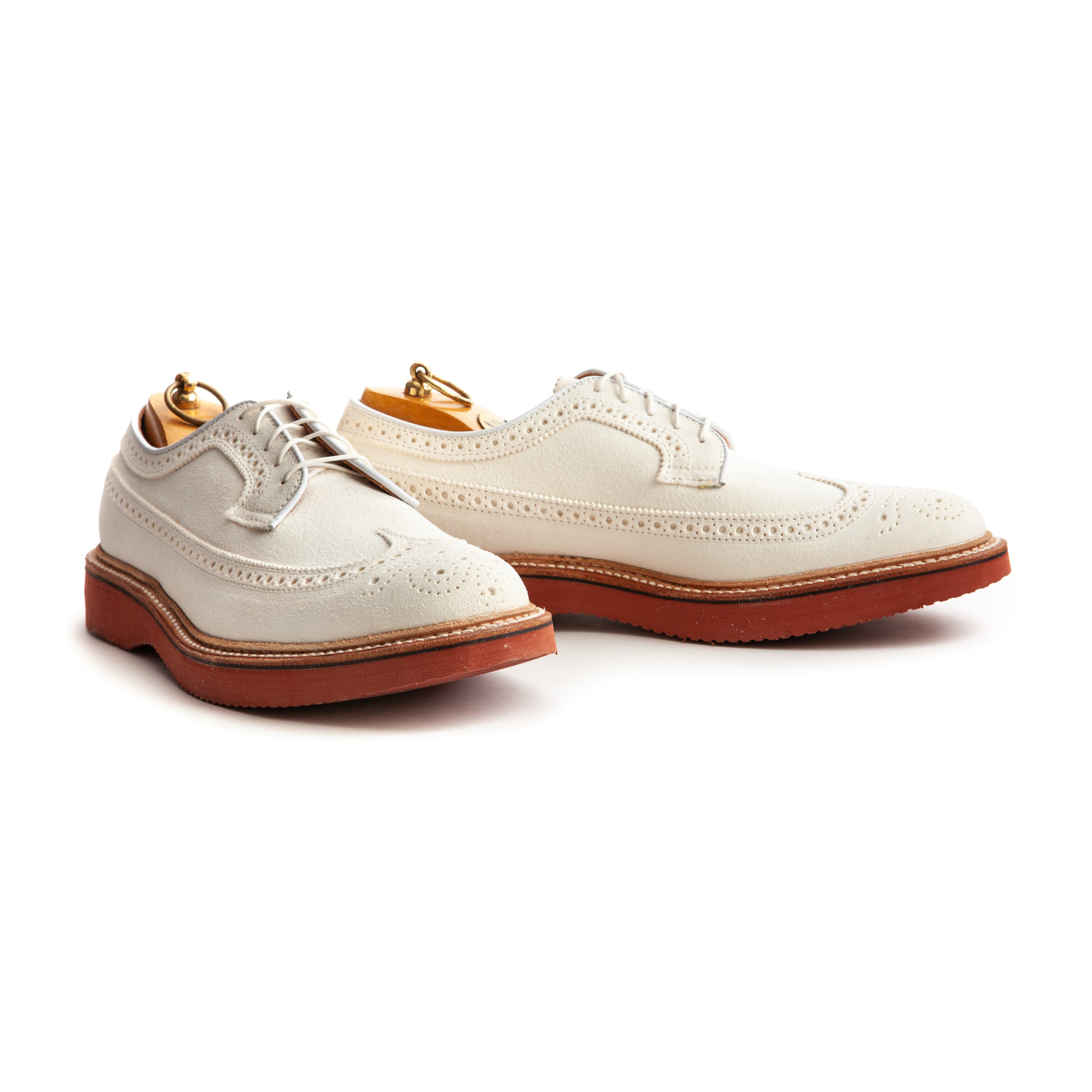 This pair of longwings is a fresh take on the classic derby. Made in ivory suede on red wedge soles, they’ll be perfect this summer with a pair of chinos or denim.