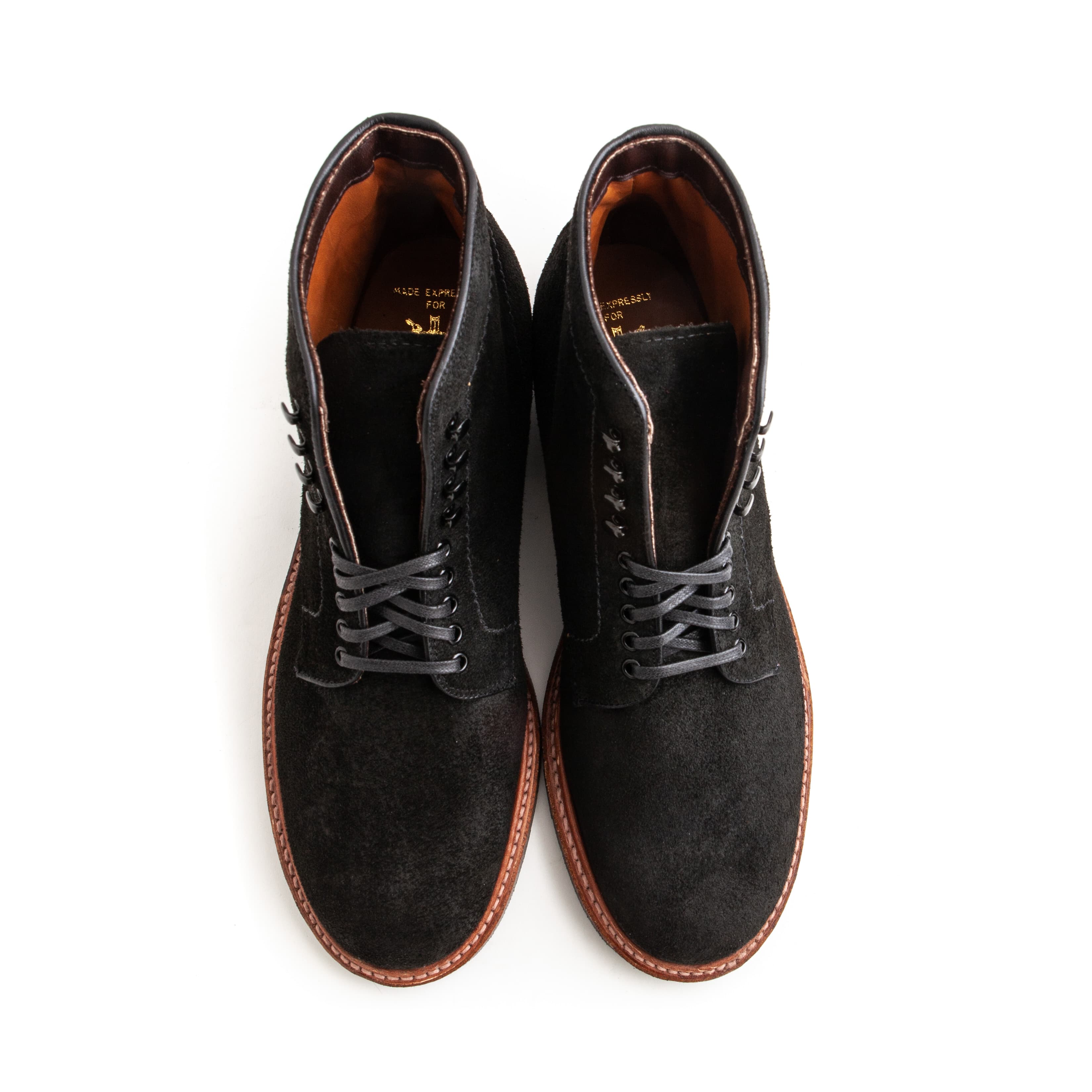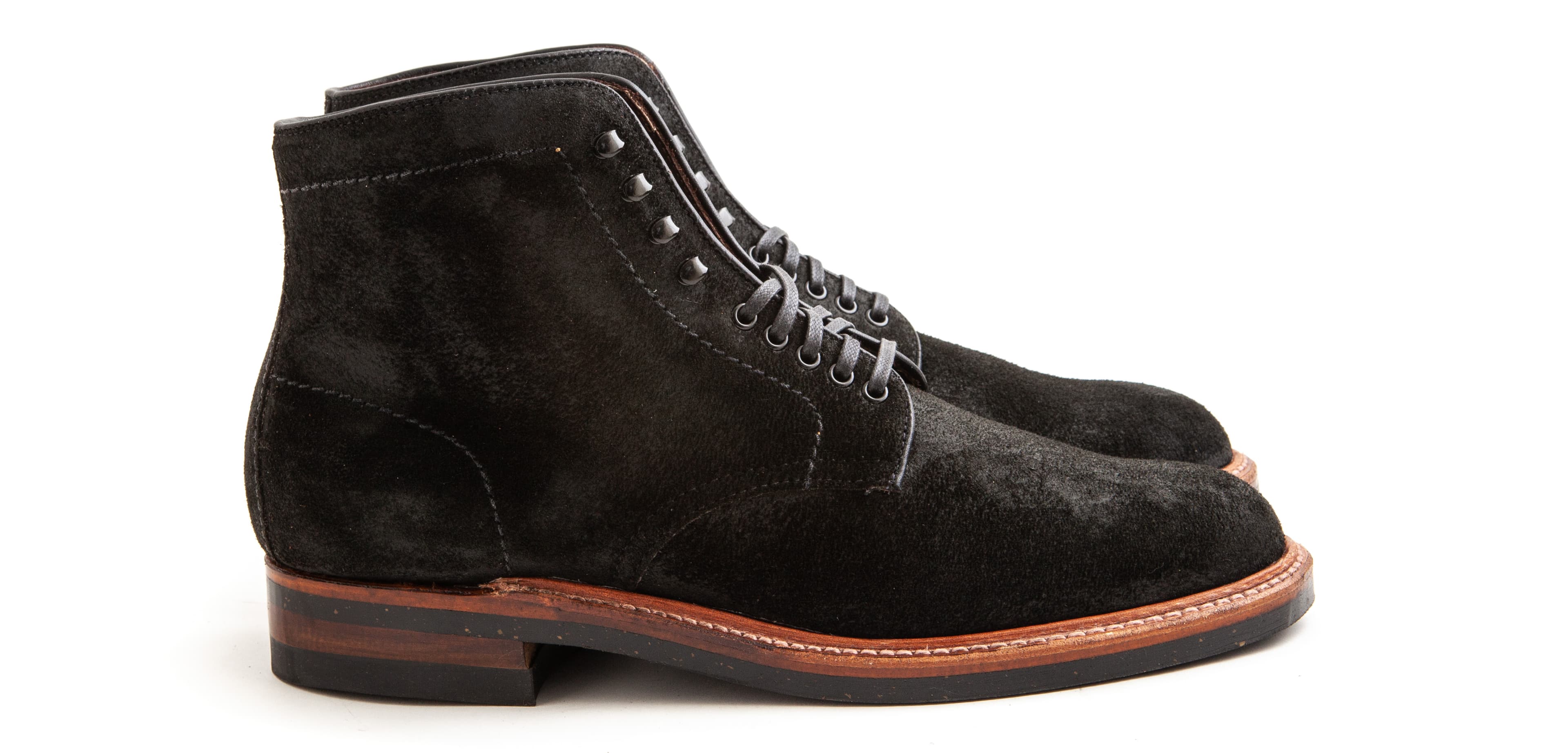 We’ve made this plain toe boot in reverse earth chamois on black neocork soles. They’re an ode to work boots of old, but made in a contemporary style. Wear them with jeans or chinos for an easy, casual look.