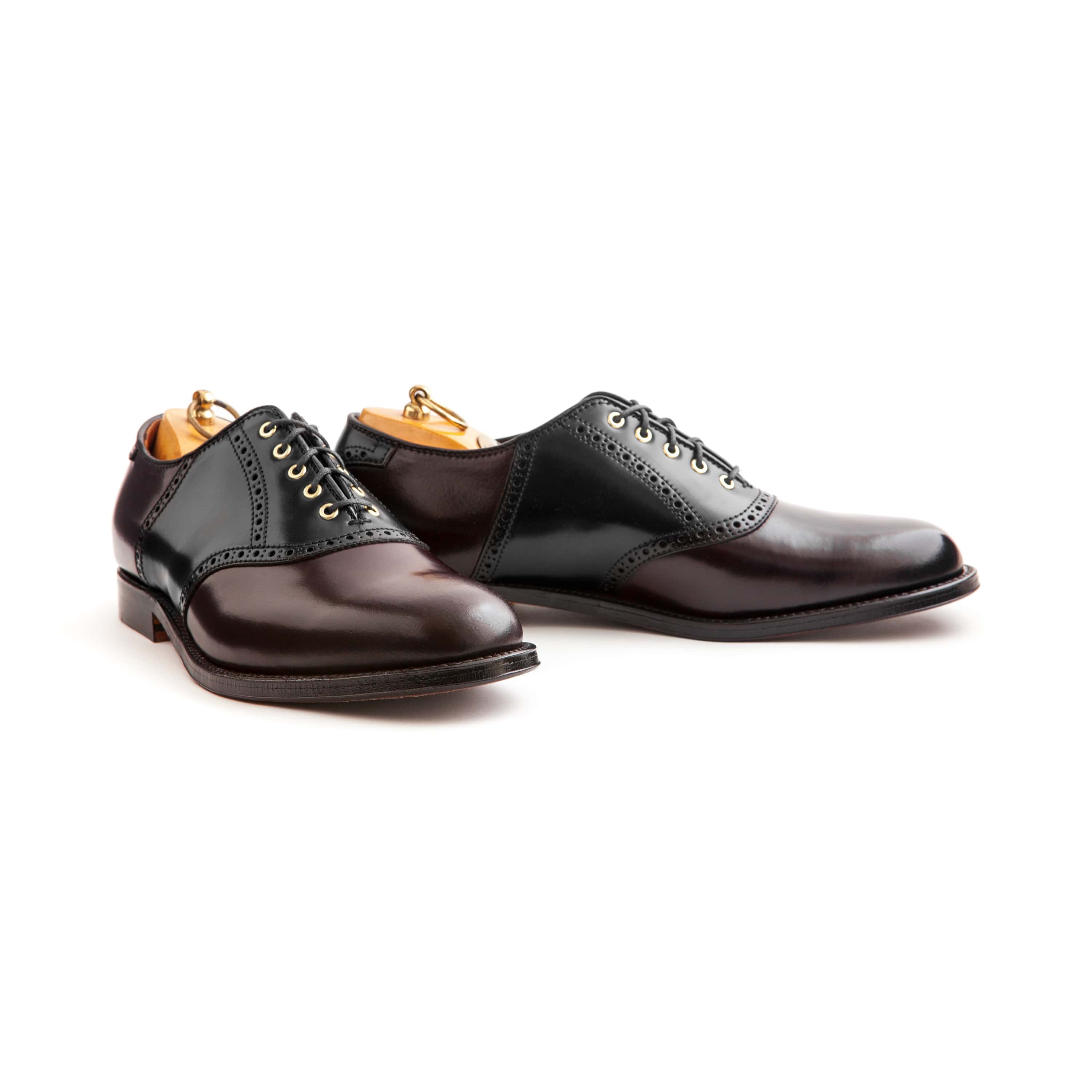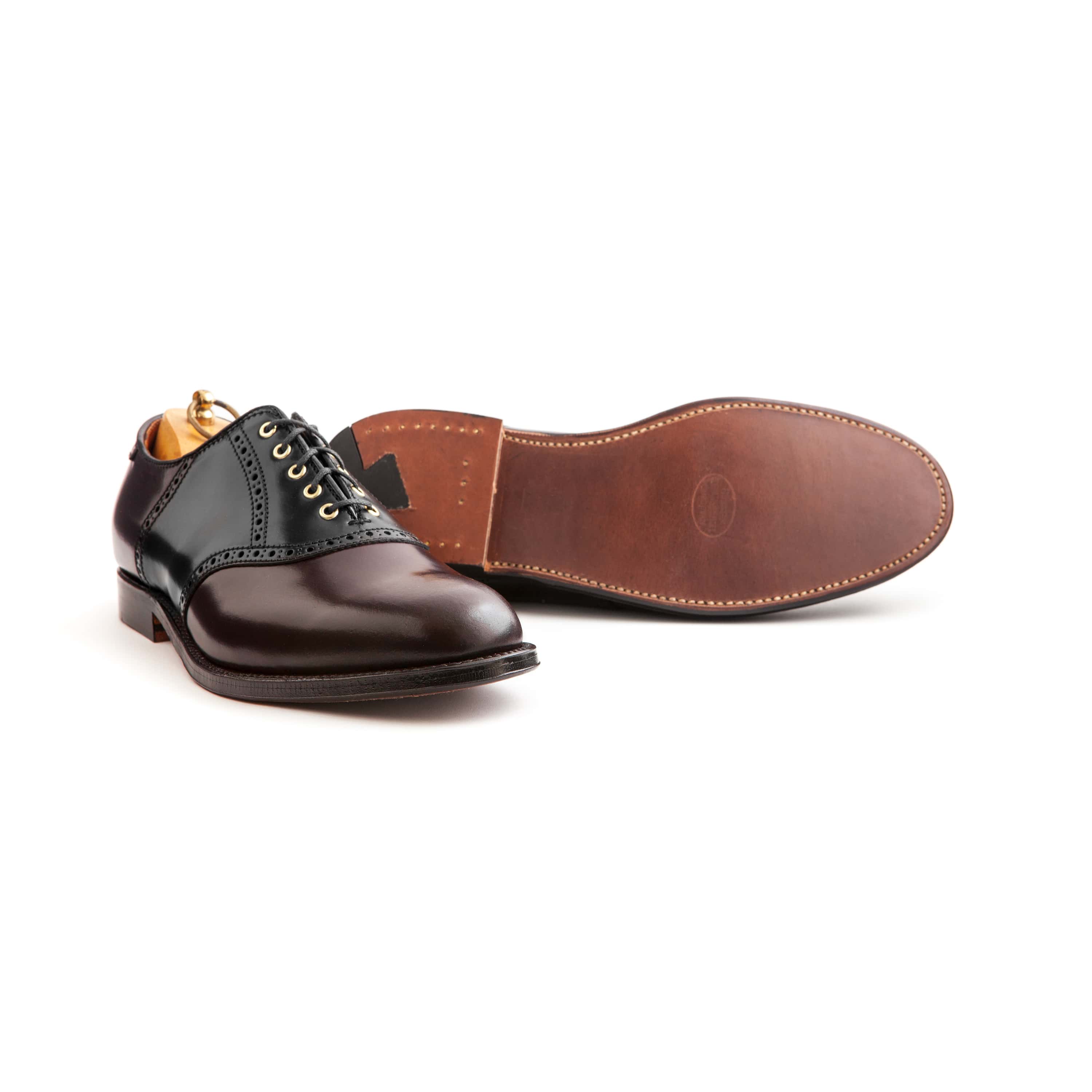 These preppy pairs are made for us on the Barrie last in Color 8 Shell Cordovan with a Black Shell Cordovan saddle, brass eyelets, and oil-soaked flex soles. They’re light as a feather and look great with jeans and khakis, as well as gray or navy slacks.