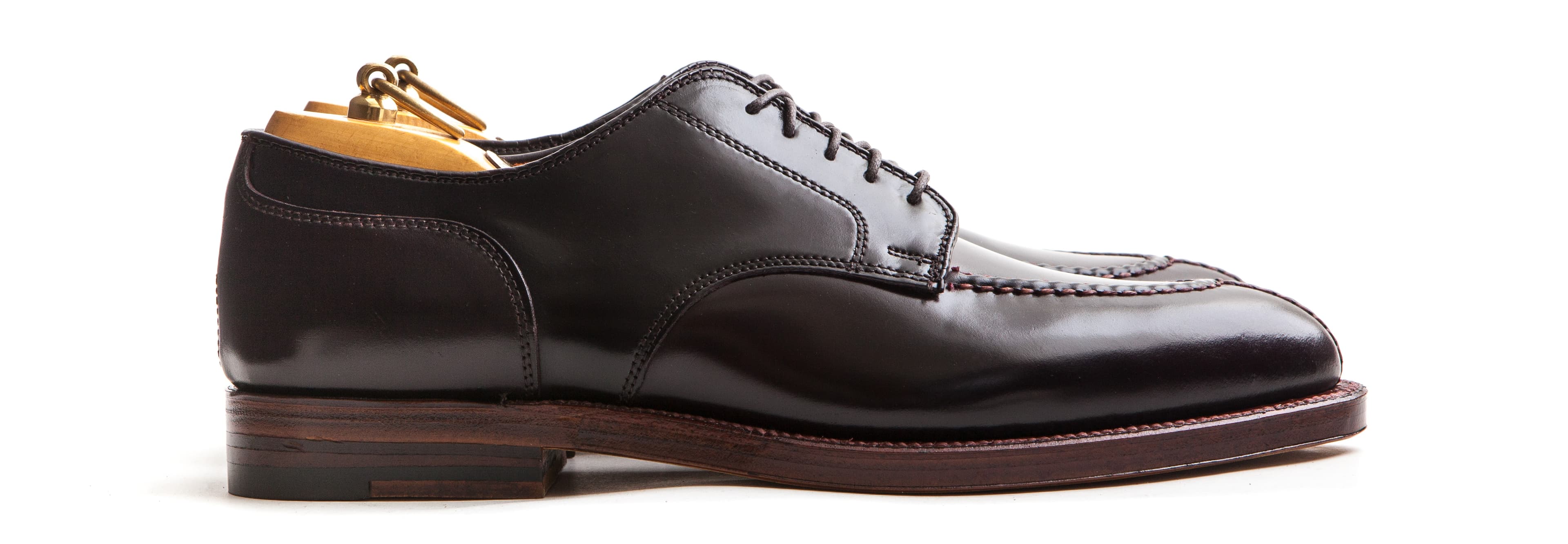 Split toes have no cap, no wing, and no broguing, but they’re still a classic shoe that deserves a place in every wardrobe. This is Alden’s classic NST, or Norwegian Split Toe. We’ve made it in color 8 shell cordovan with an antique edge for a twist.