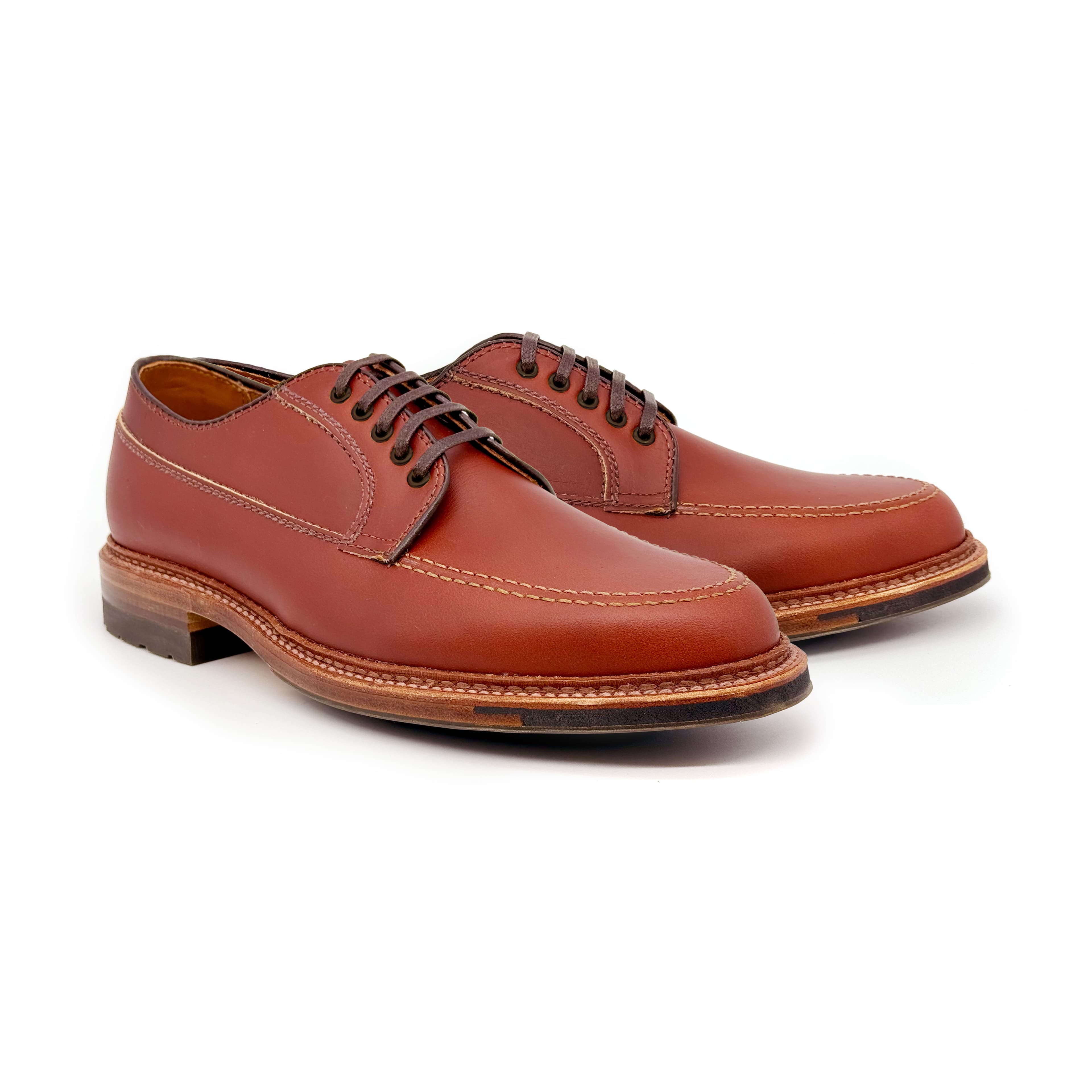 The Ranger Moc is a derby version of Alden’s iconic Indy boot. This pair is made in mahogany calfskin on the Van last. Paired with commando soles, they are a rugged, casual shoe that can be paired with jeans, khakis, or camo trousers.