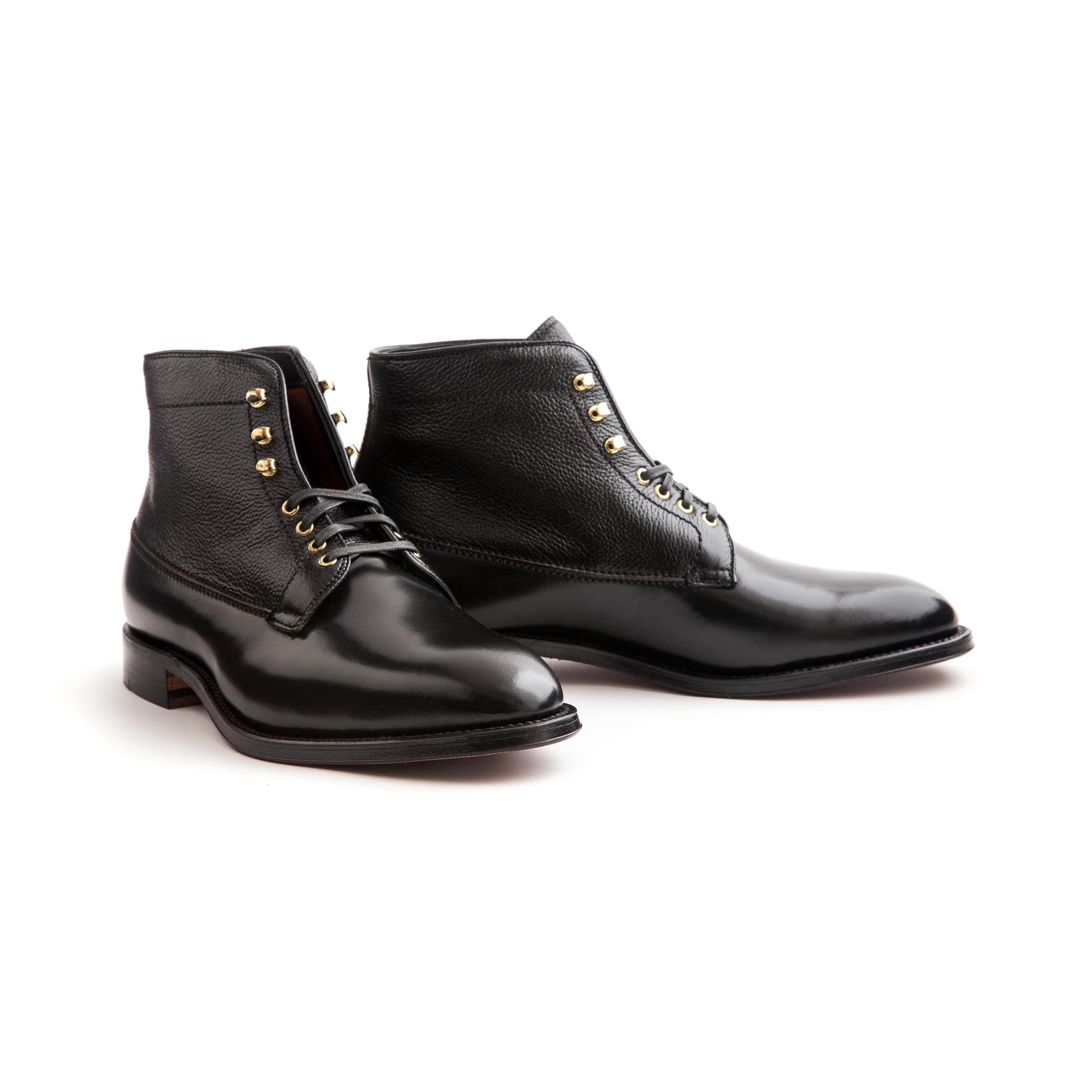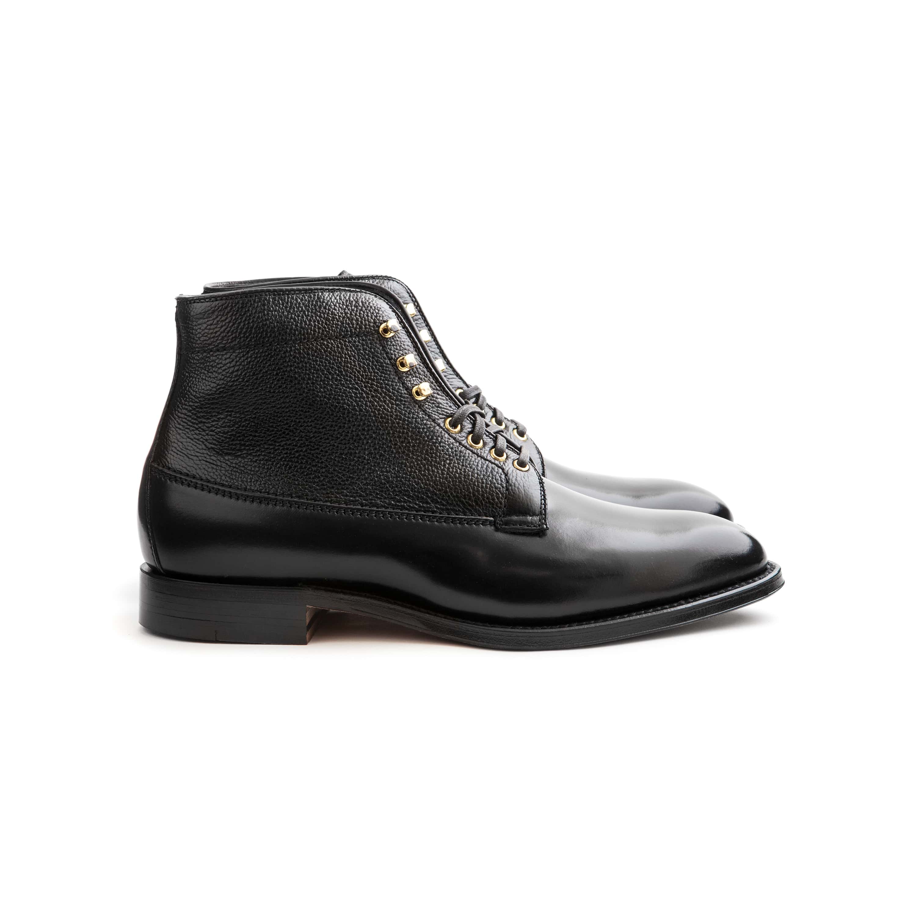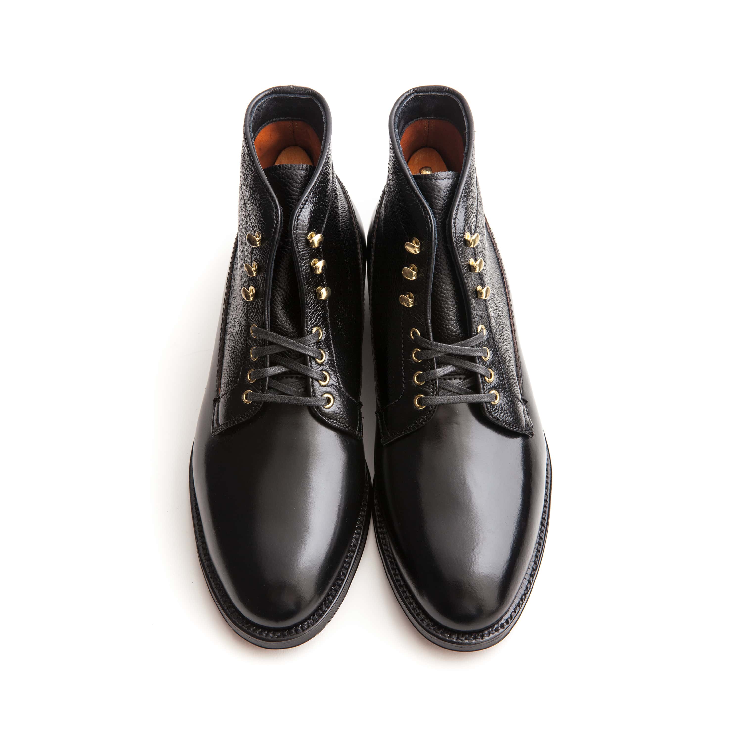 Made in black shell cordovan and black Regina calf on the Hampton last, these boots are an elegant, dressy alternative to a pair of cap toe oxfords or longwings.