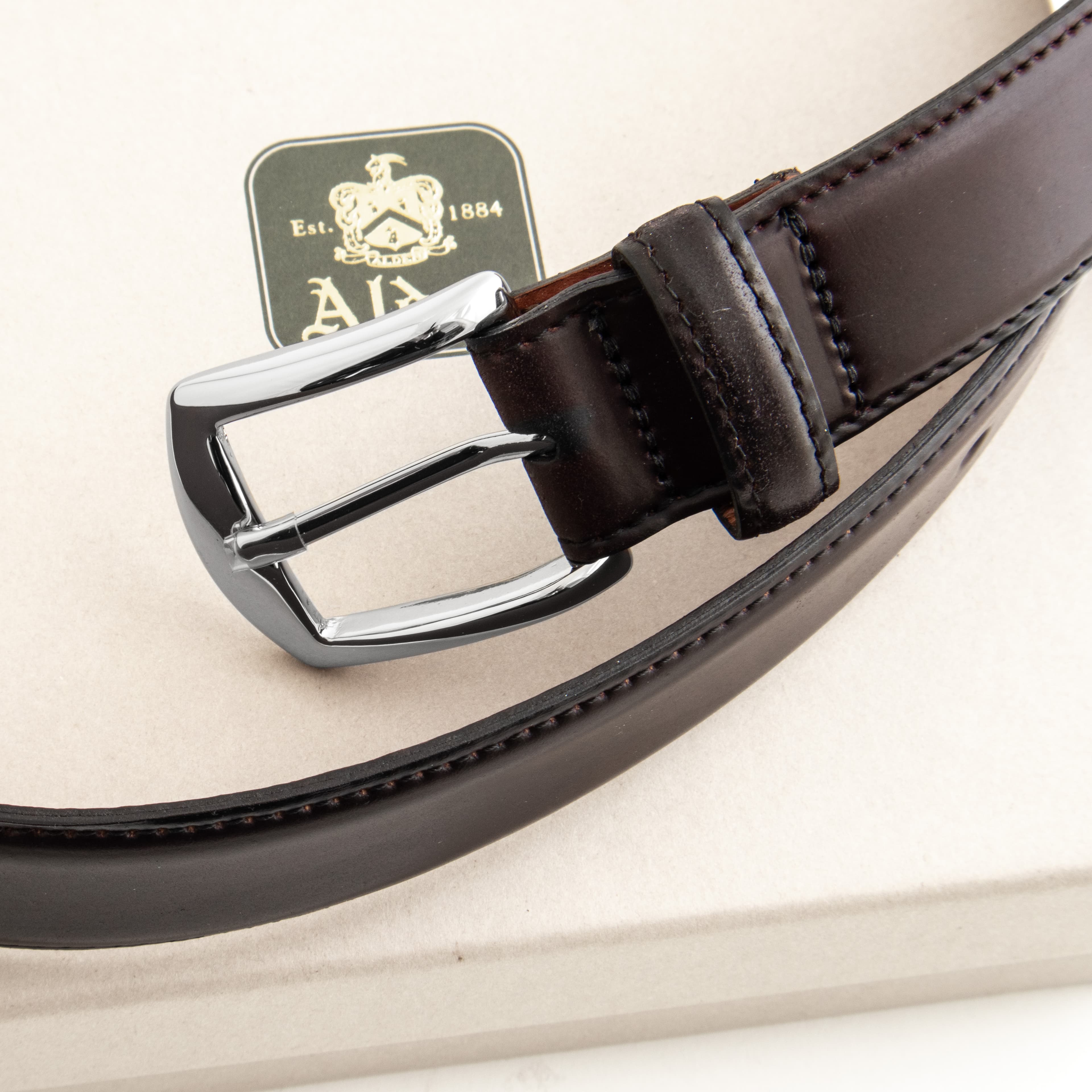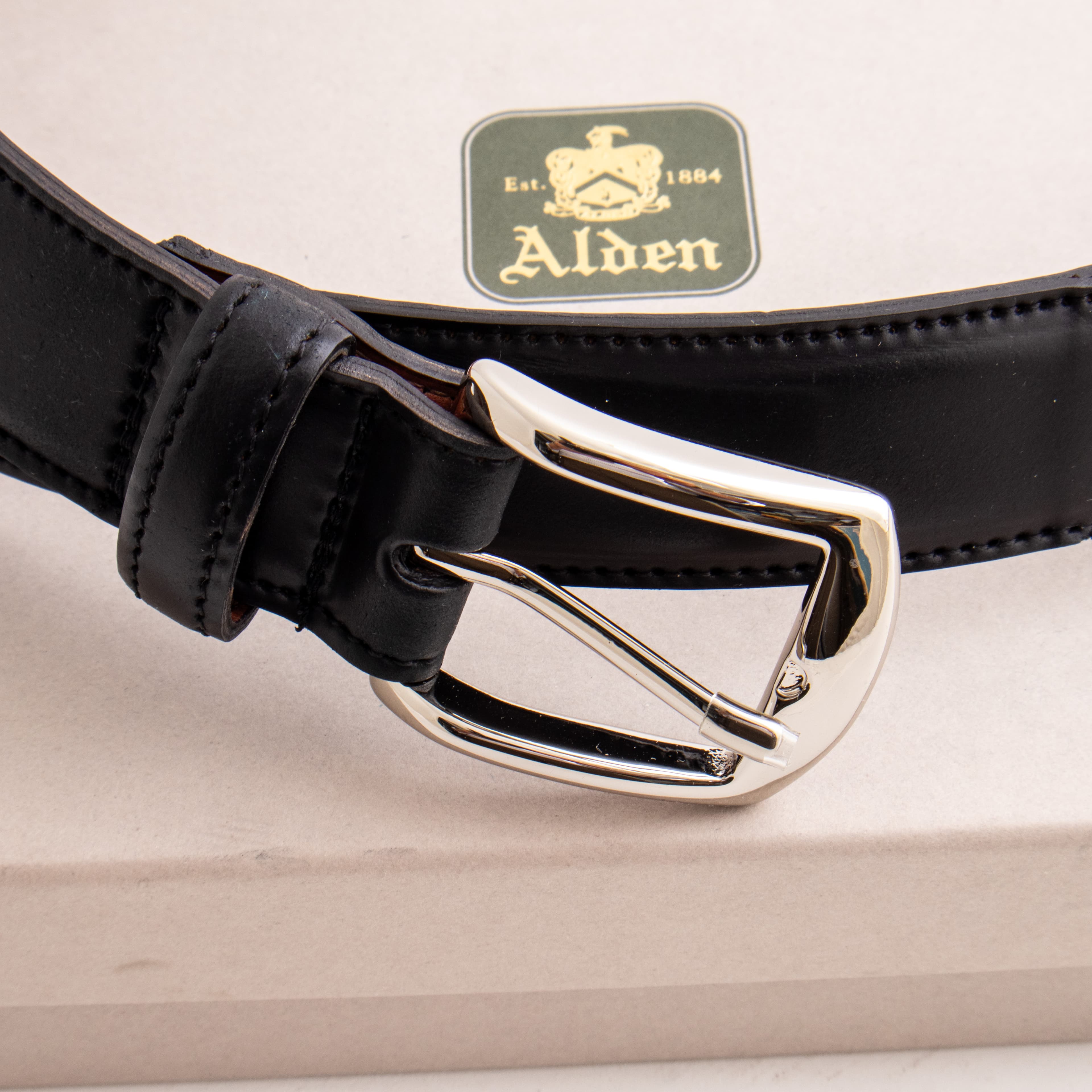 Alden’s black belt is made in the US from shell cordovan. It pairs perfectly with their black shoes, boots, and loafers.