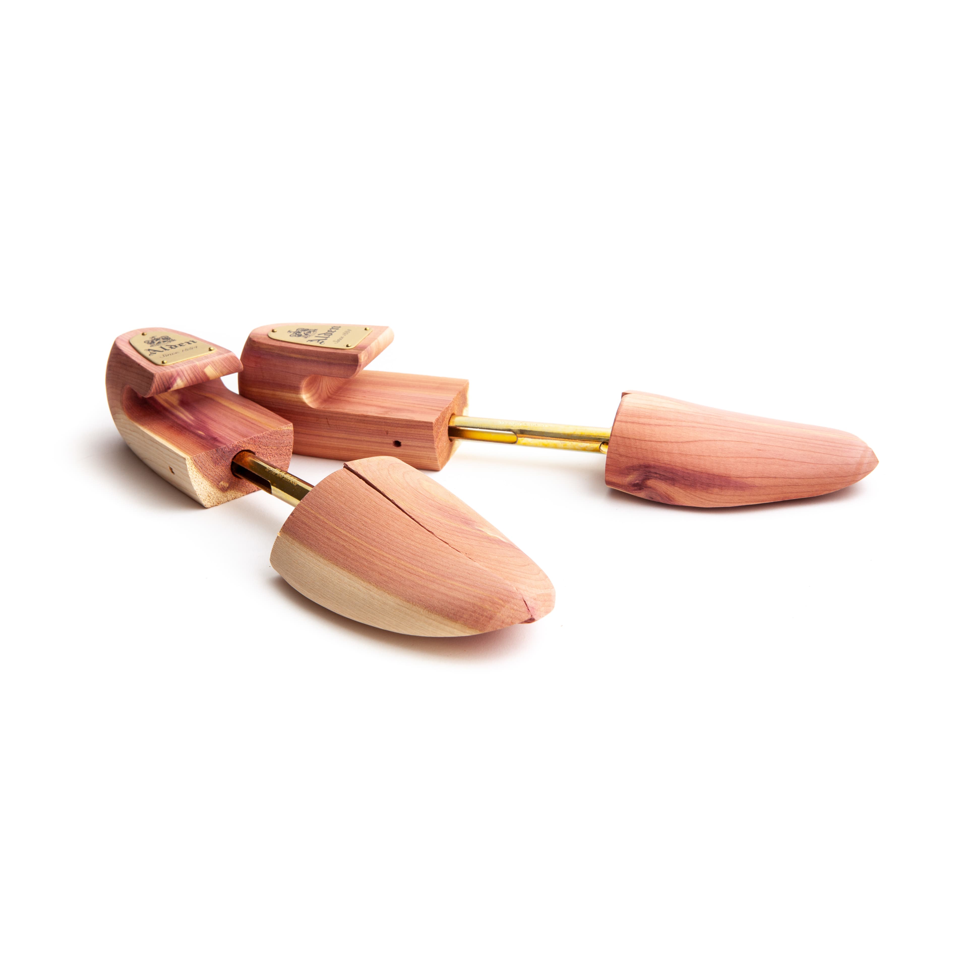Cedar shoe trees play a vital role in protecting fine shoes. Combining an overhang heel with an expandable split toe this highly functional tree is the perfect fit for all styles of footwear.