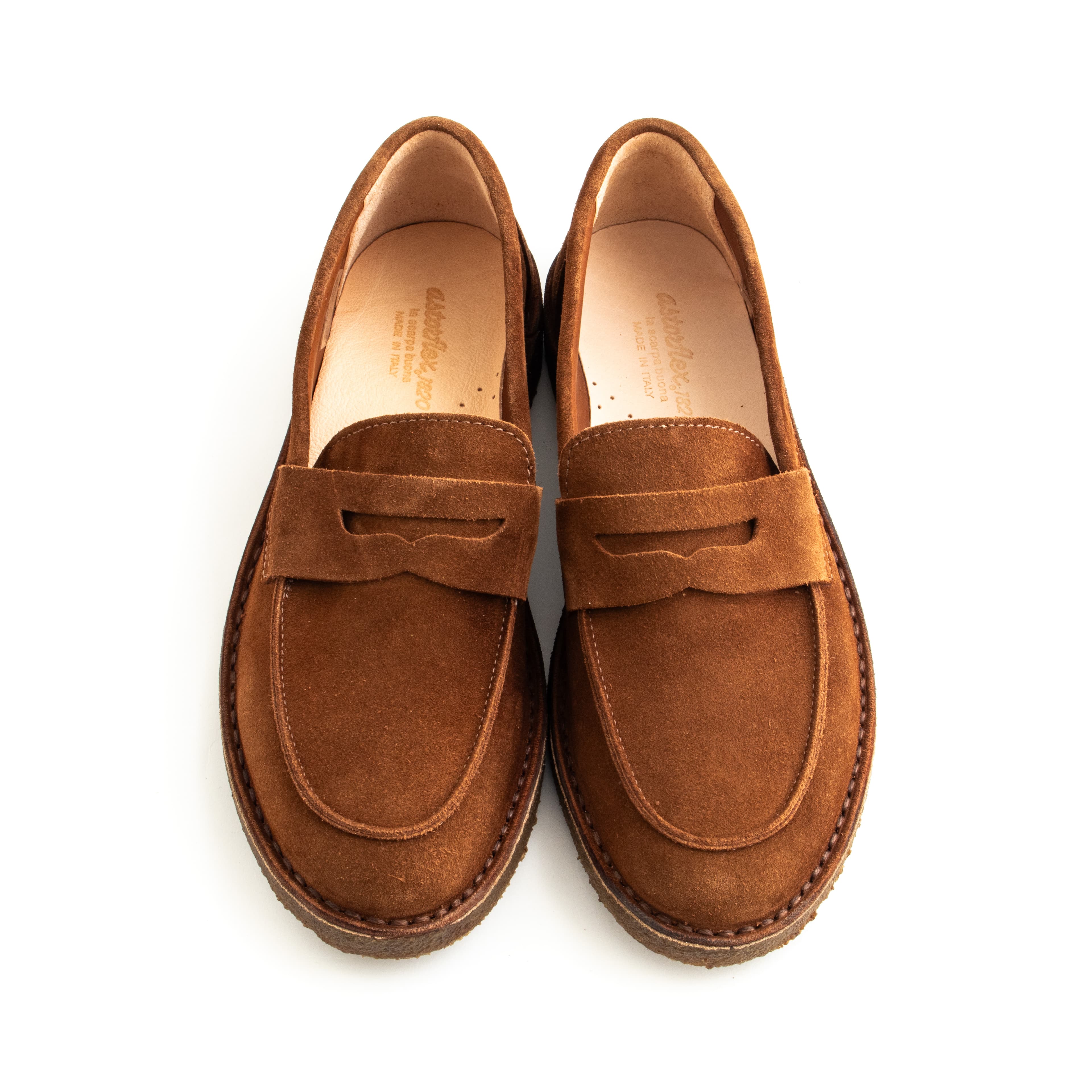The Saddleflex is a soft, flexible penny loafer handmade by Astorflex in Italy. With comfortable natural rubber soles and supple suede uppers, they’re easy to wear with soft, casual tailoring or jeans and a t-shirt.