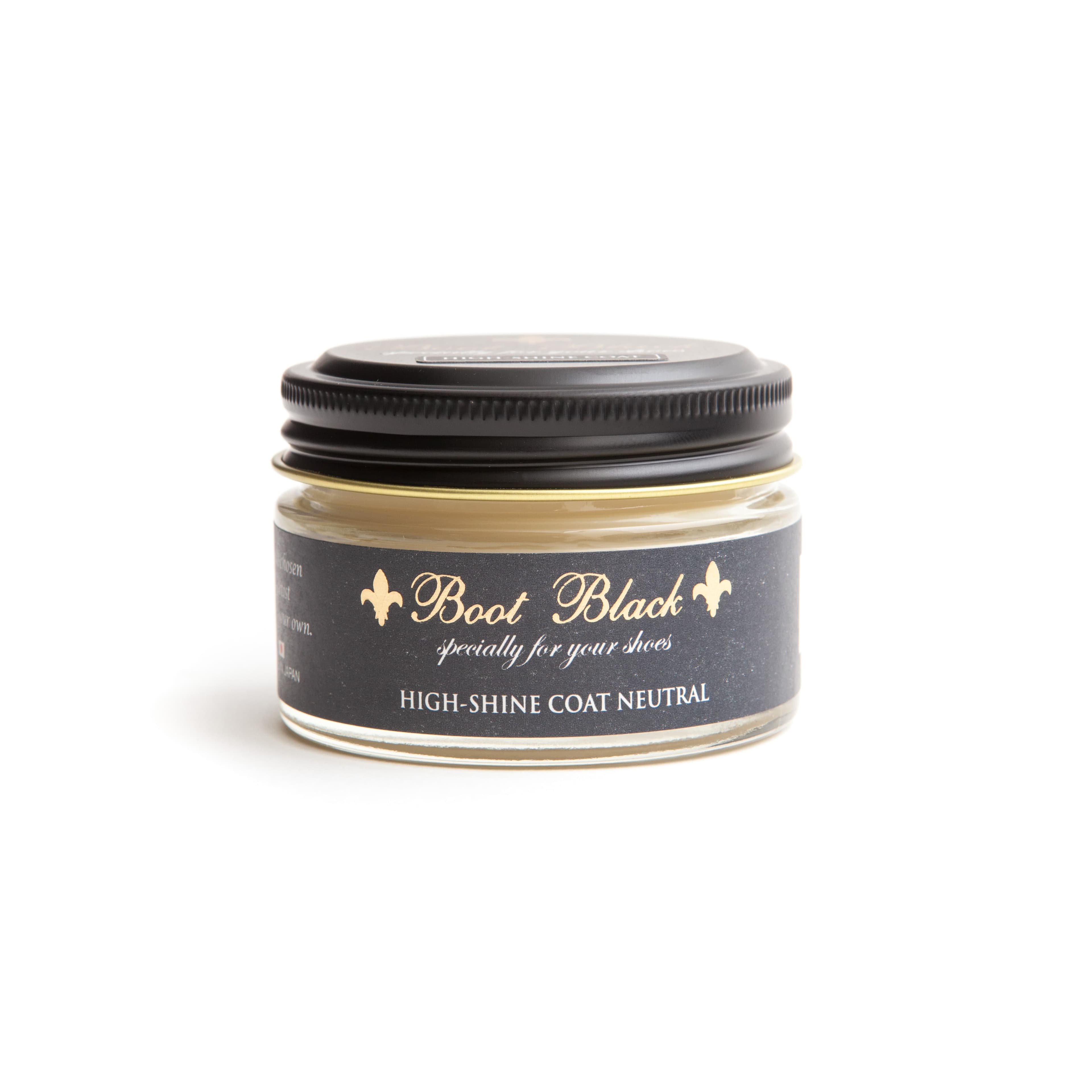 Boot Black High Shine Coat, used in conjunction with High Shine Base and Polish Water, creates a brilliant mirror shine on your shoes. Once you’ve applied High Shine Base, alternate the High Shine Coat with Polish Water to bring your shoes to a mirror shine.
