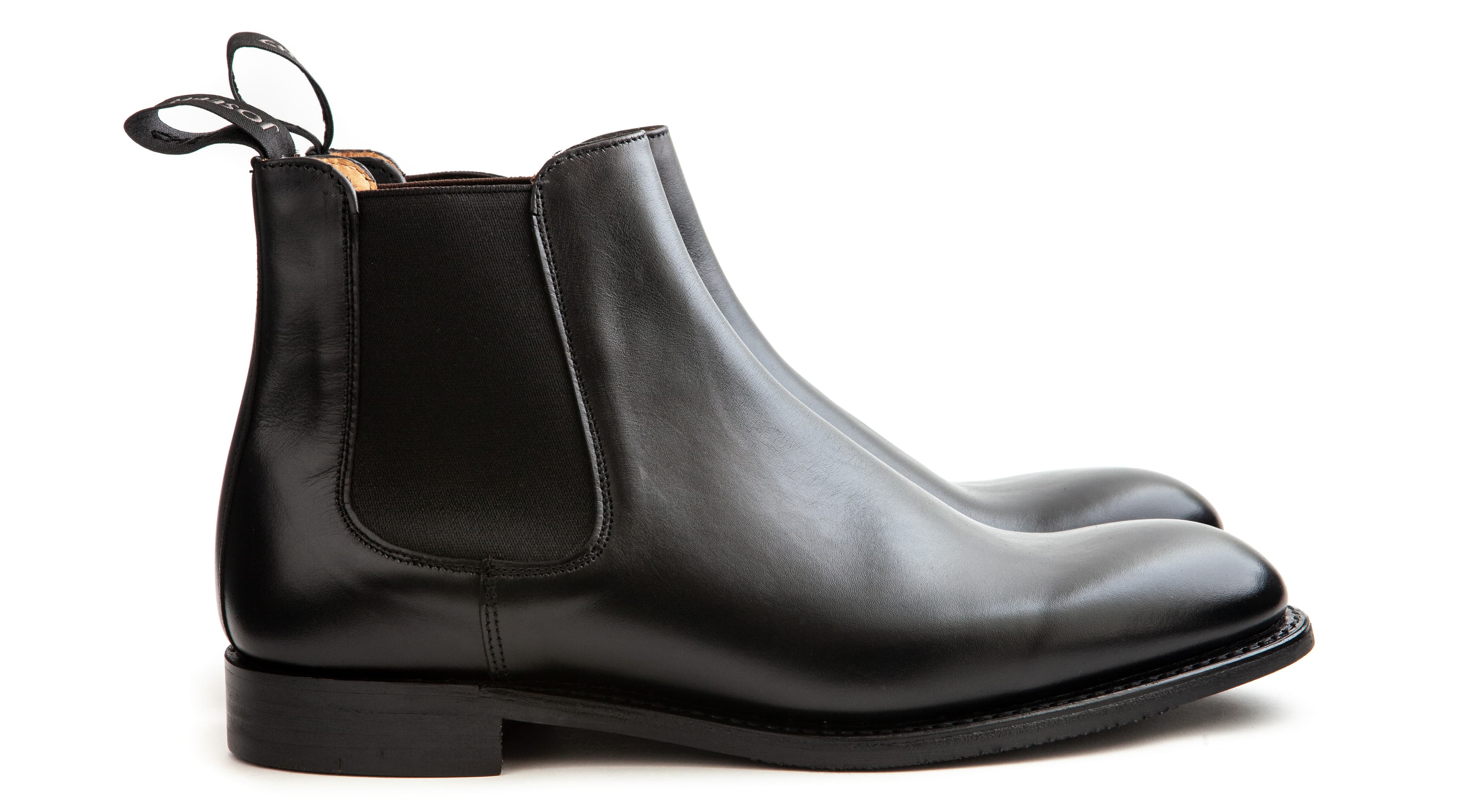 If you’re looking for something you can slip on and off with ease, a Chelsea boot surely fits the bill. Made in black calfskin with diamond rubber soles, the Godfrey has an elongated almond toe and sleek silhouette that exhibits the best of English style.