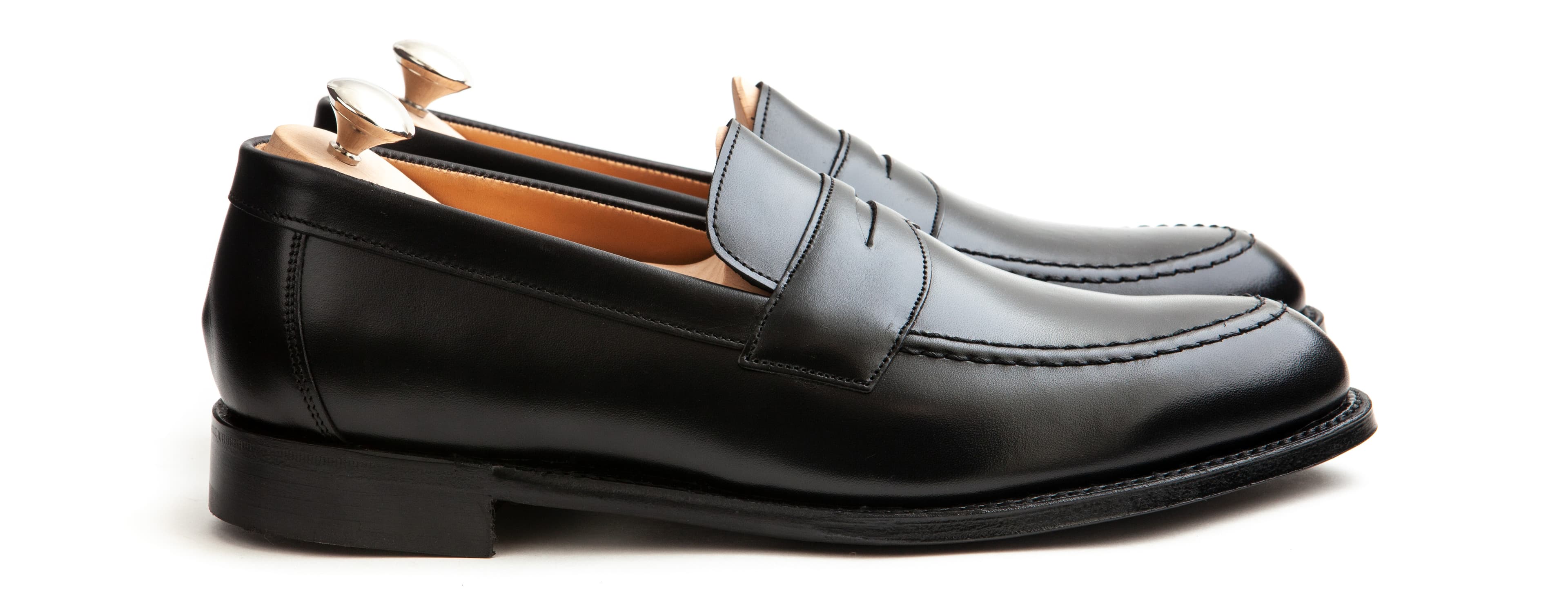 The Hadley is a modern penny loafer. Made on the 146 last, which has an almond toe and elongated body, it is fully lined and features black calf and single leather soles.
