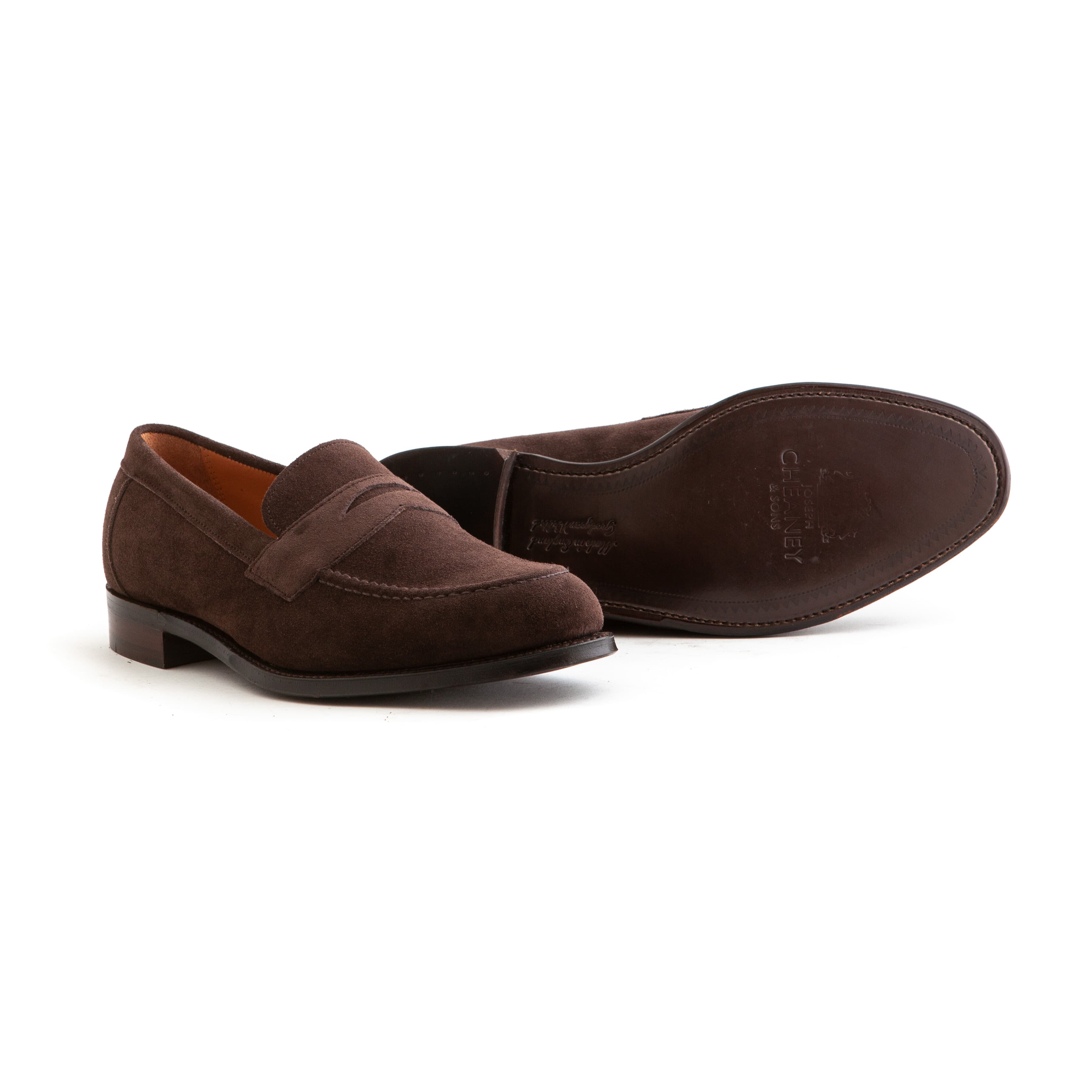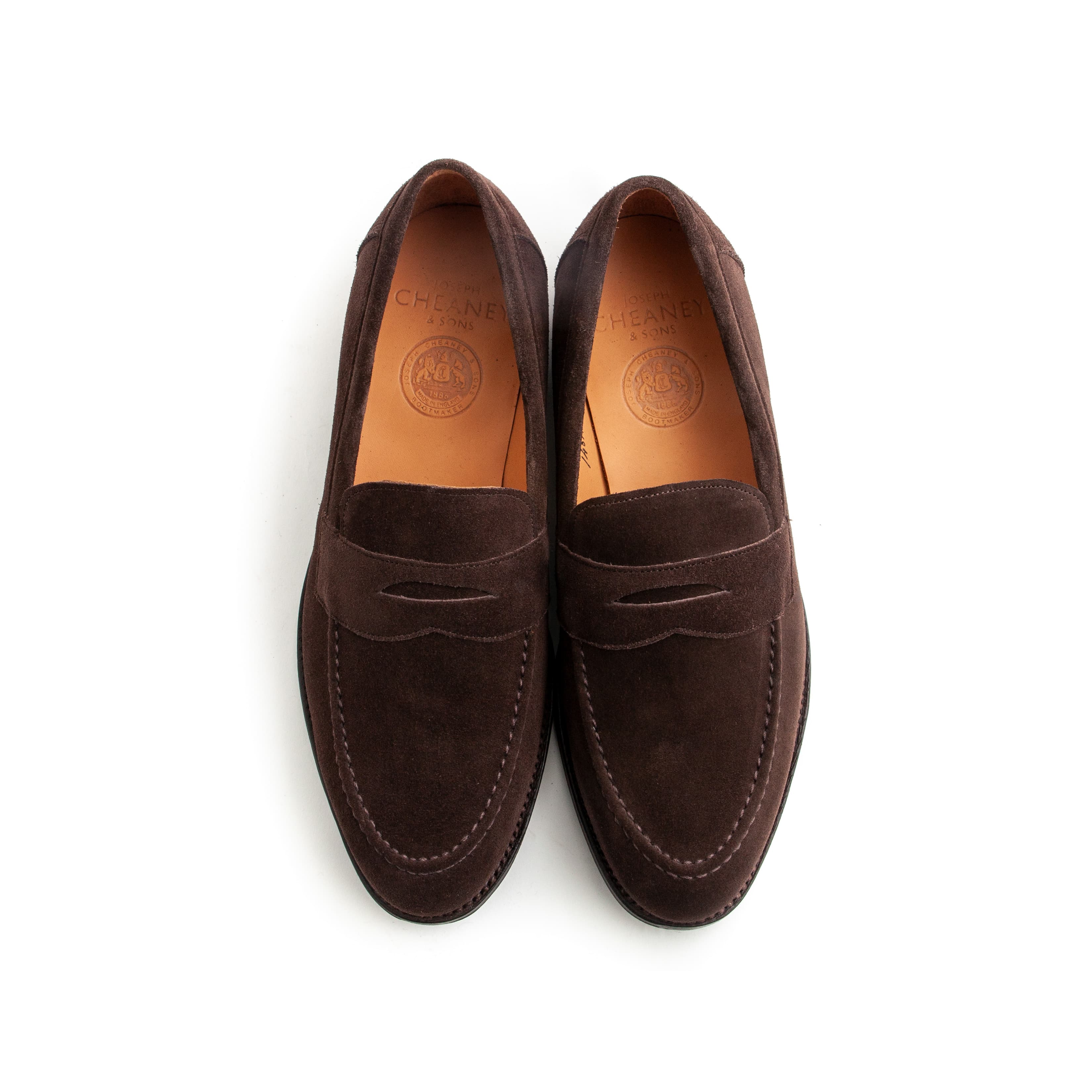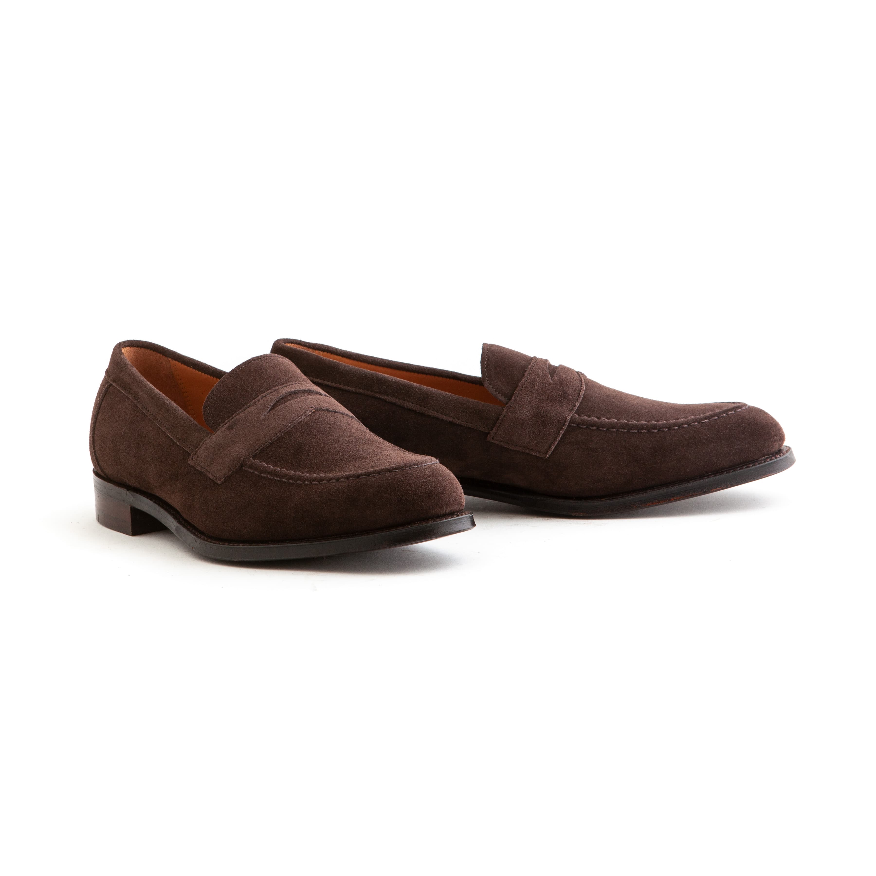 The Hadley is a modern penny loafer. Made on the 14634 last, which has an almond toe and elongated body, it is fully lined and features brown suede and single leather soles.