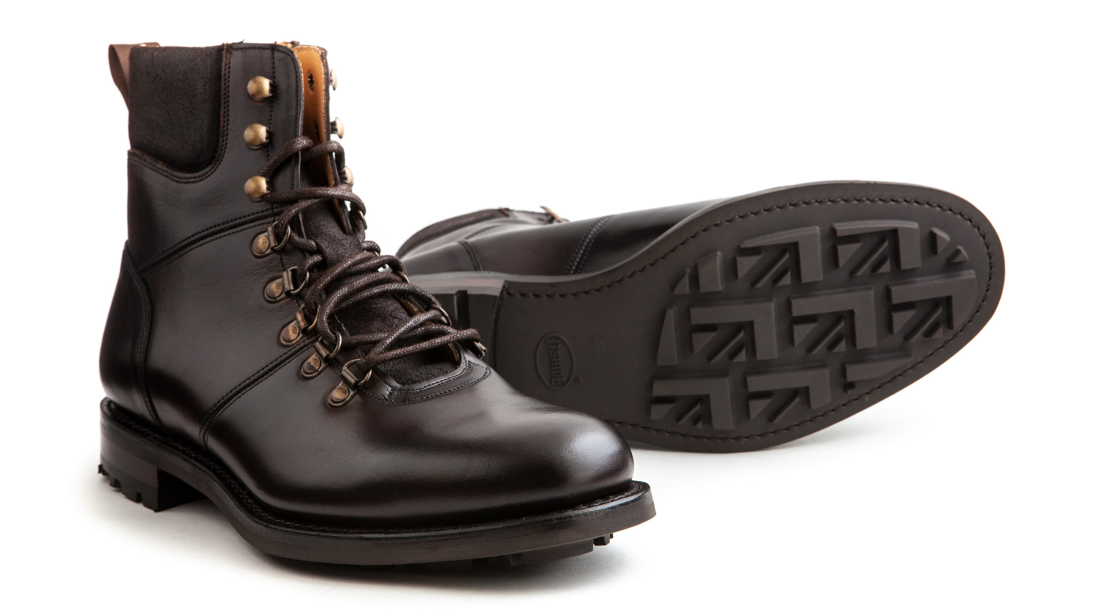 The Ingleborough is a hiker boot made in Horween’s Chromexcel leather. With BritGrip rubber soles and a padded shaft, it offers a refined take on the hiker without sacrificing any rugged durability.