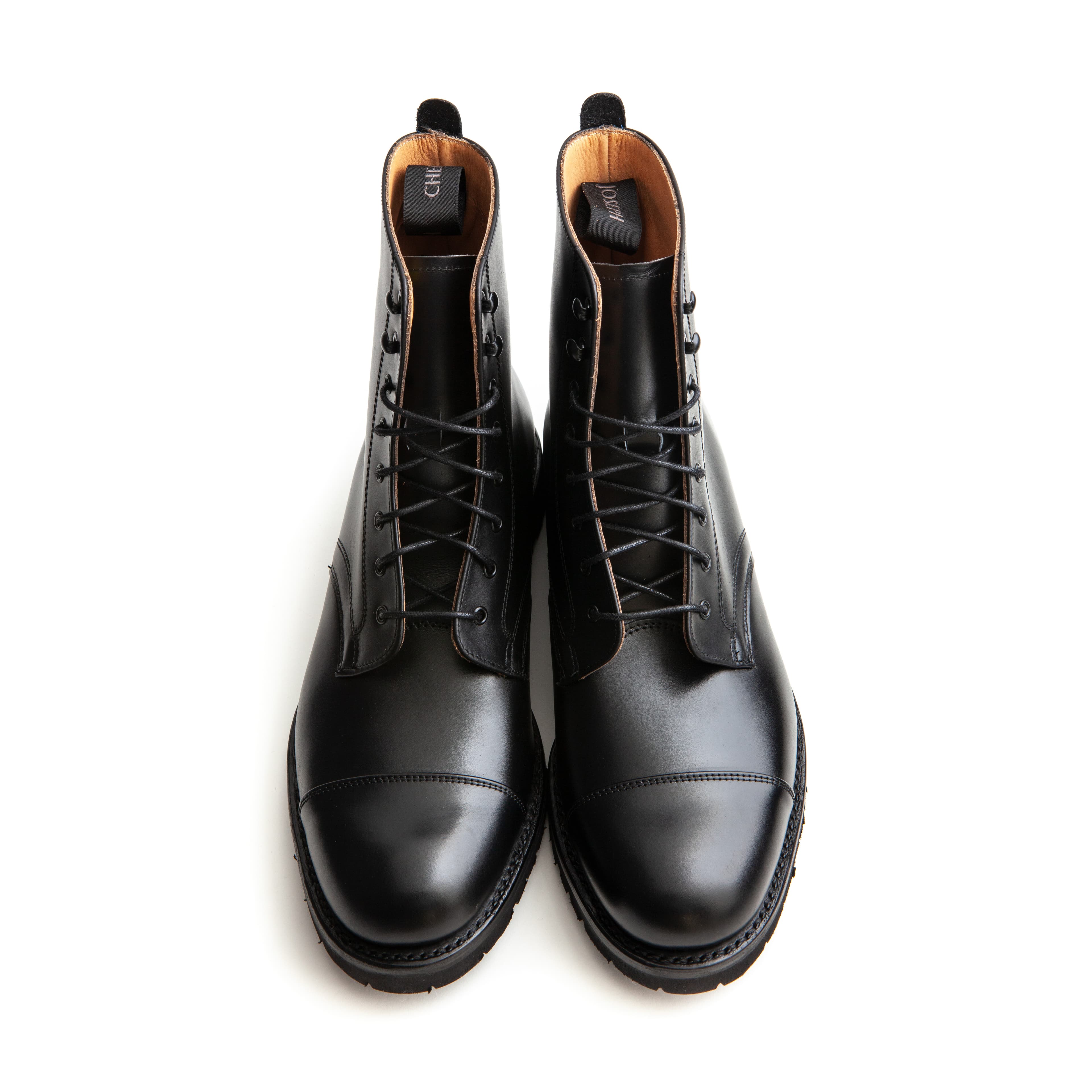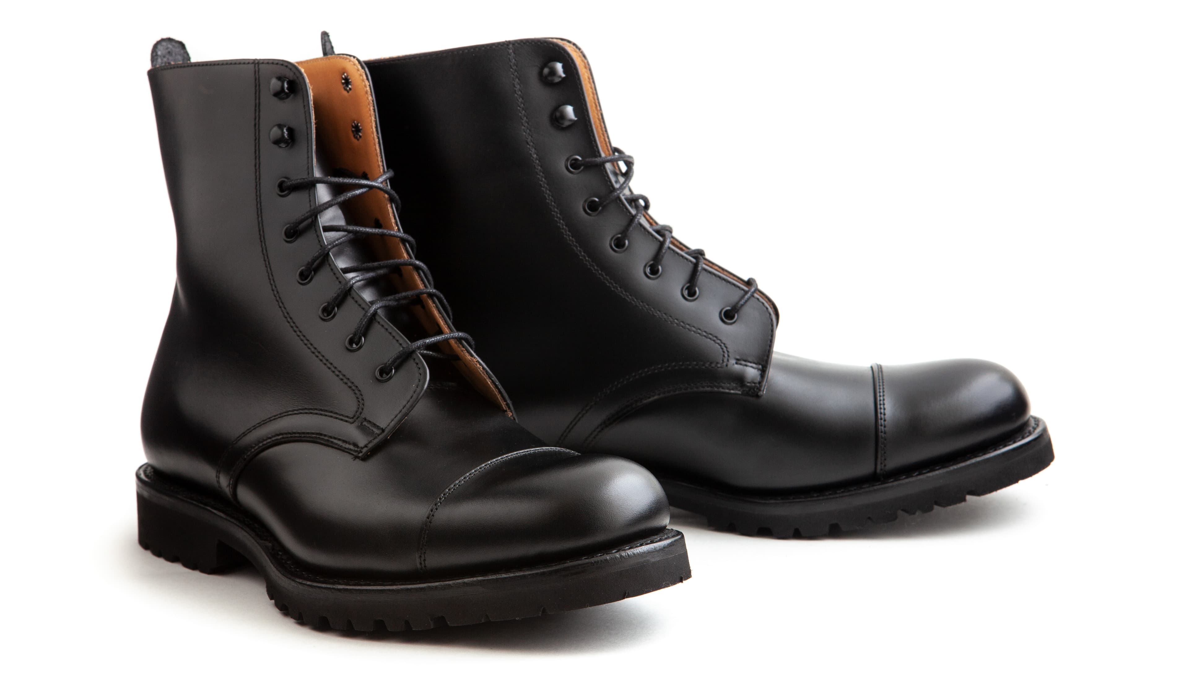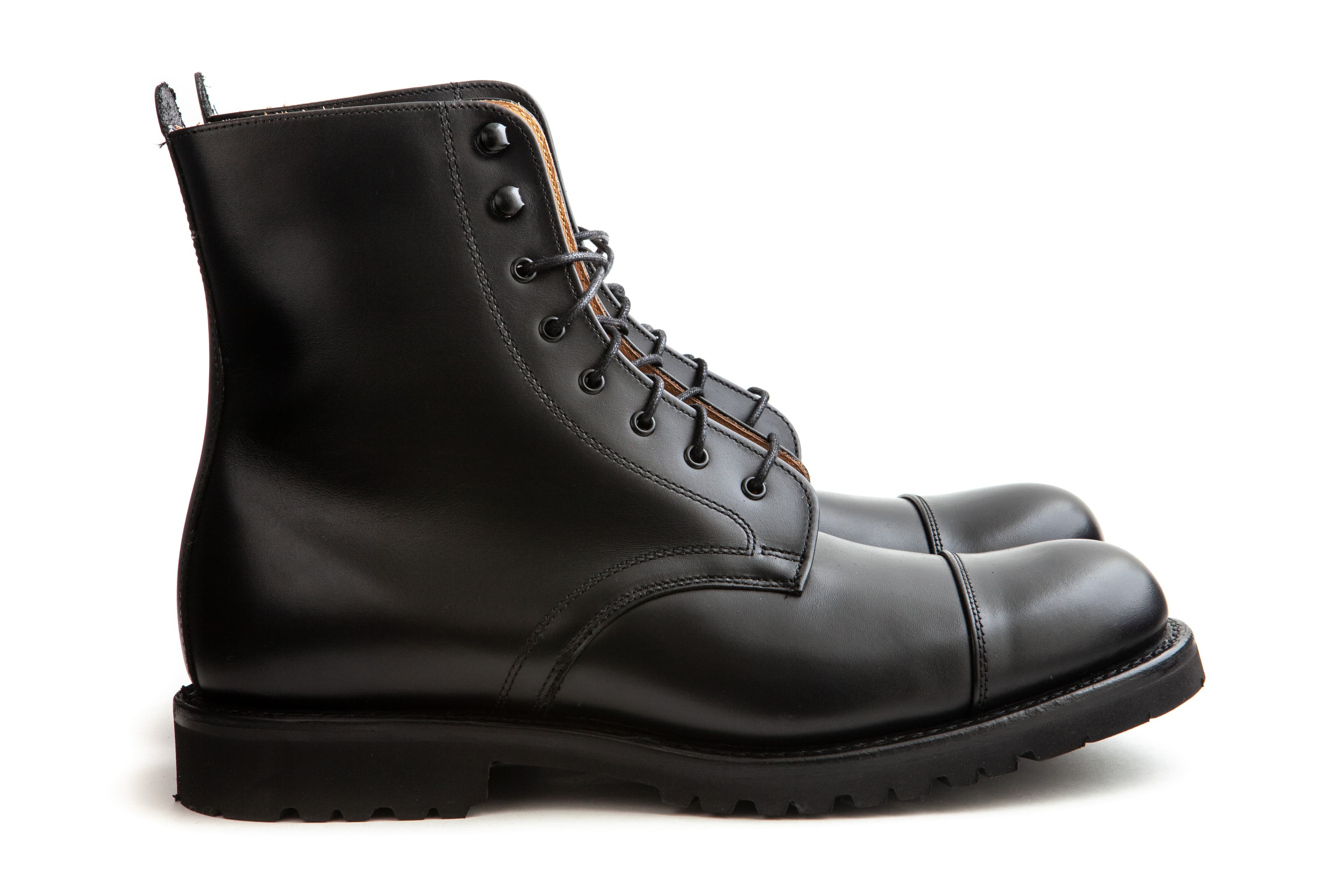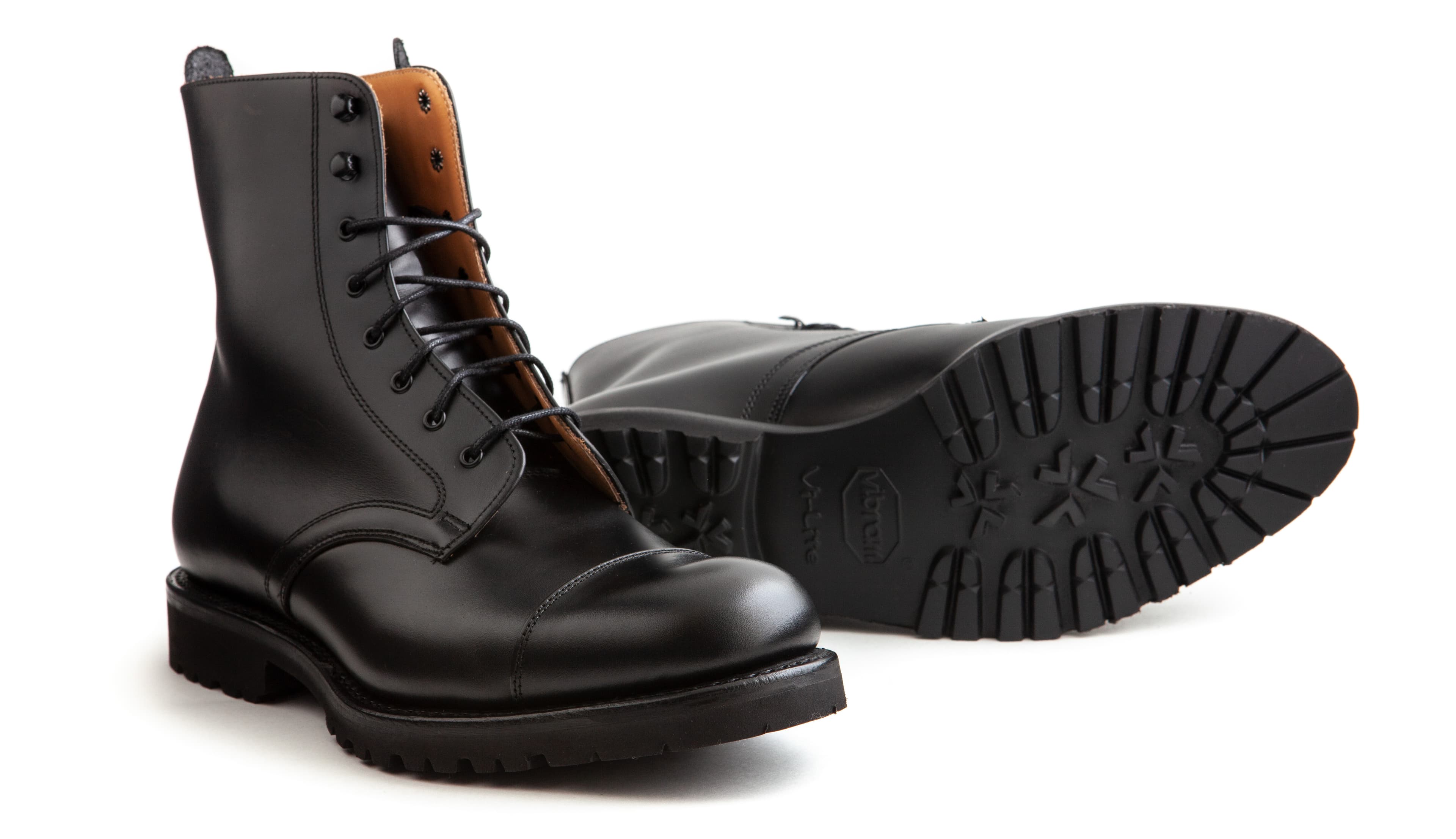 Cheaney’s Trafalgar is a chunky industrial boot that is unexpectedly lightweight. Made in black calfskin on Vibram Vi-lite soles, it is a hard-wearing, rugged boot that can go anywhere. The Vi-lite soles are much lighter than most commando soles while still retaining their durability.