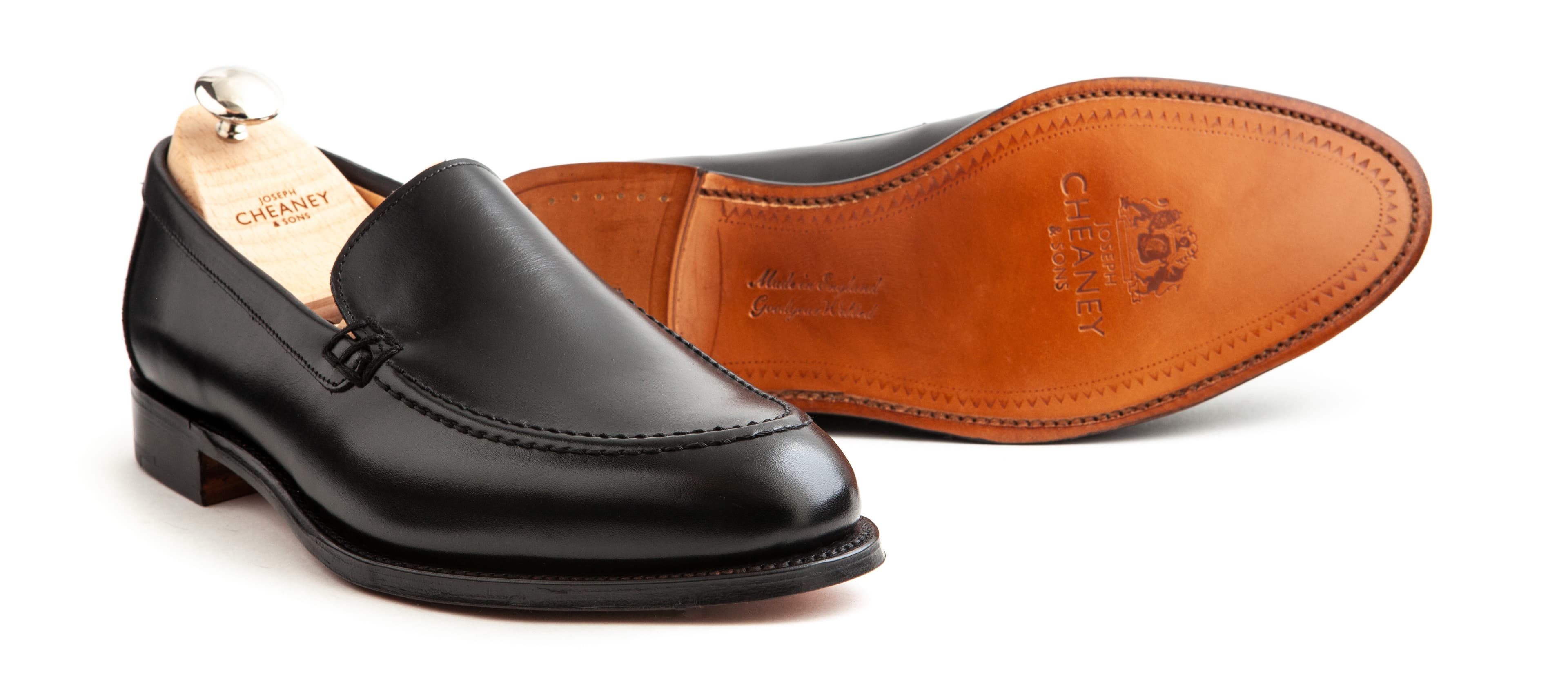 Cheaney’s Wilbur is a sleek, modern loafer. Made on the 146 last, which has an almond toe and elongated body, it is fully lined and features black calf and single leather soles.