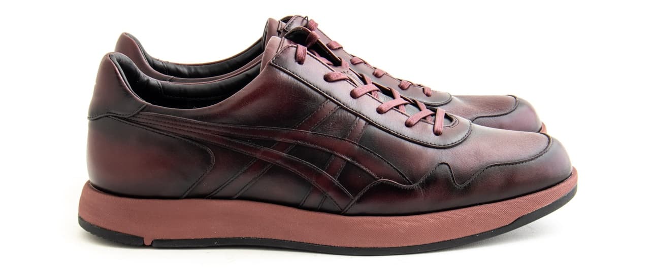 The shoe is inspired by Asics’ X-Caliber model from the 1980s, which was one of their best-selling models for marathon runners. Made with a wave design to allow the foot to bend, they are extremely comfortable and lightweight. Featuring Corthay’s signature patina in a monochrome design, they make for a versatile, elegant sneaker.