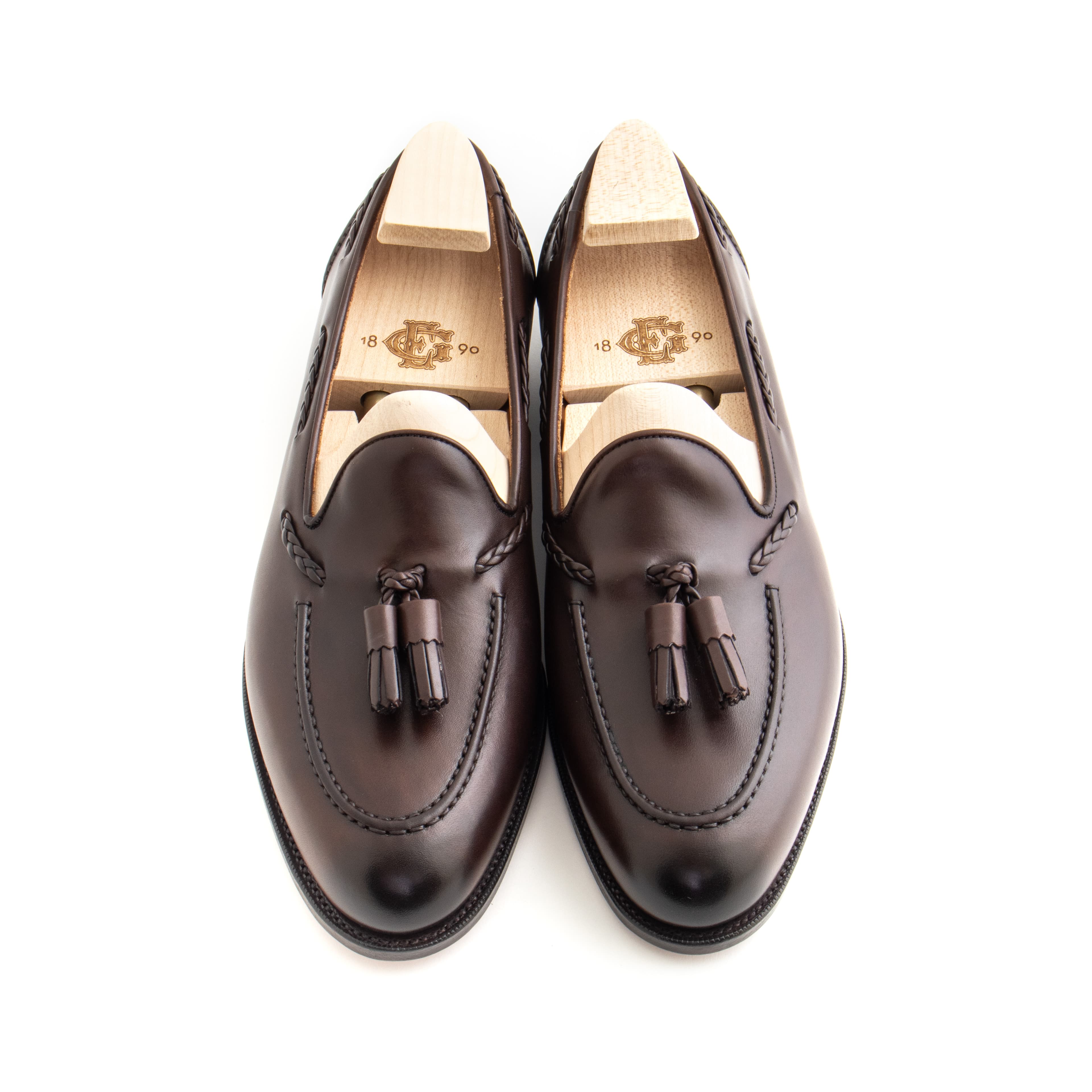 As far as tassel loafers go, it doesn’t get much better than the Belgravia. With a hand-sewn apron and distinctive side plaiting, they are a classic, elegant shoe for casual wear. This pair is made in espresso calfskin on single leather soles.