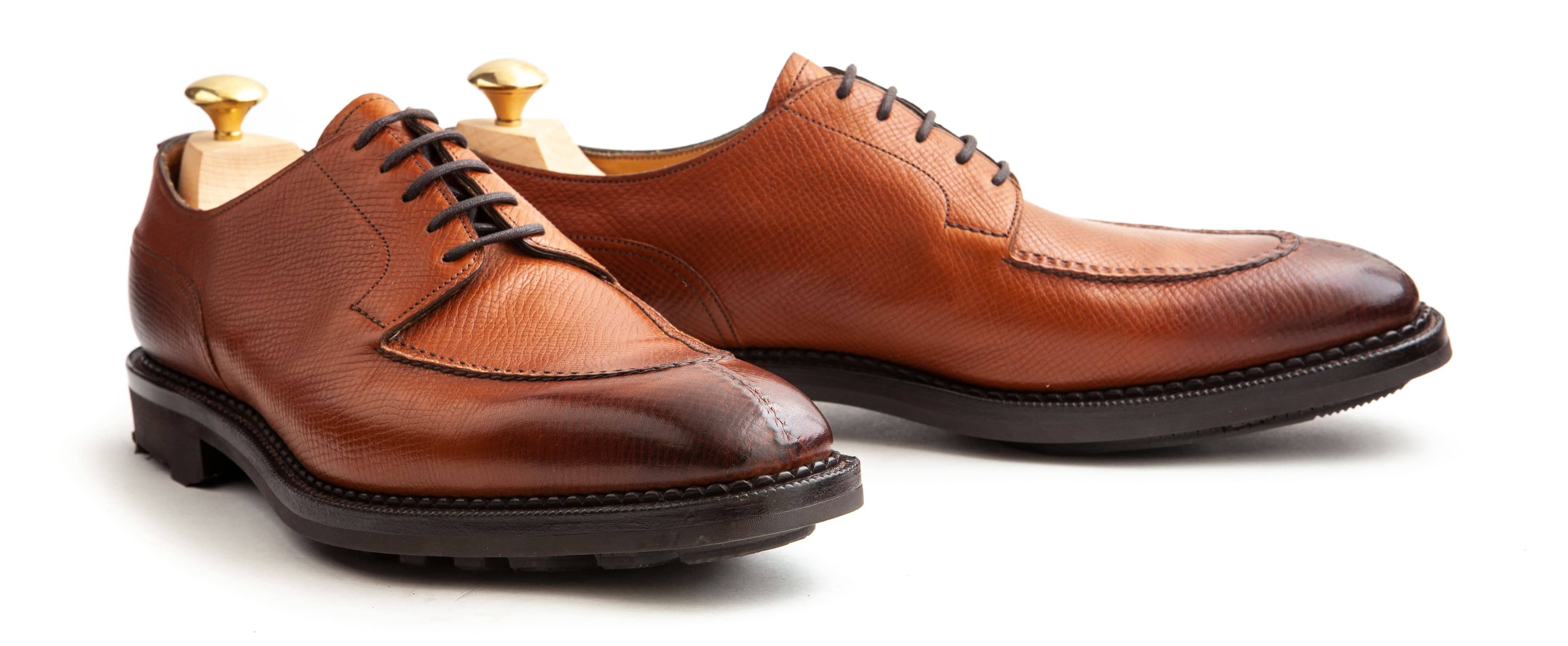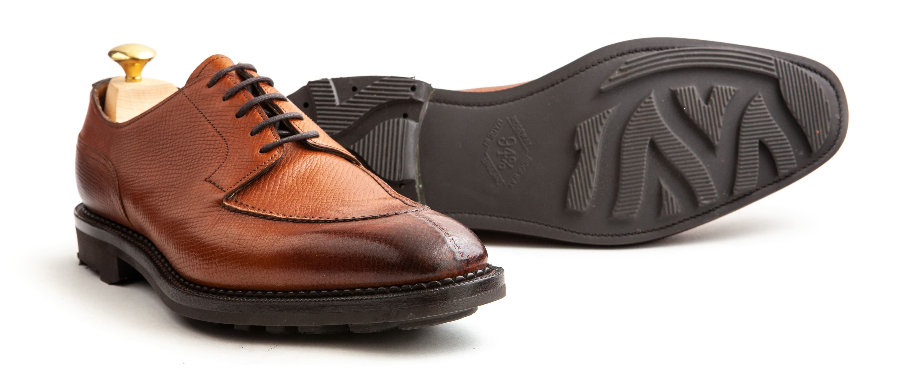 The Dover is Edward Green’s signature shoe — a blucher with a hand-sewn vamp. The hand-sewing process is so delicate that a pig’s bristle must be used to sew rather than a needle. This shoe is one for the ages: comfortable, useful, and very unique.