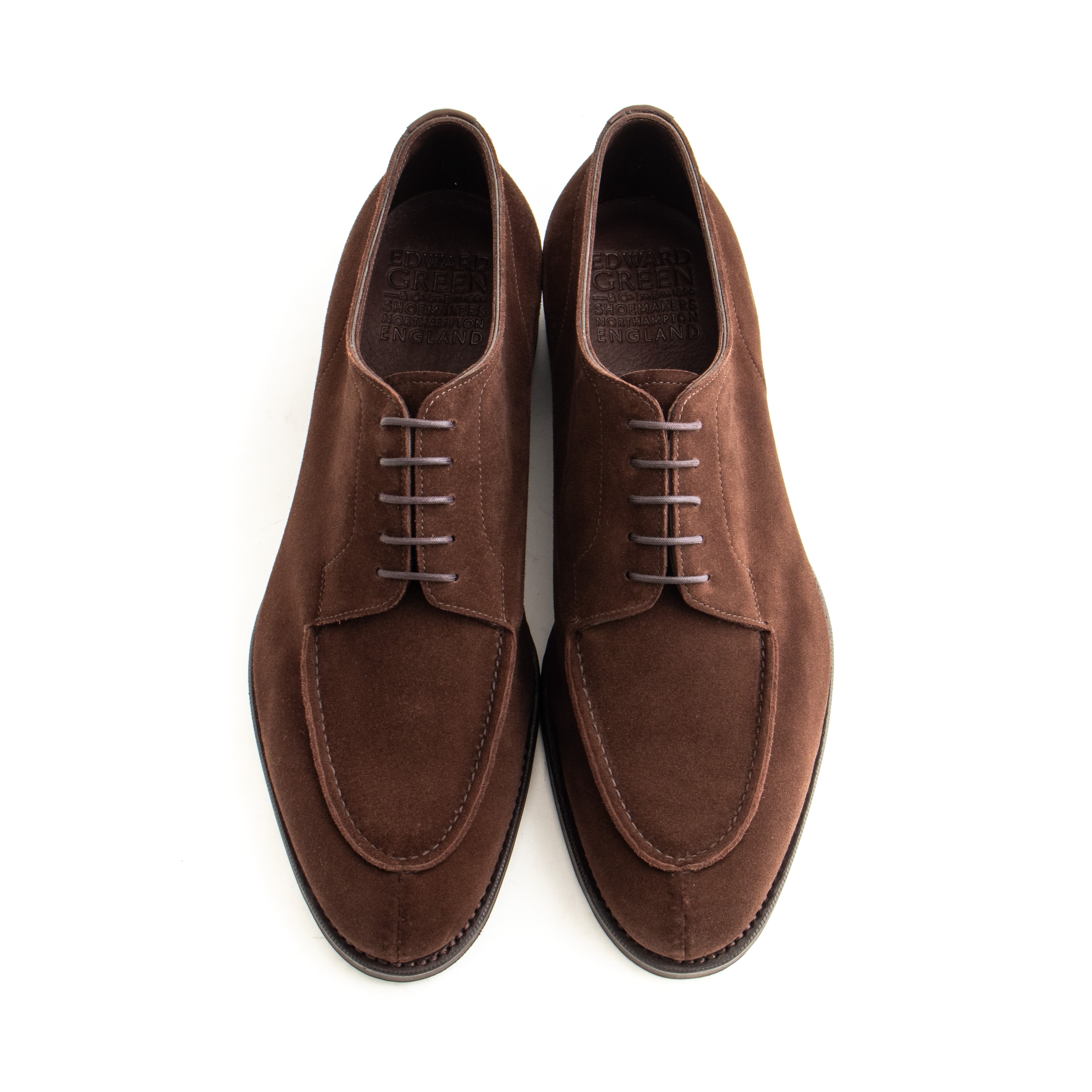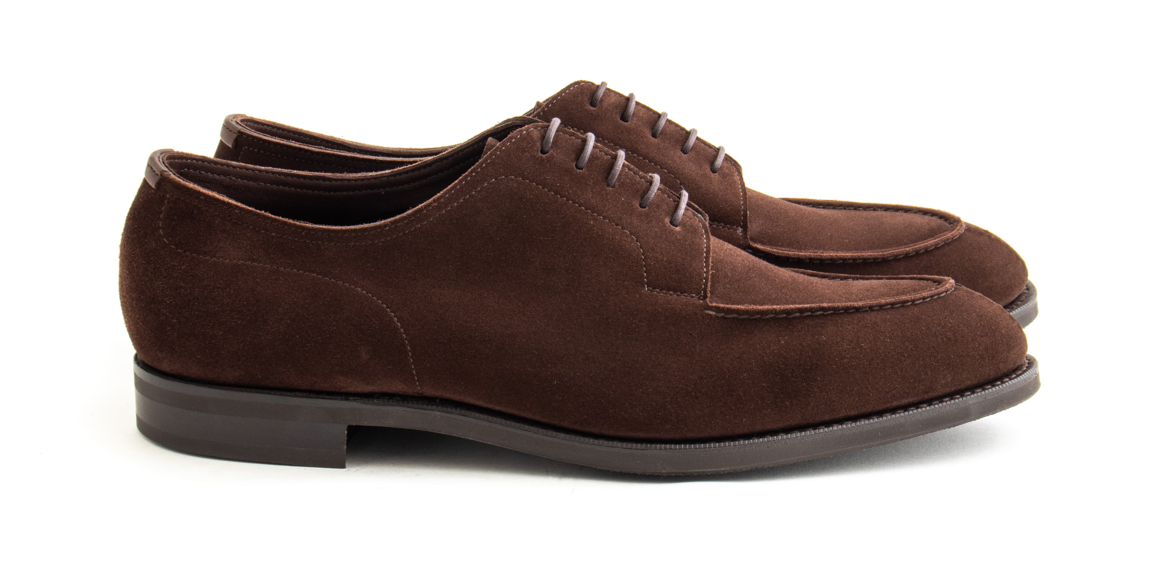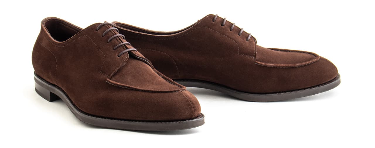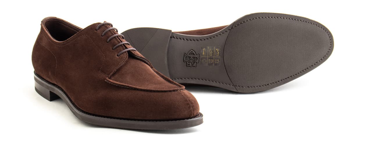 The Dover is Edward Green’s signature shoe — a blucher with a hand-sewn vamp. The hand-sewing process is so delicate that a pig’s bristle must be used to sew rather than a needle. We’ve made these Dovers in Edward Green’s unlined mink suede with trim R1 rubber shoes. This shoe is one for the ages: comfortable, useful, and very unique.