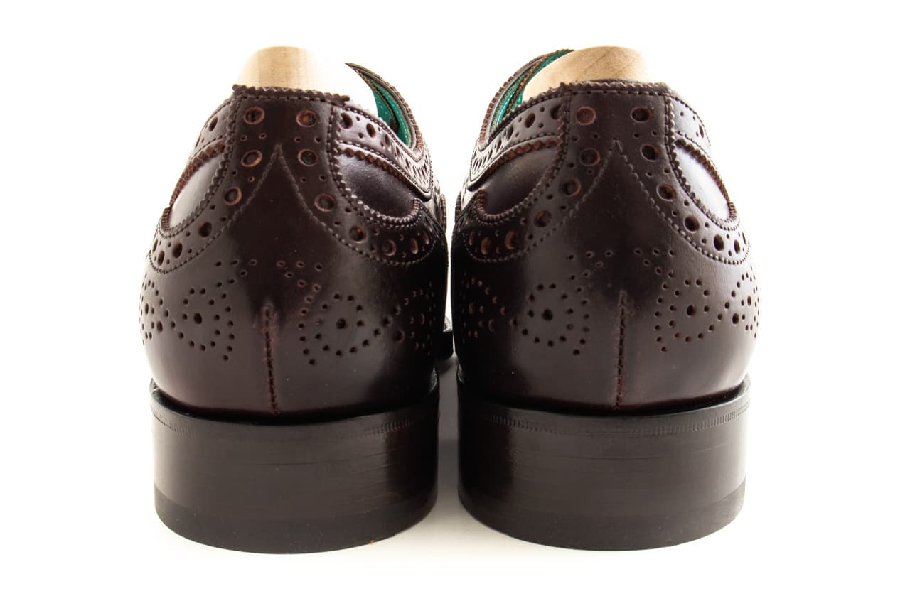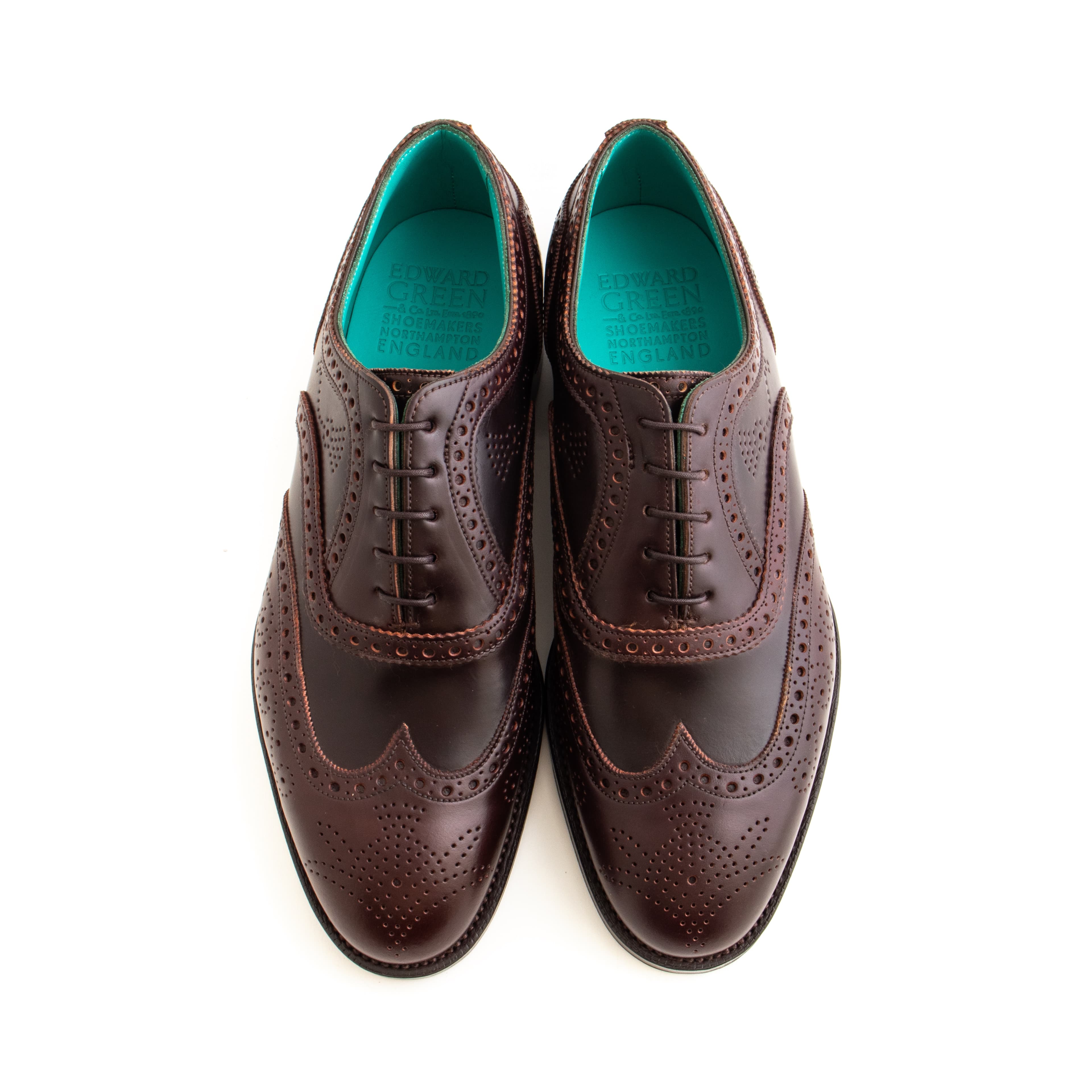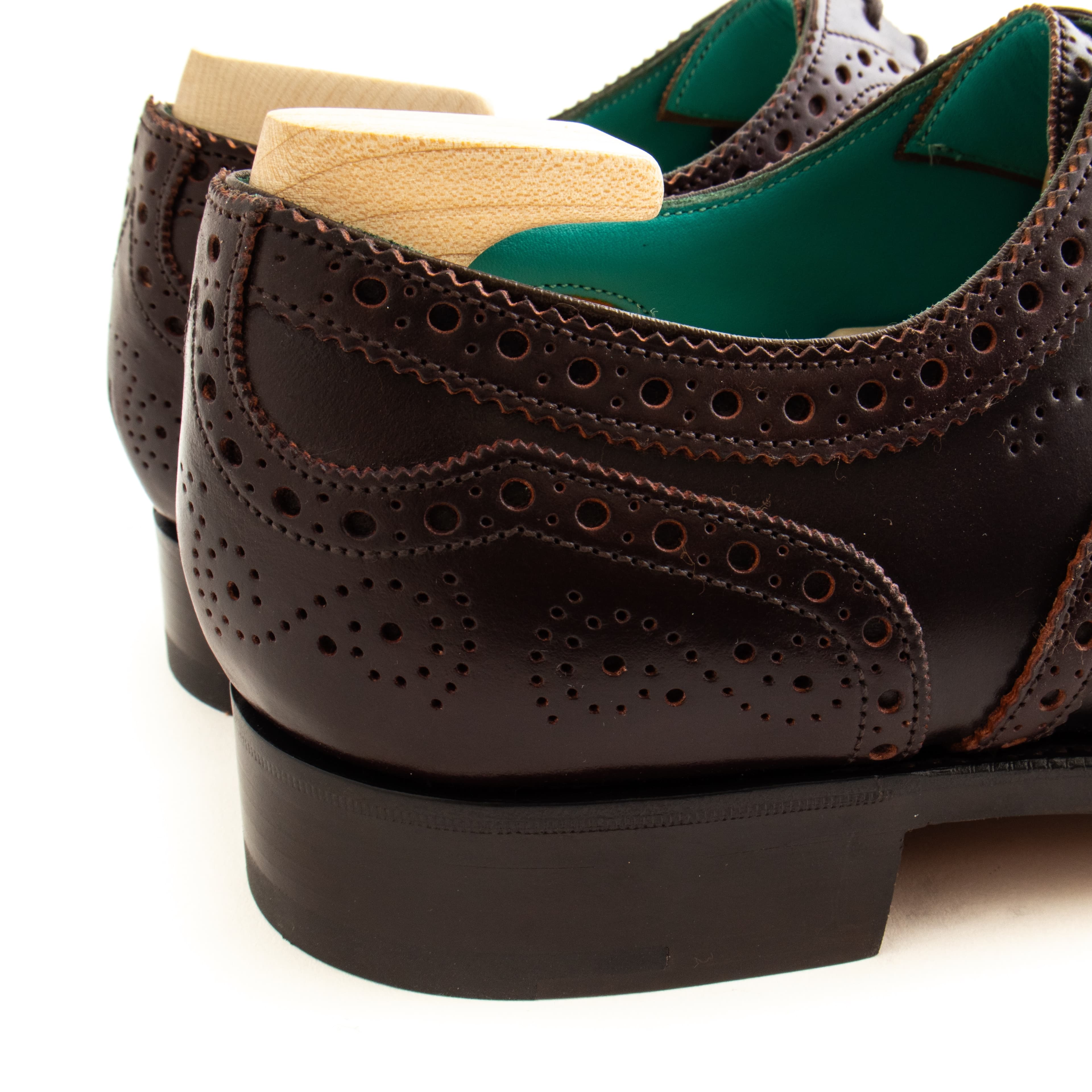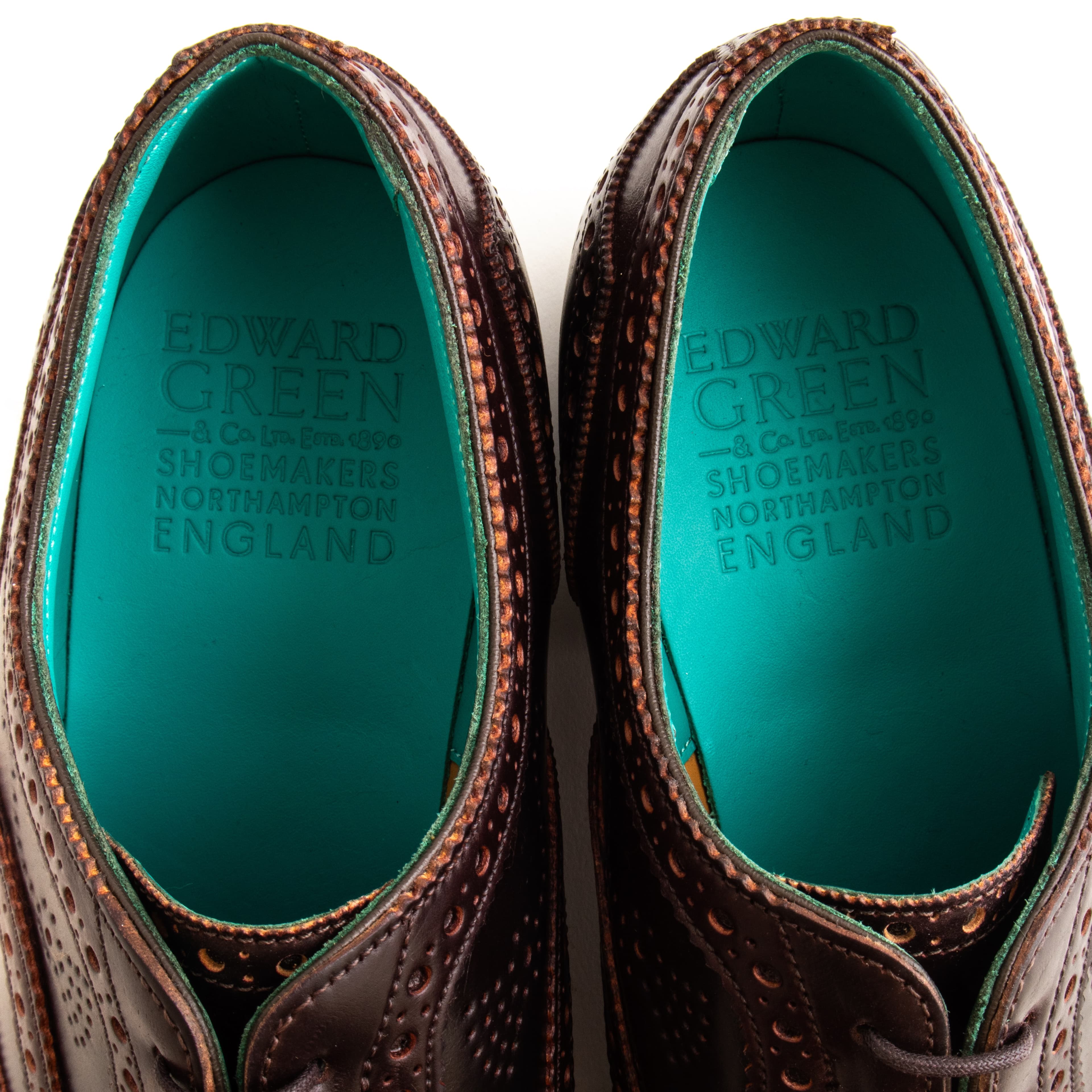 Done in burgundy Horween shell cordovan, they feature the Falkirk’s iconic brouging and Edward Green’s iconic green lining. A special pair of shoe bags made by Taillour from Fox Flannel is also included, as well as a set of Edward Green shoe trees.