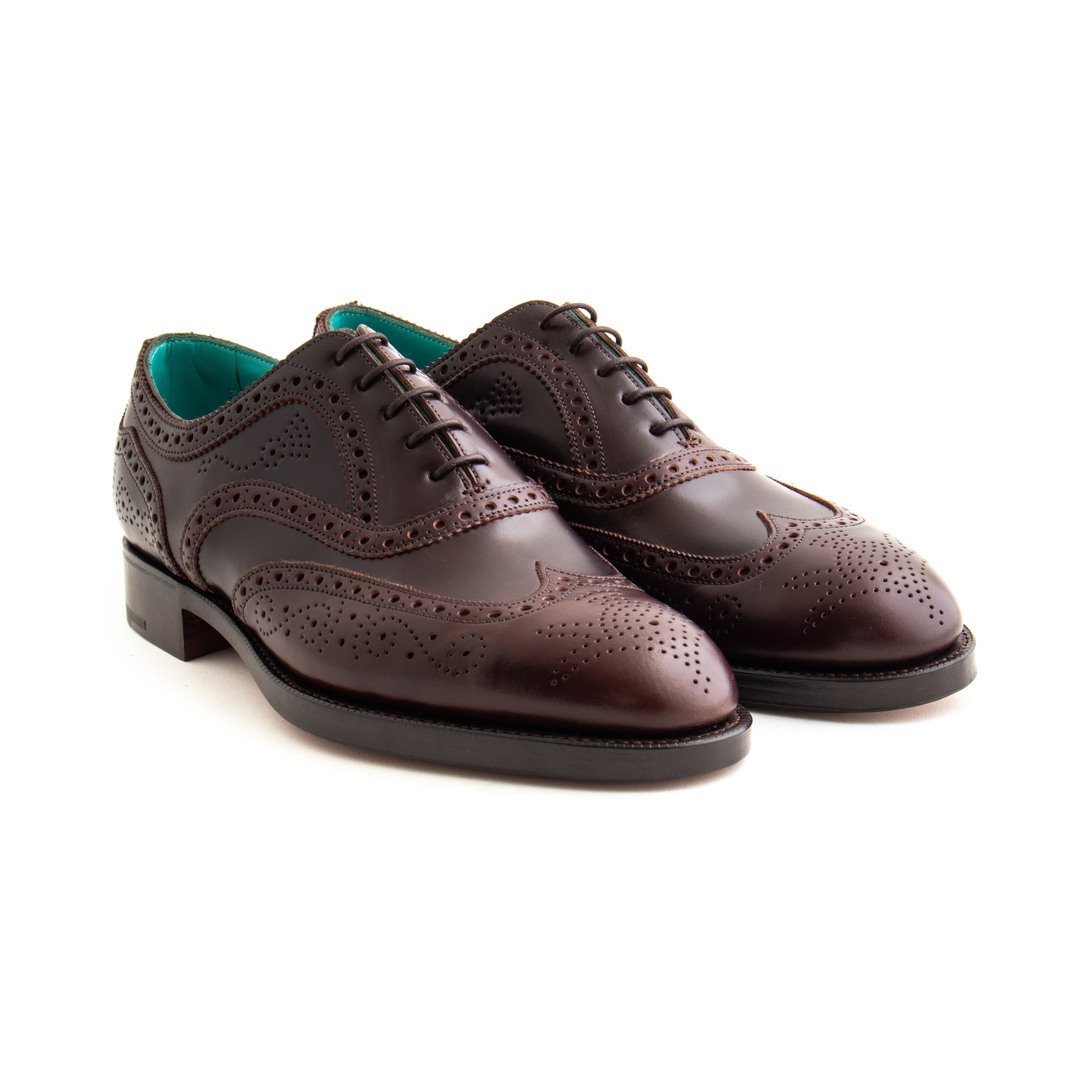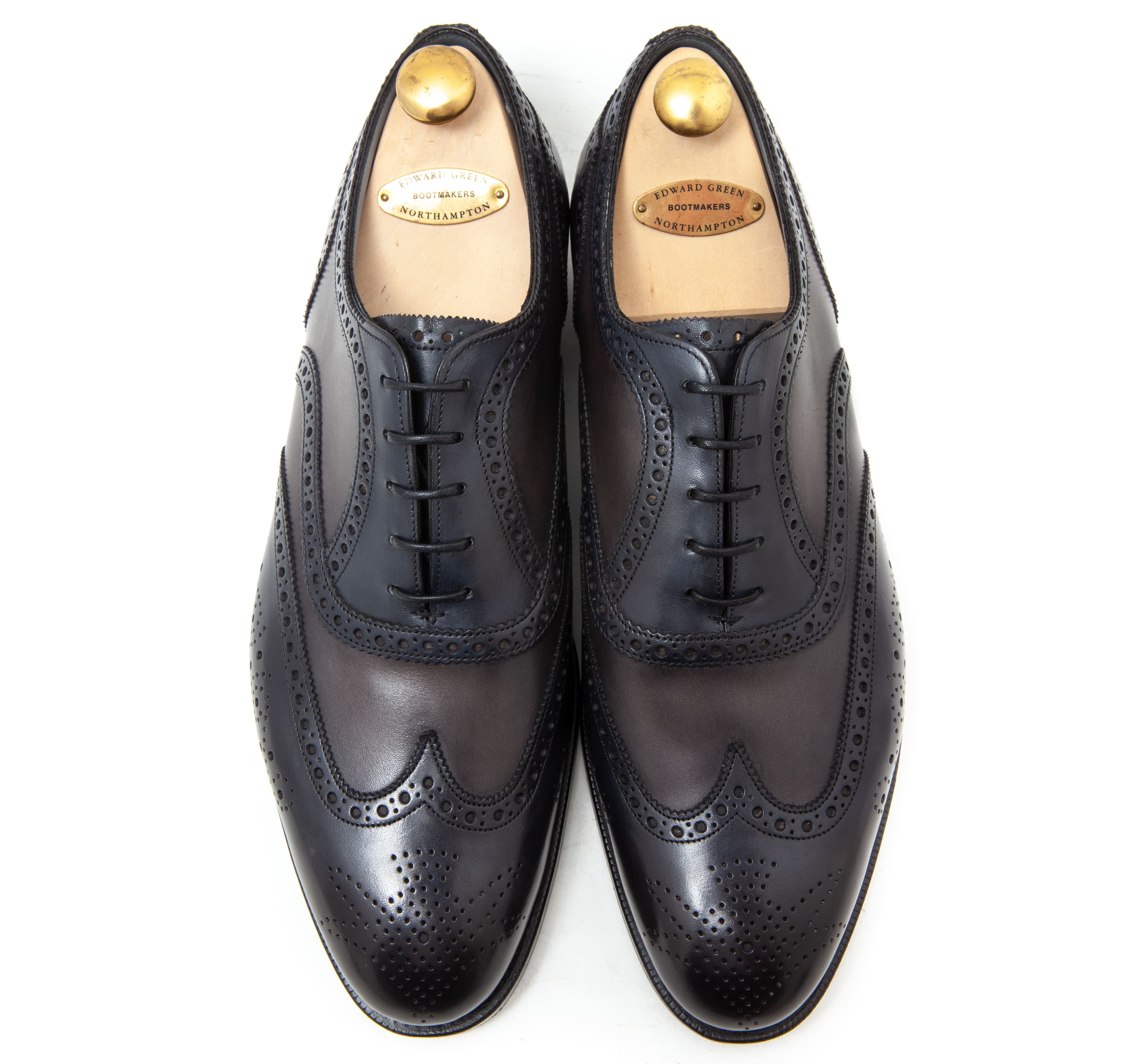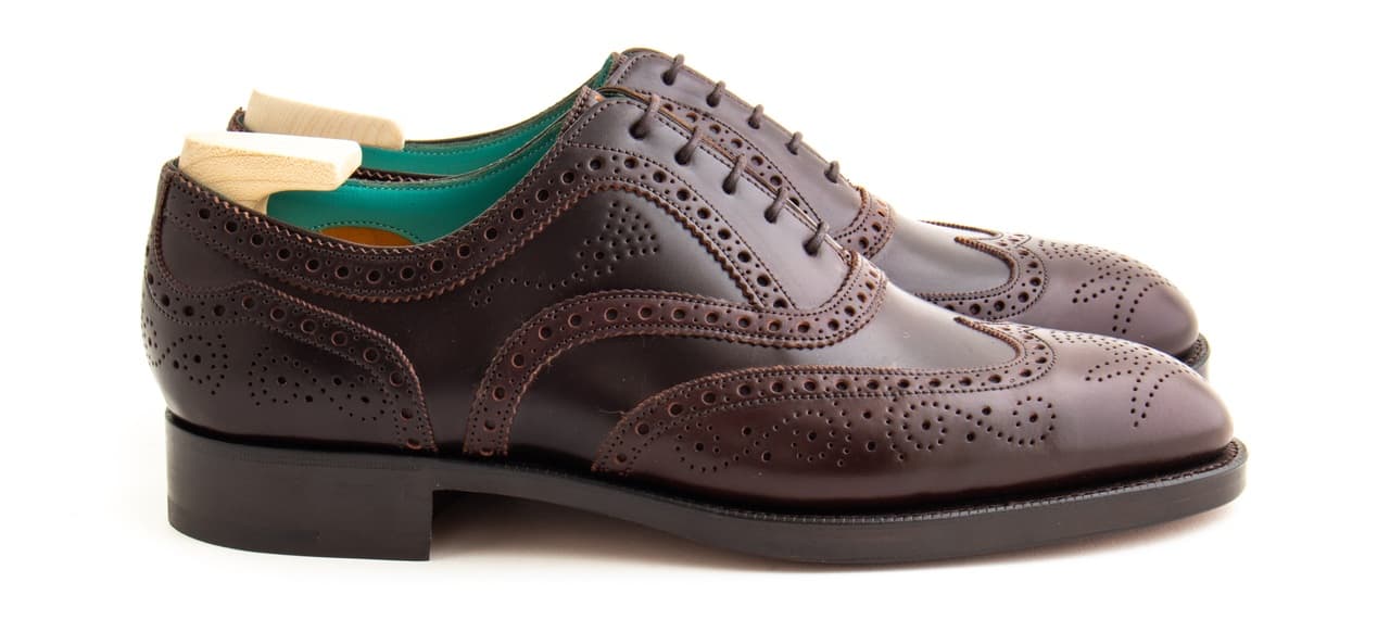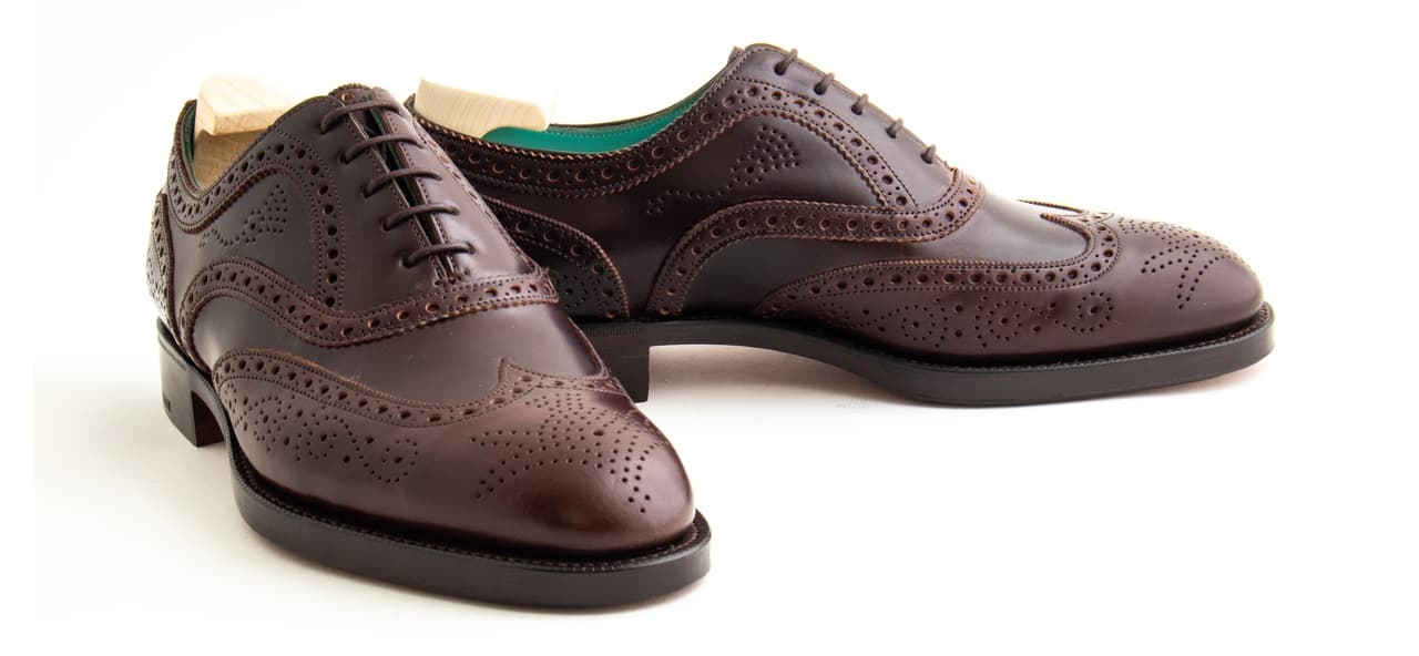Done in burgundy Horween shell cordovan, they feature the Falkirk’s iconic brouging and Edward Green’s iconic green lining. A special pair of shoe bags made by Taillour from Fox Flannel is also included, as well as a set of Edward Green shoe trees.