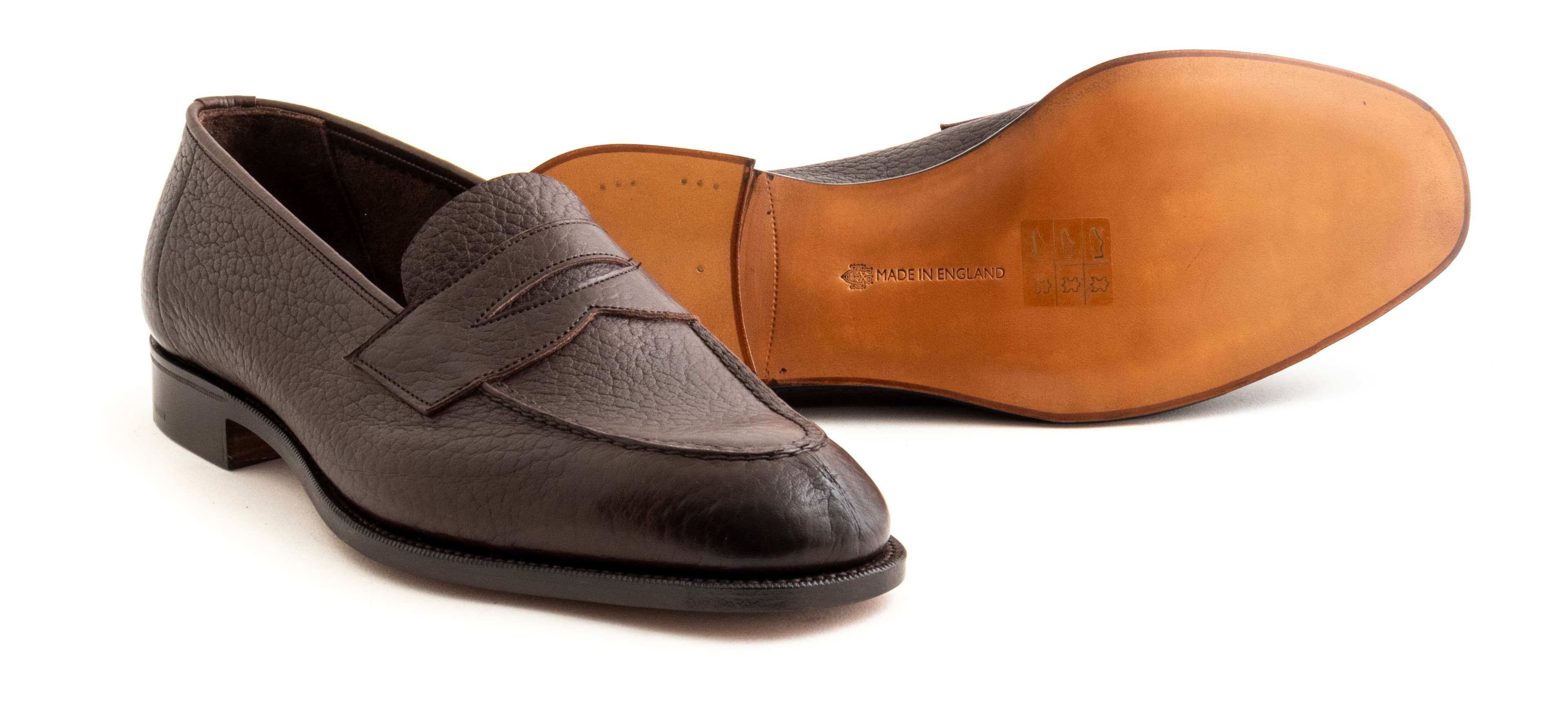 The Harrow is one of Edward Green’s oldest loafer designs and features a handsewn apron. This pair is made in unlined London grain calf on single leather soles. It’s a classic penny loafer with the beautiful handsewing we all love to admire.