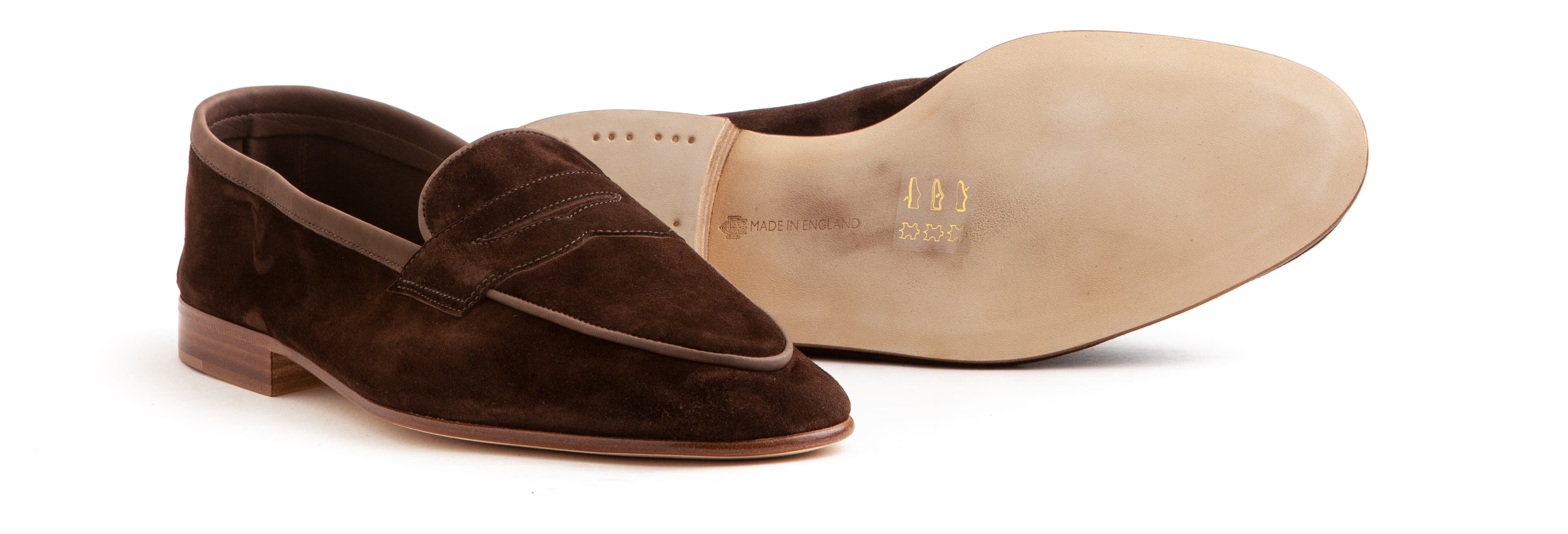389 Last, Brown Pepper Baby Calf Suede, Flexible Leather Soles