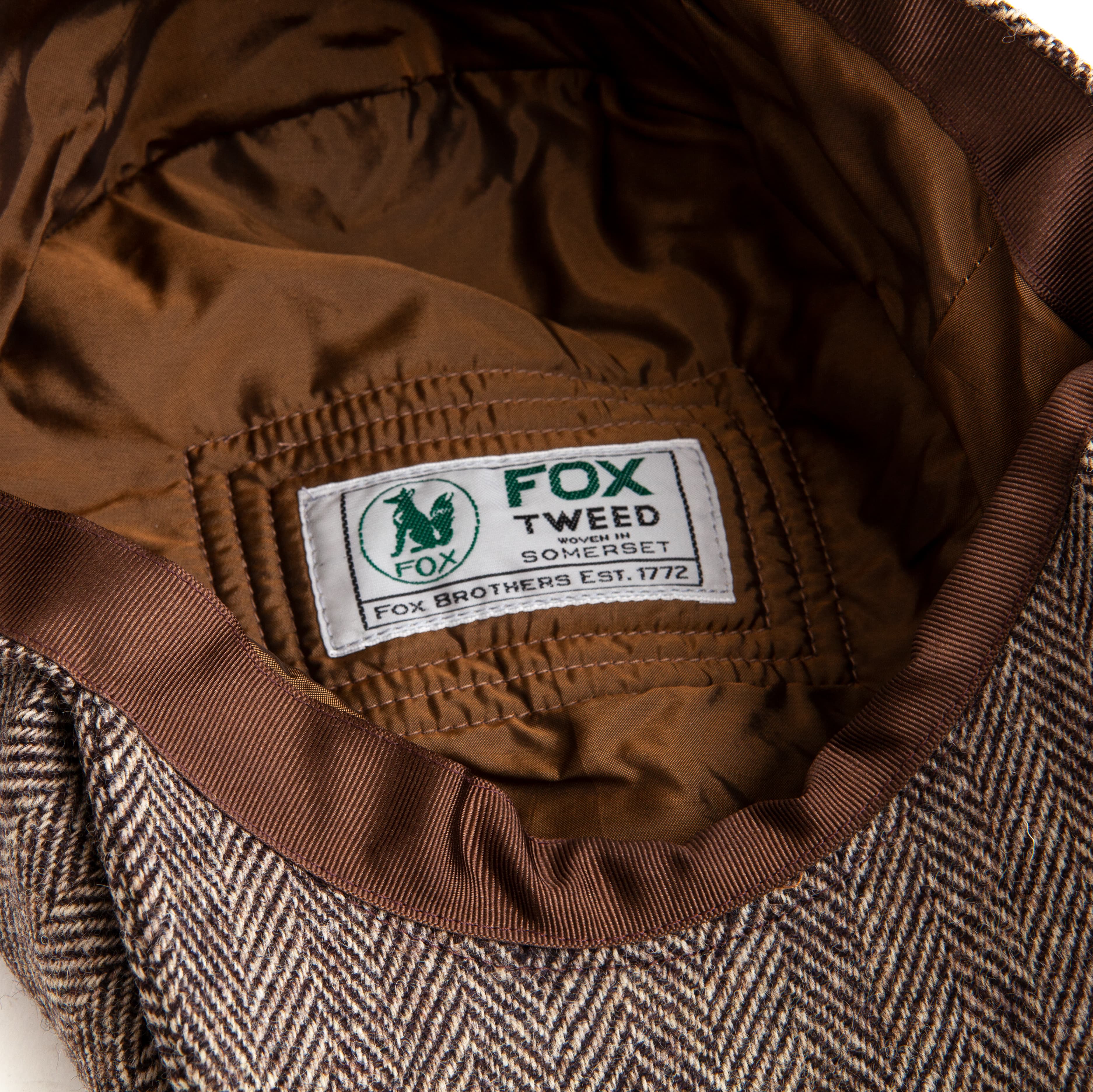 This cap is handmade in England from Fox Brothers tweed cloth. It’s fully lined with light, breathable cupro.