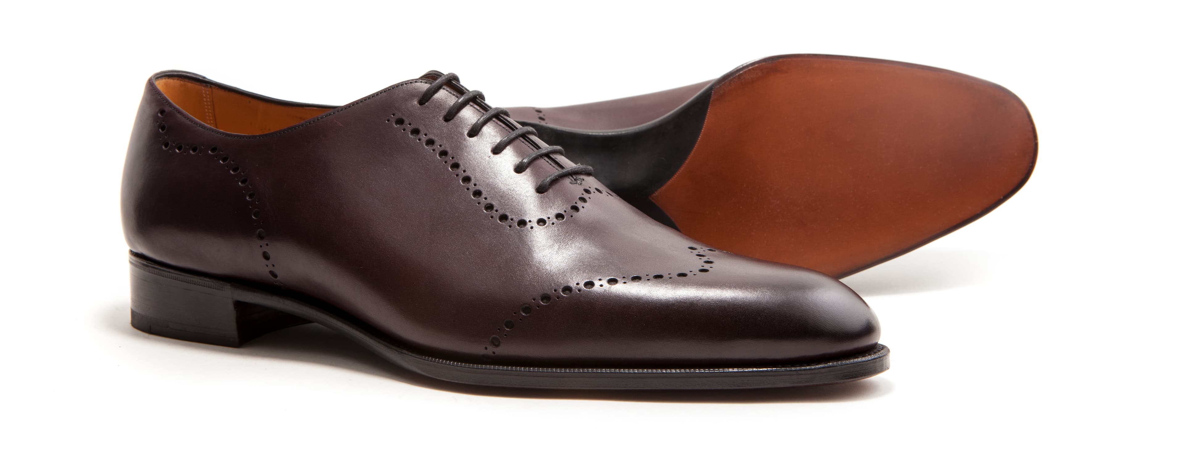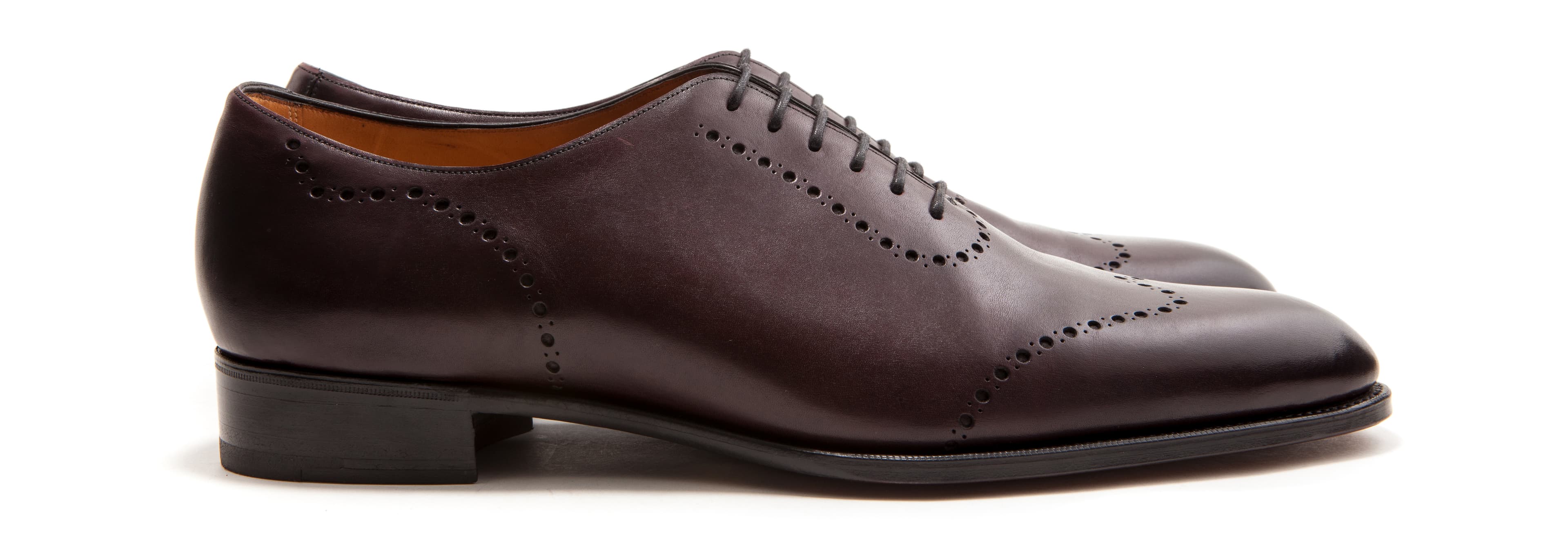Pictured in vintage rioja calfskin on the GG06 last with single leather soles.