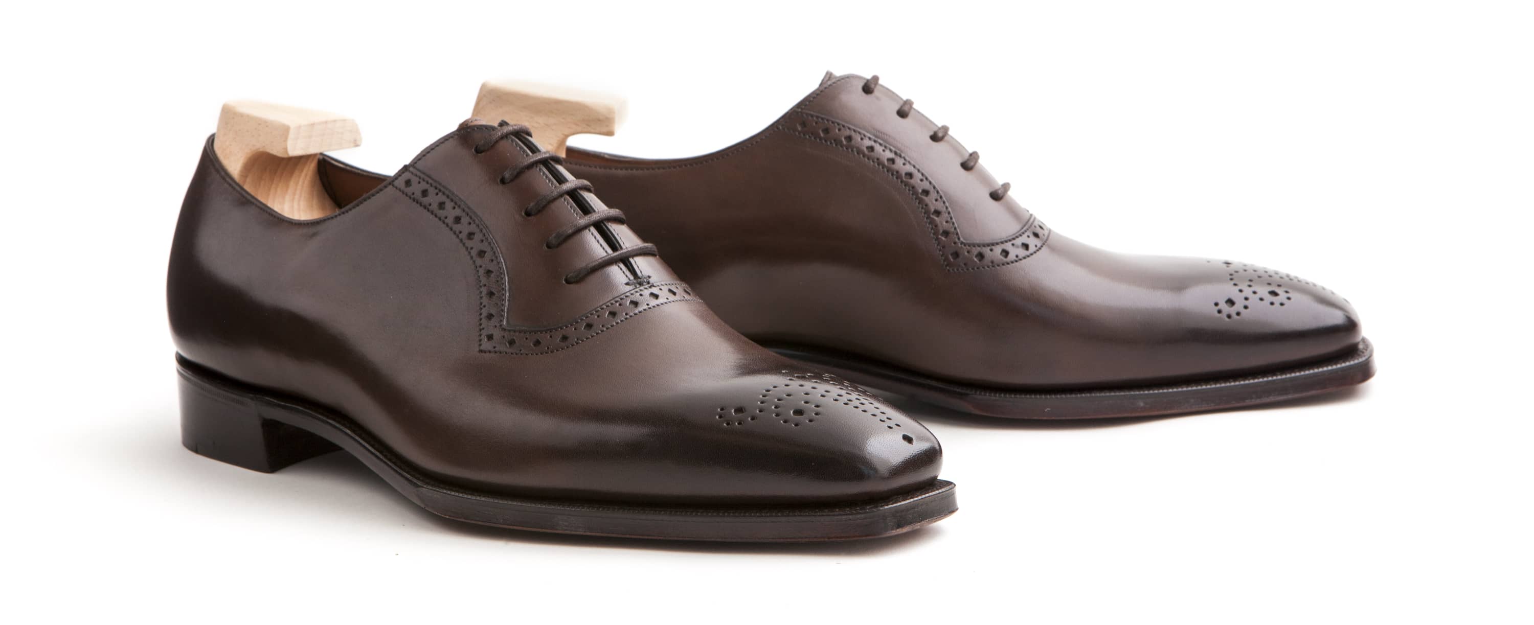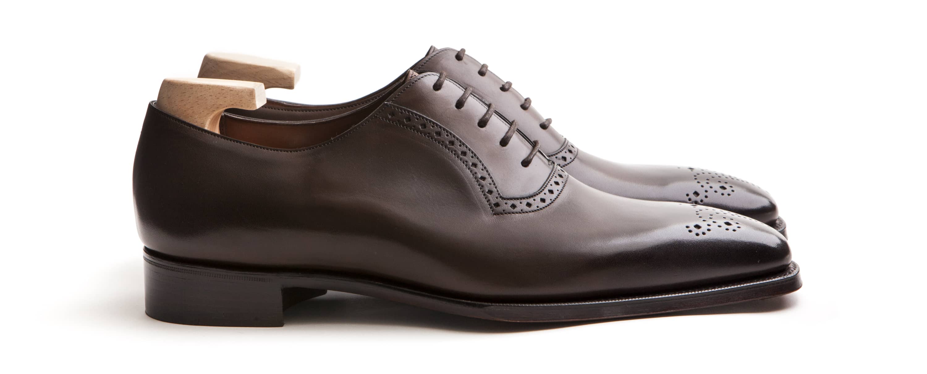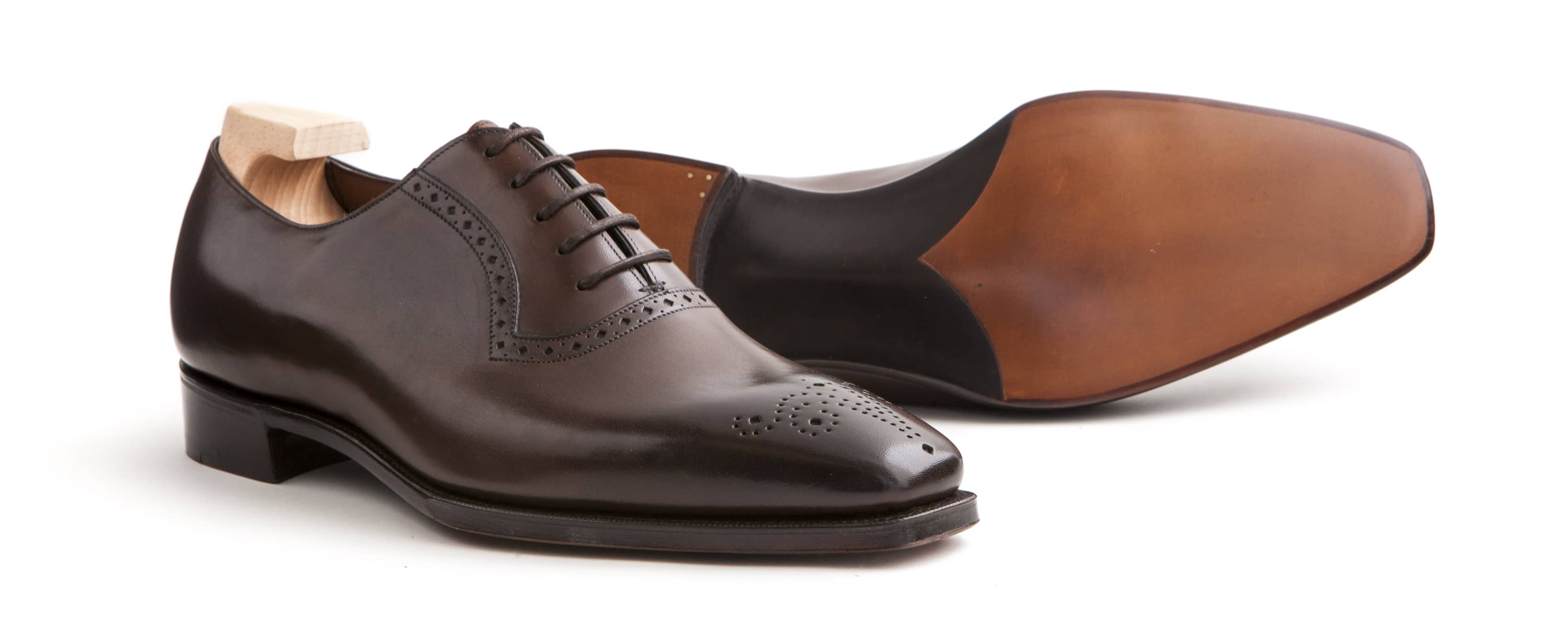 Pictured in vintage oak calfskin on the TG73 last with single leather soles.