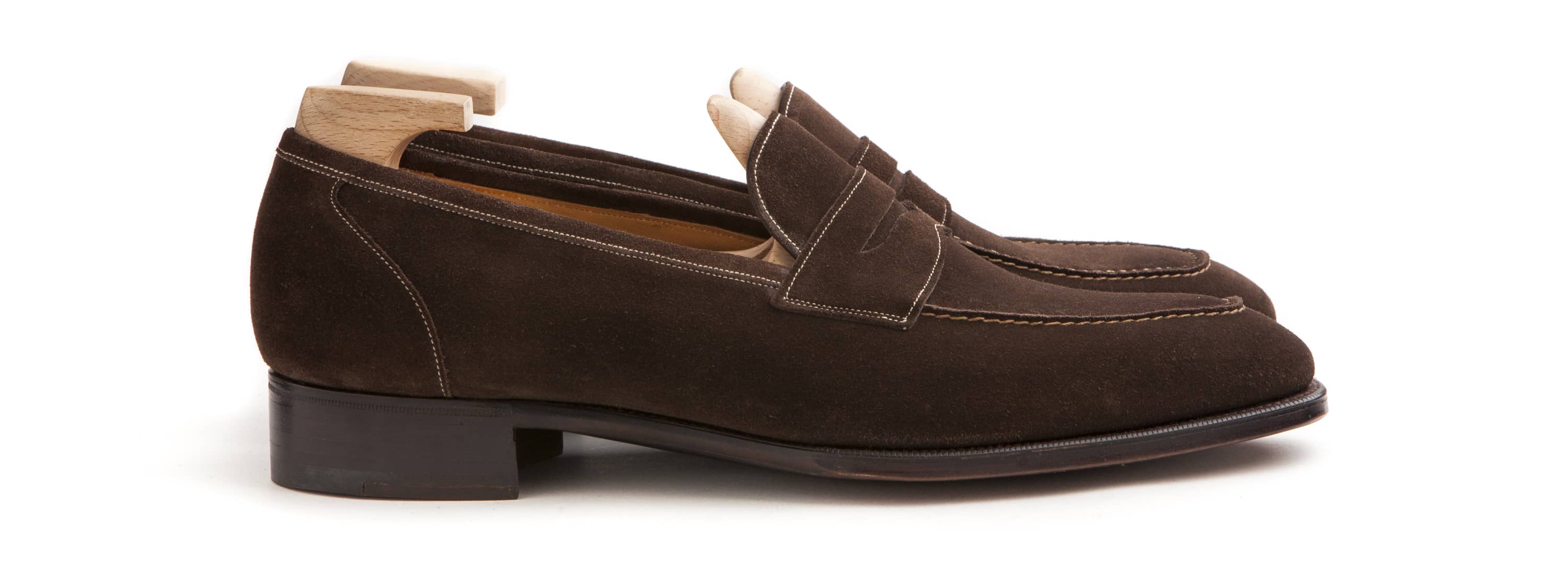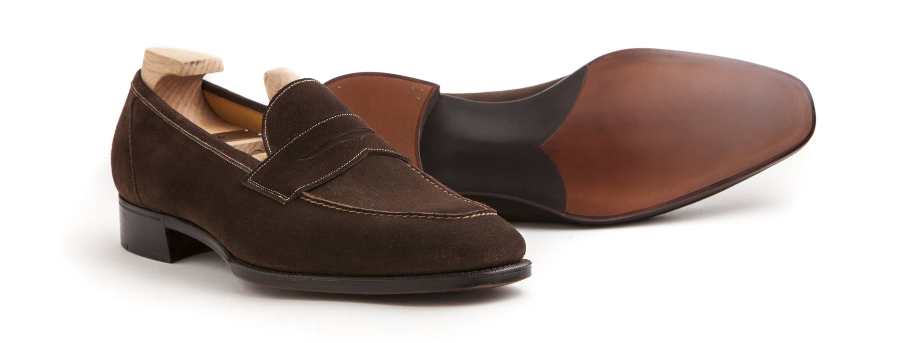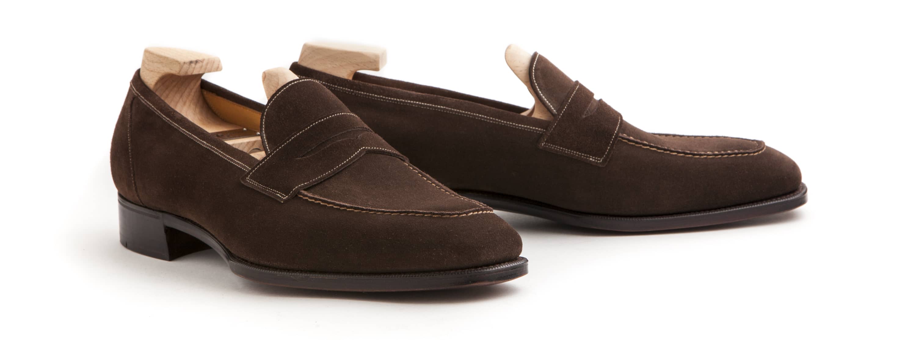 Pictured in mole suede on the KN14 last with single leather soles.