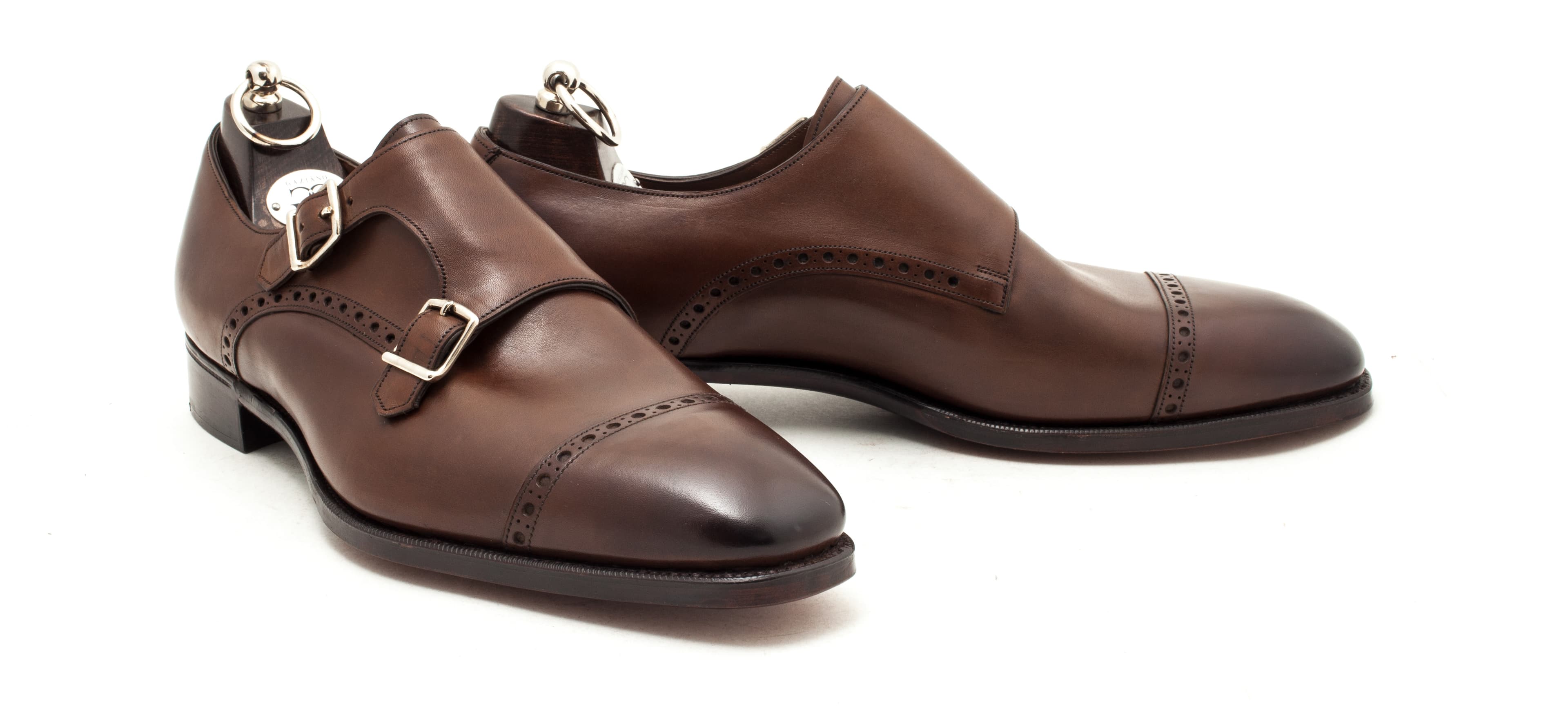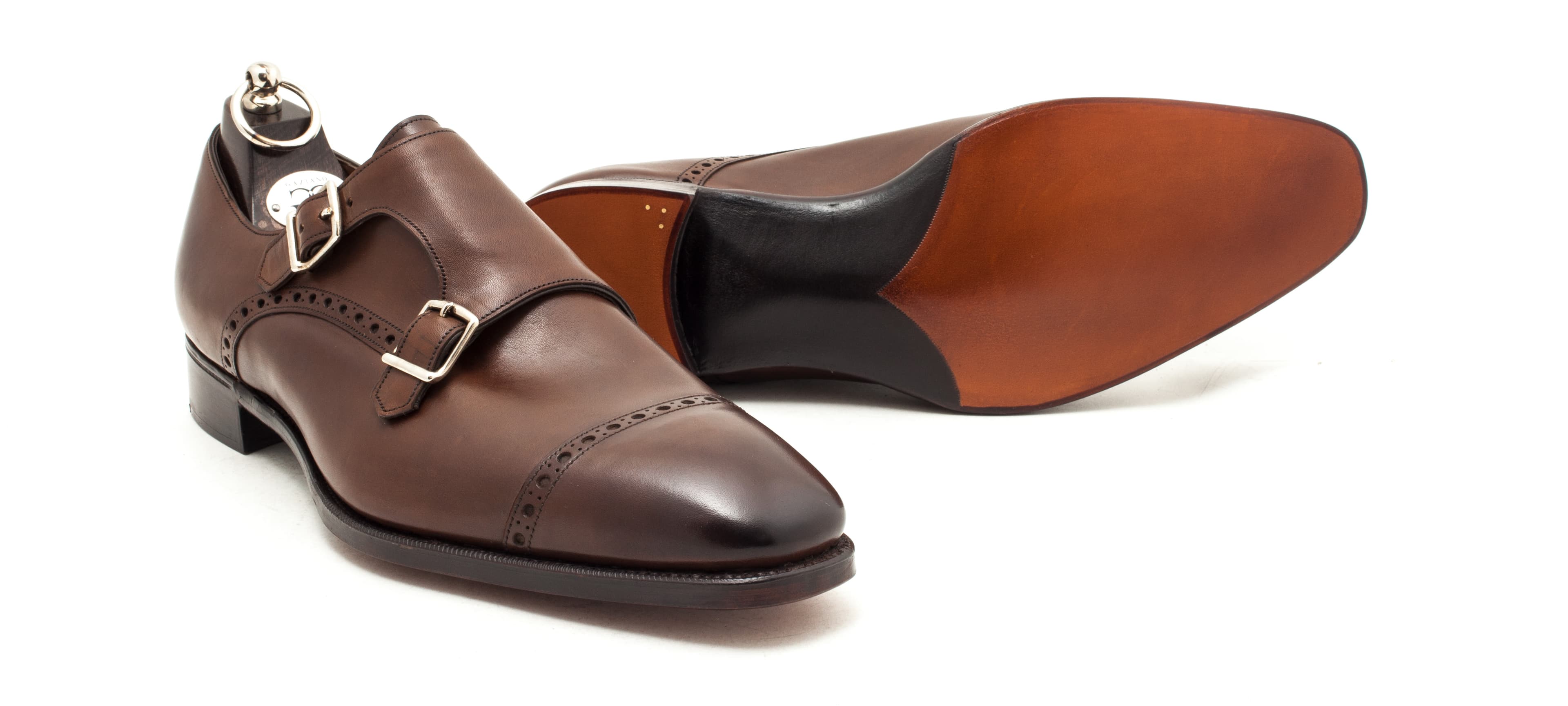 Pictured in vintage oak calfskin on the TG73 last with single leather soles.