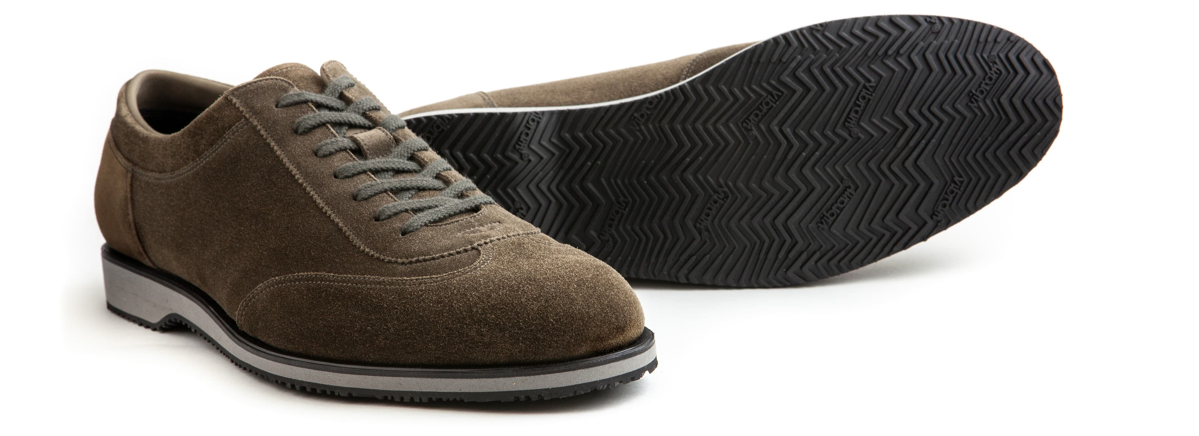 They have a supple suede upper, full leather insole, and rubber soles. Best of all, since they are hand welted, they can be recrafted like any dress shoe.