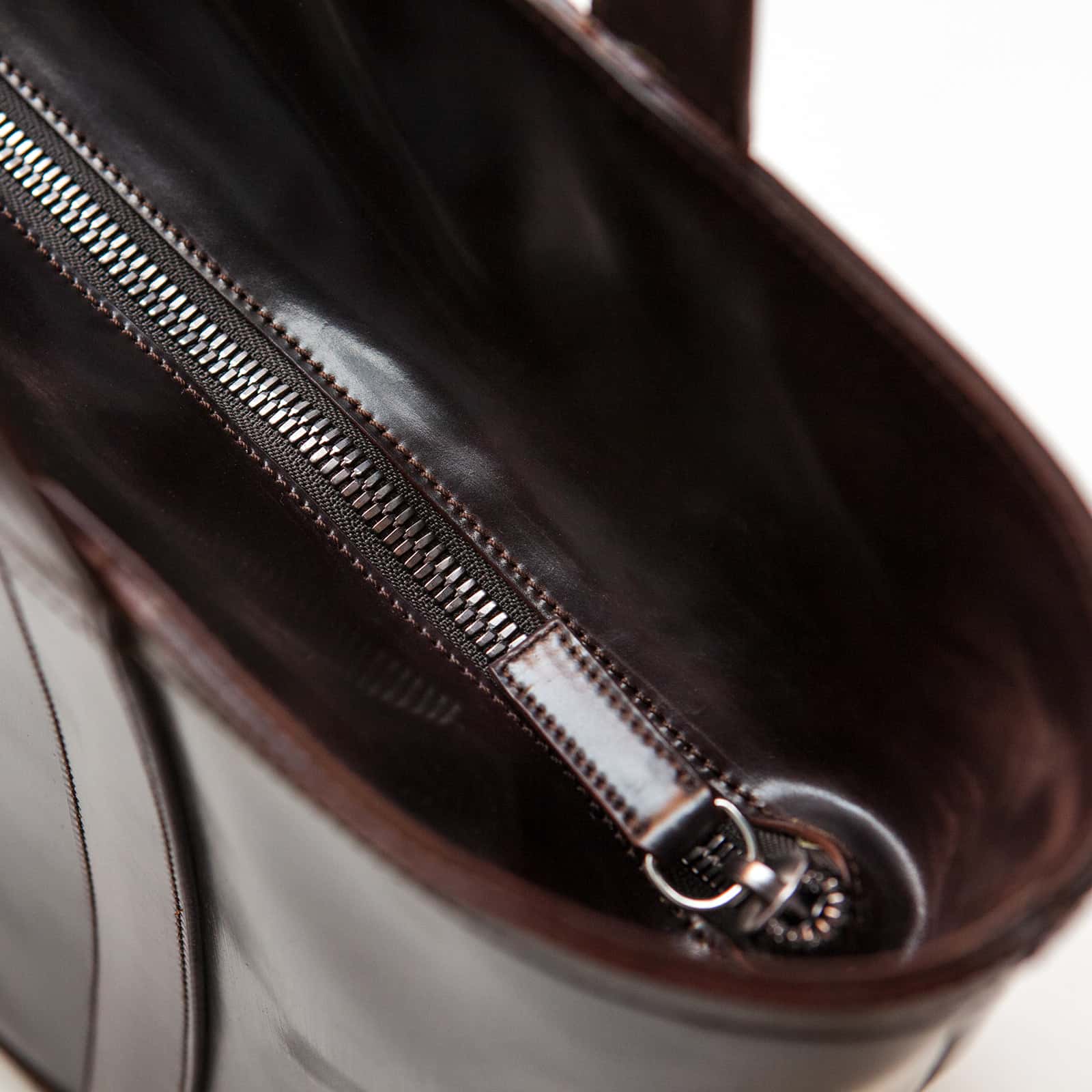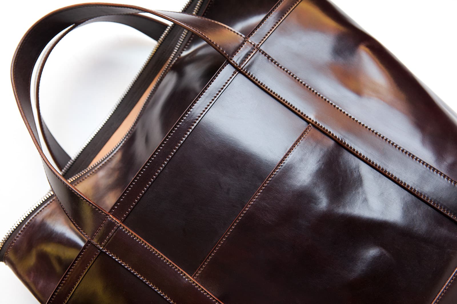 We’ve partnered with Kreis to make this unique tote bag in shell cordovan. We’ve done it in the perfect size for everyday use, and it has all the benefits of shell cordovan: durability, longevity, and good looks. This is an heirloom piece meant to be passed down among generations. The bag can be made with rolled handles, as seen in our duffel bag. Contrasting stitching is also available.
