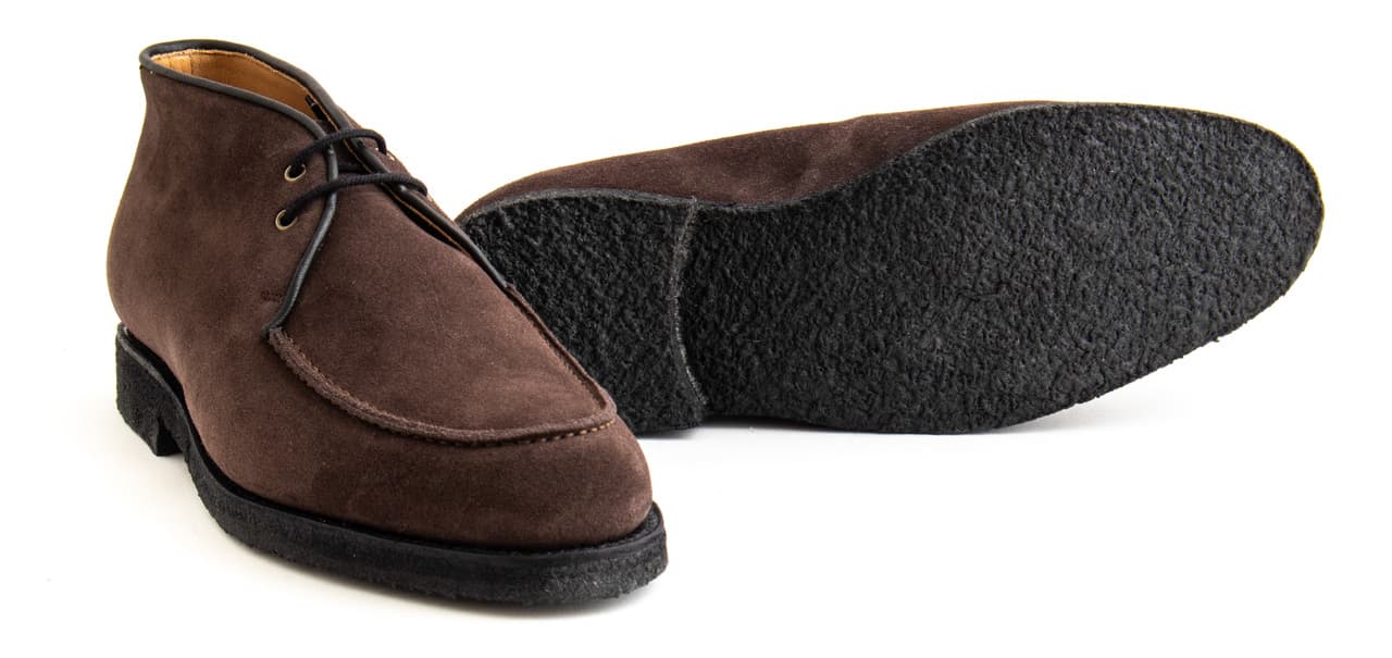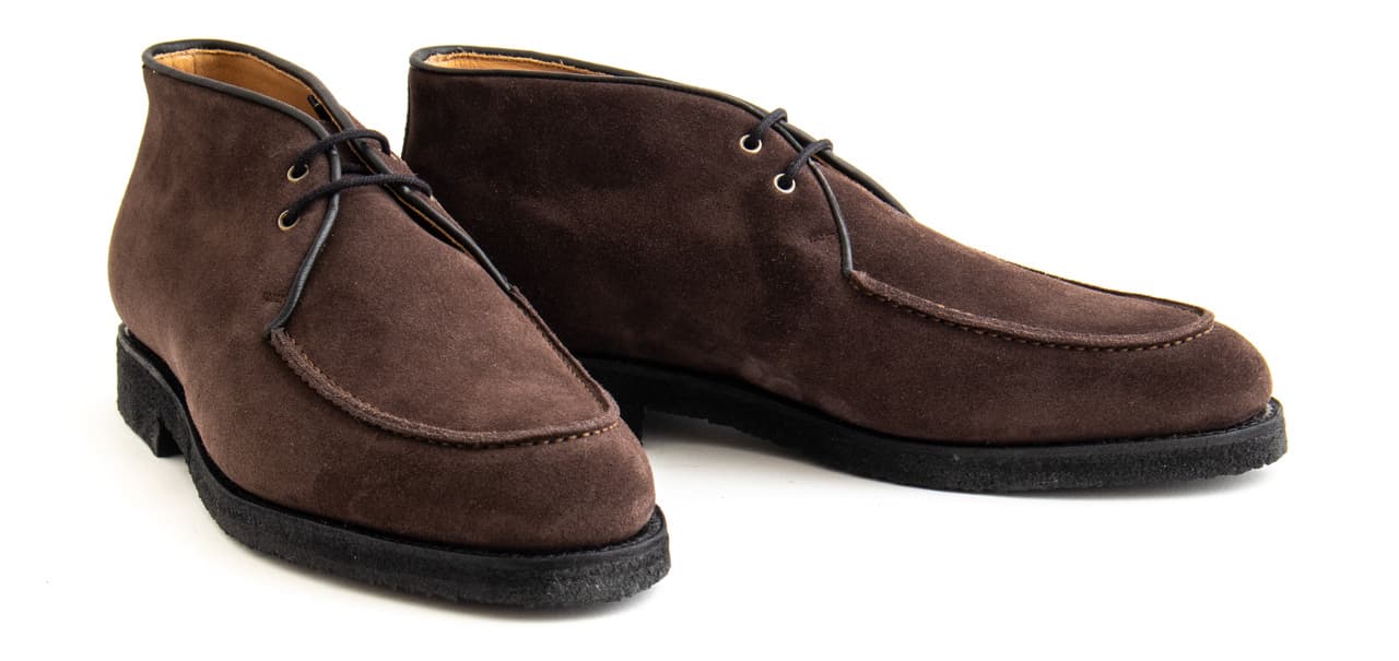Majordome’s M69 Apron Chukka is a classic two-eyelet chukka. Made in nubuck on crepe soles, they’re a comfortable, easy-wearing boot that will swaddle your foot.