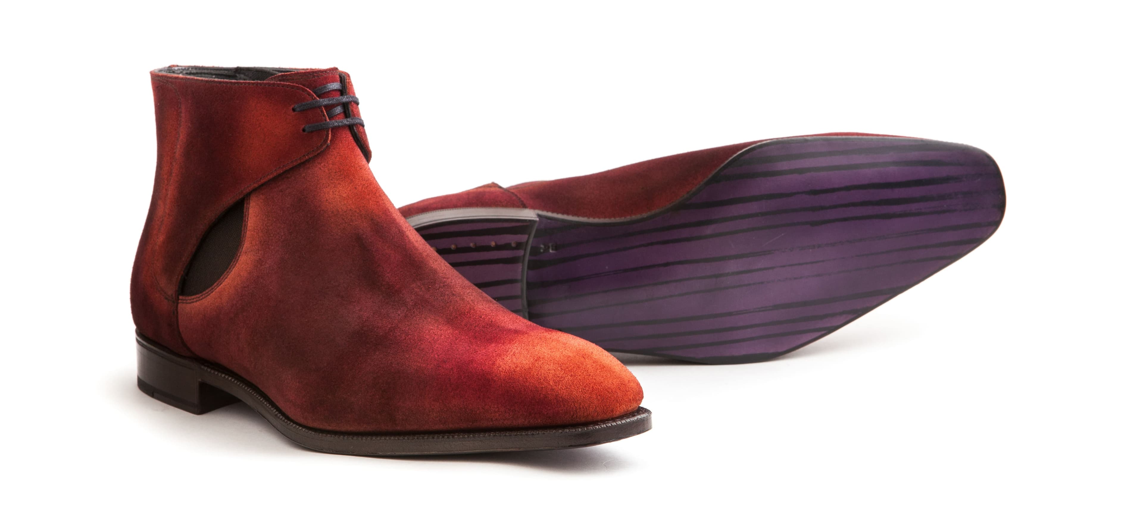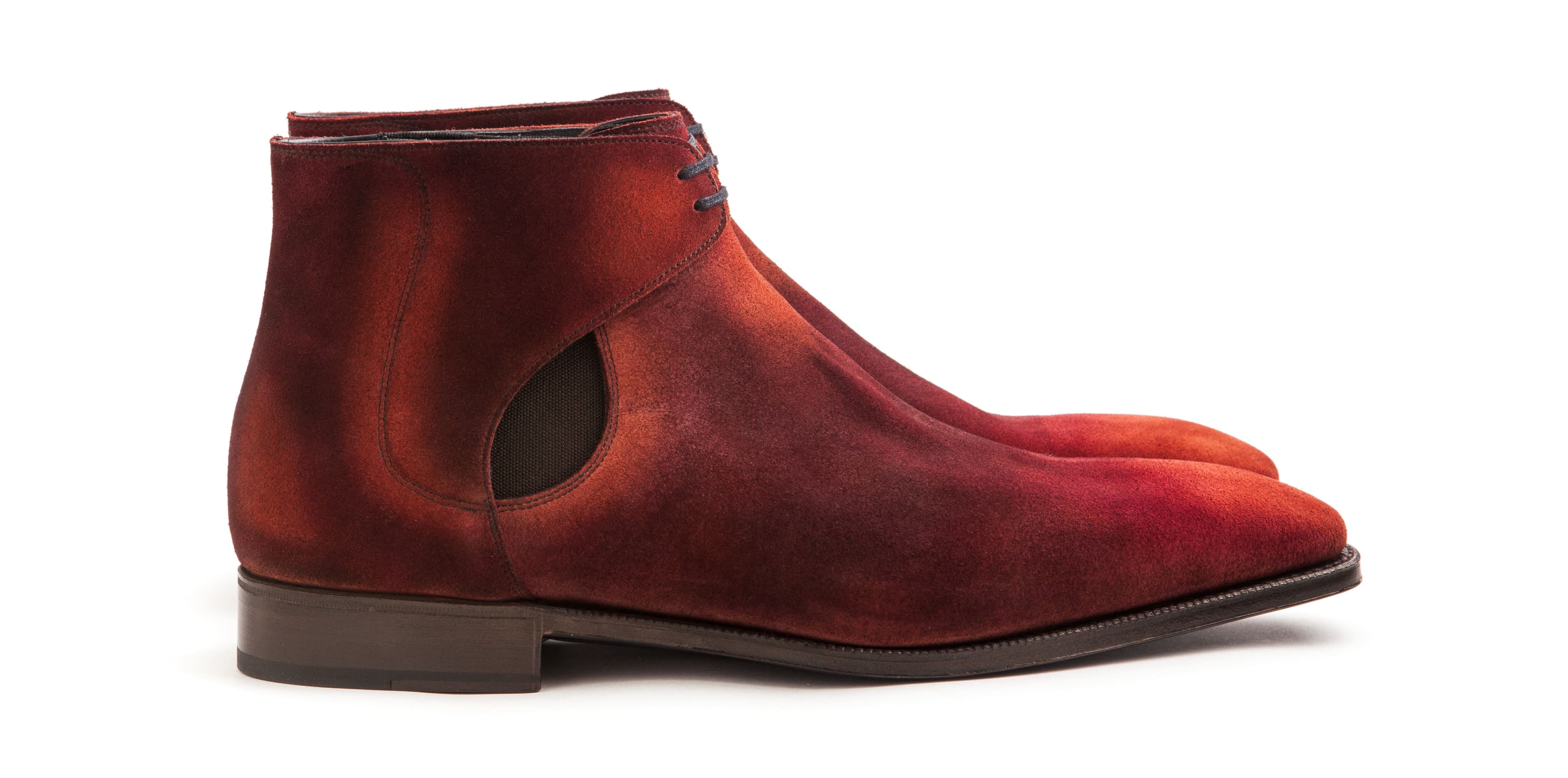 The Decon is one of Norman Vilalta’s most iconic styles. It’s a reinterpretation of the classic Chelsea boot, made with the open lacing quarters of a chukka boot. Its patina is applied by hand in Norman’s workshop in Barcelona.