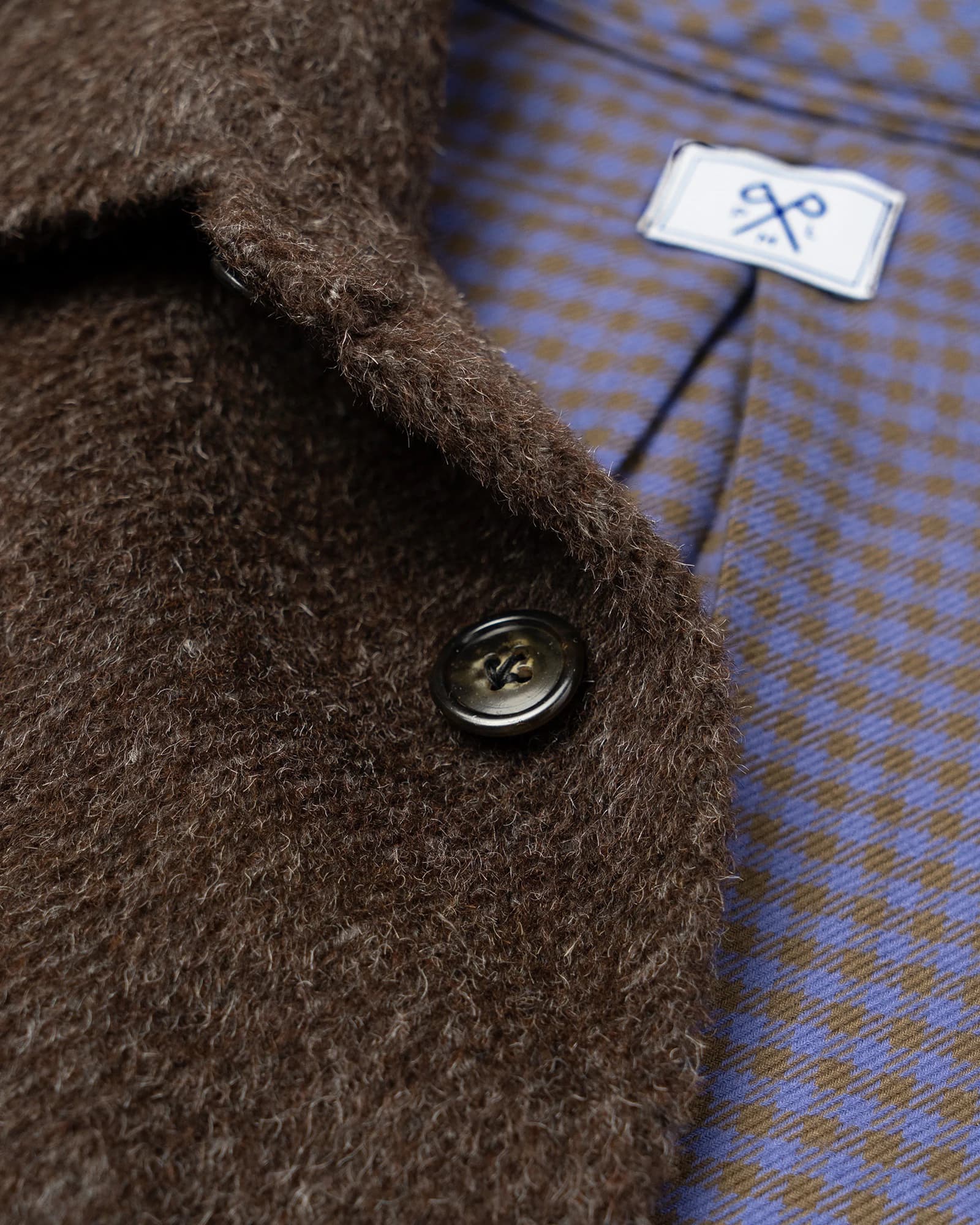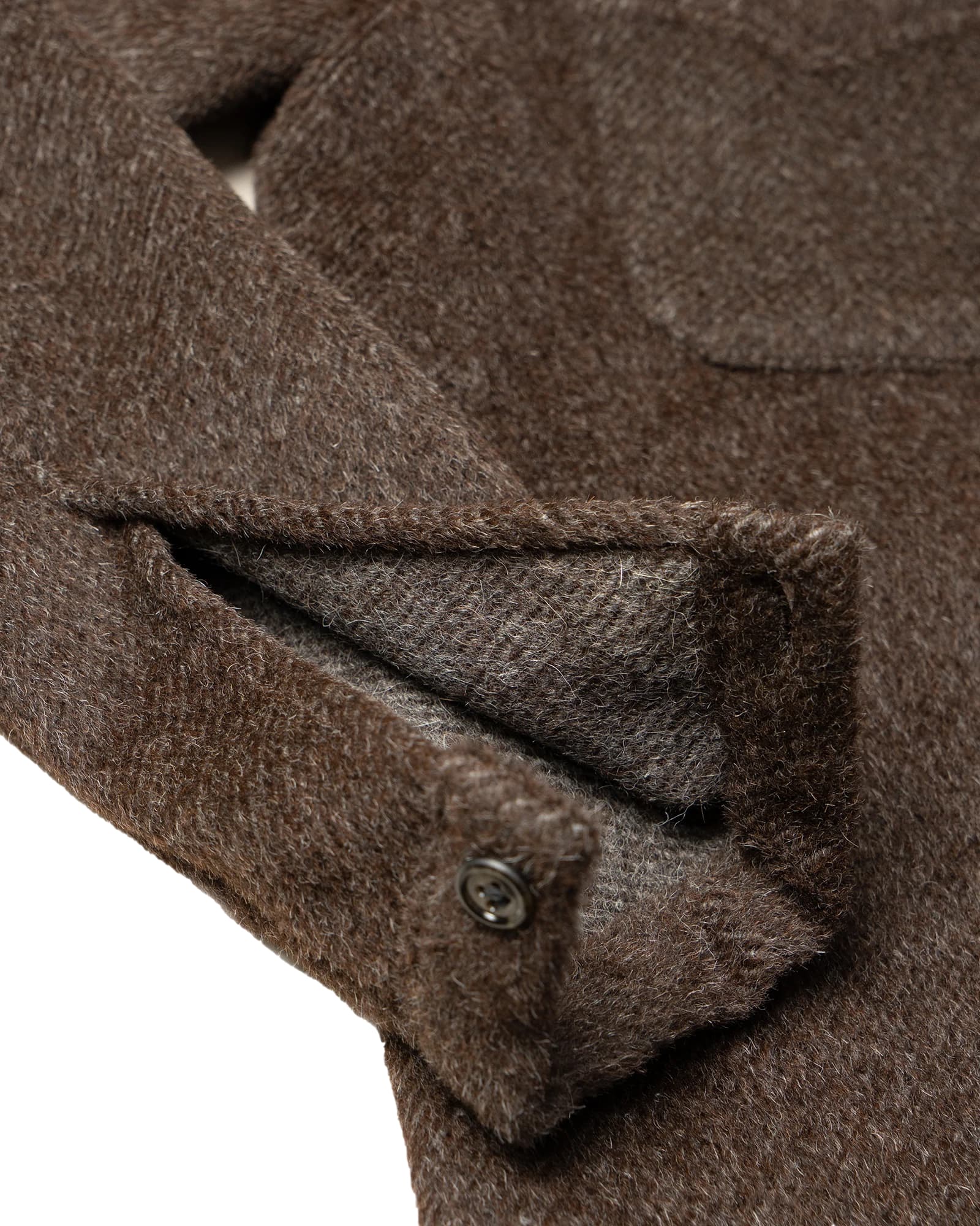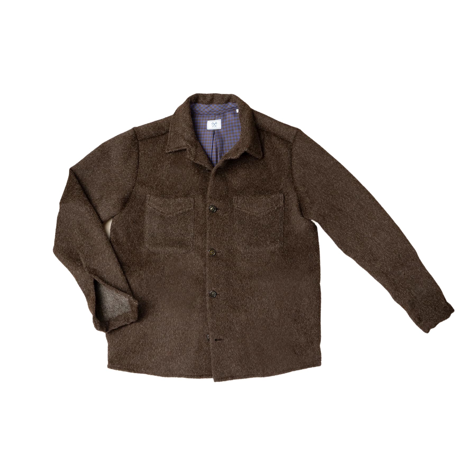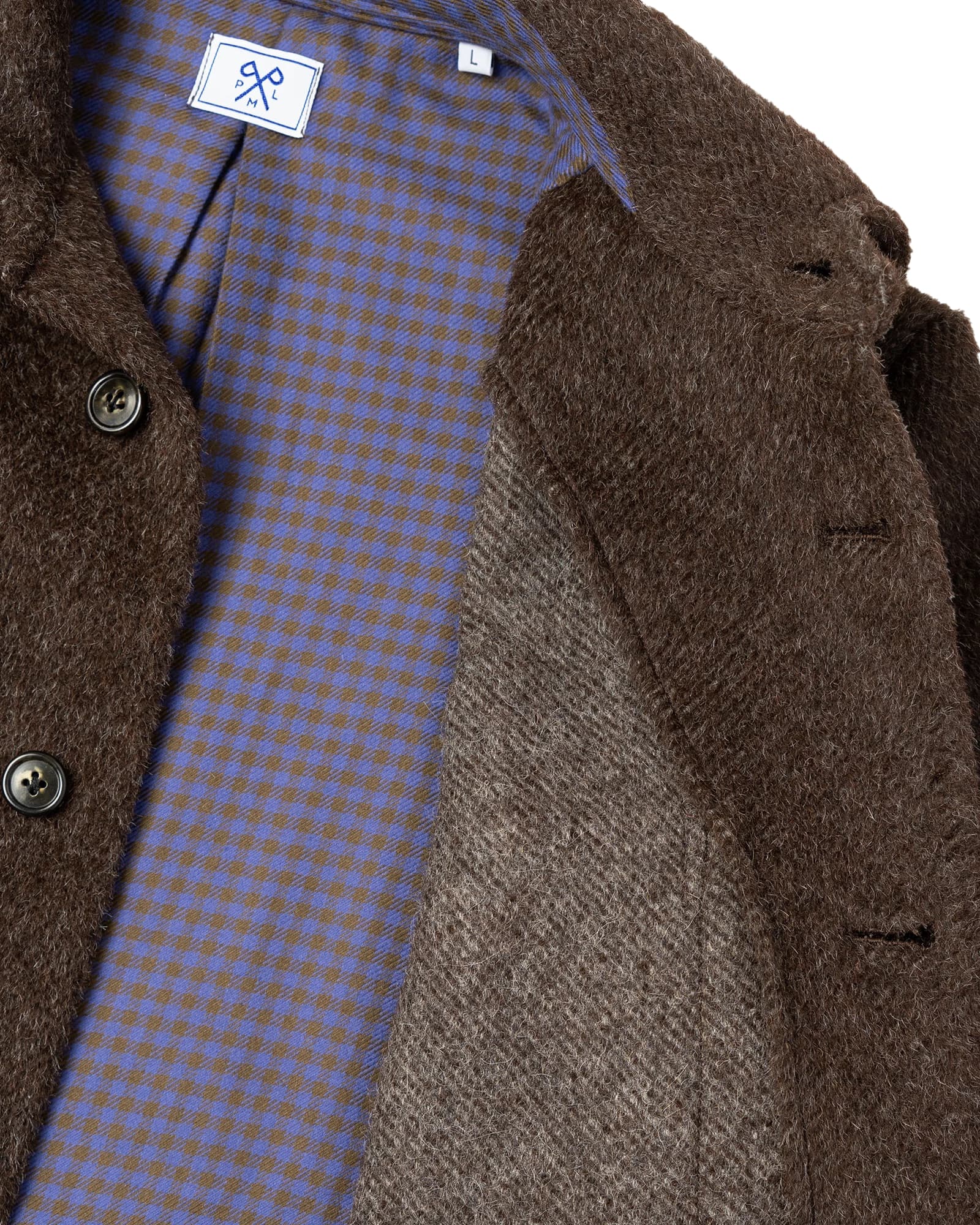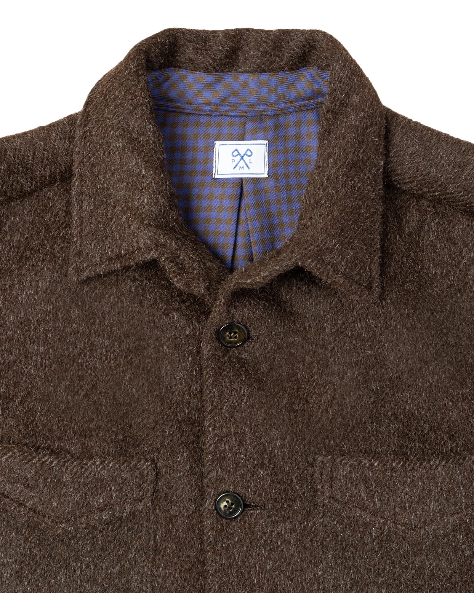 PML’s overshirt is made from heavyweight alpaca and lined with Thomas Mason flannel. It features two chest pockets, two hip pockets, and vintage horn buttons.