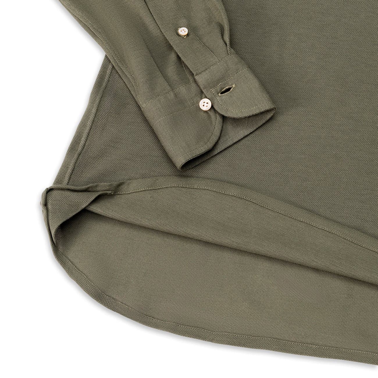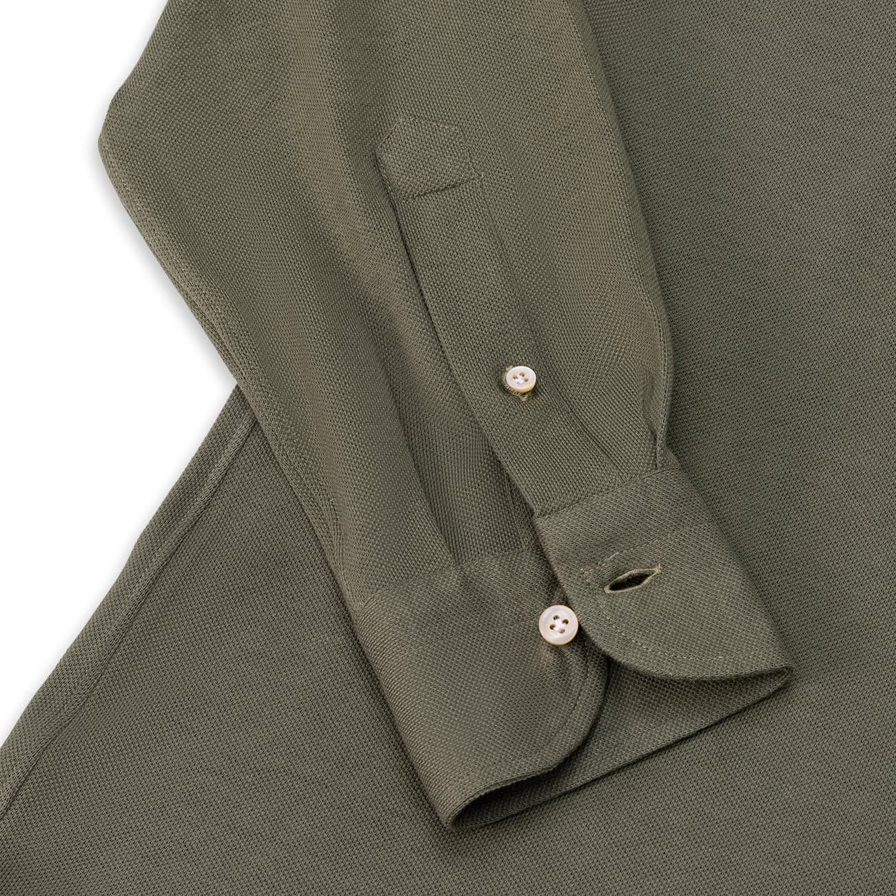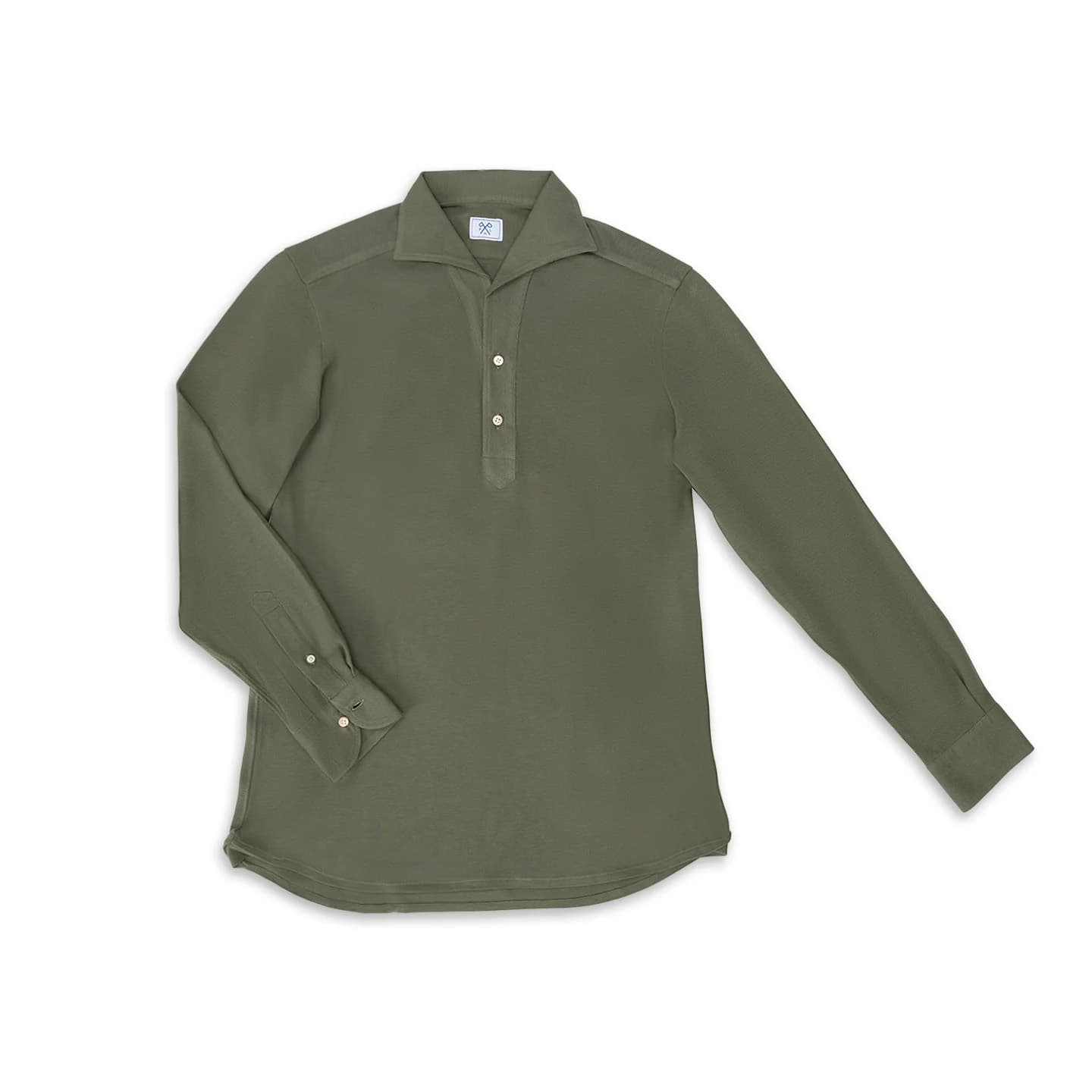 This cotton polo has a collar made with a single piece of cotton, which gives it a generous, elegant roll. It’s the perfect piece for summer, to be worn with jeans, chinos, or with a cotton suit.