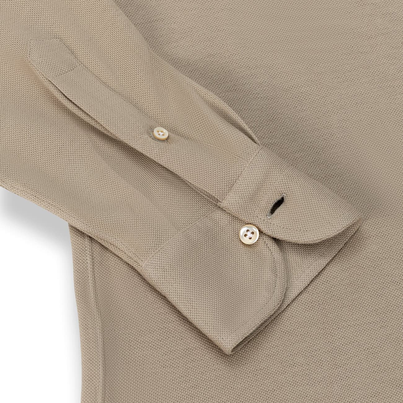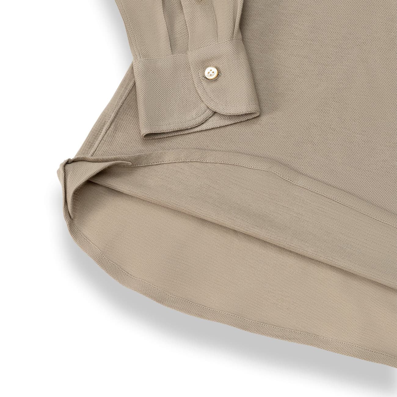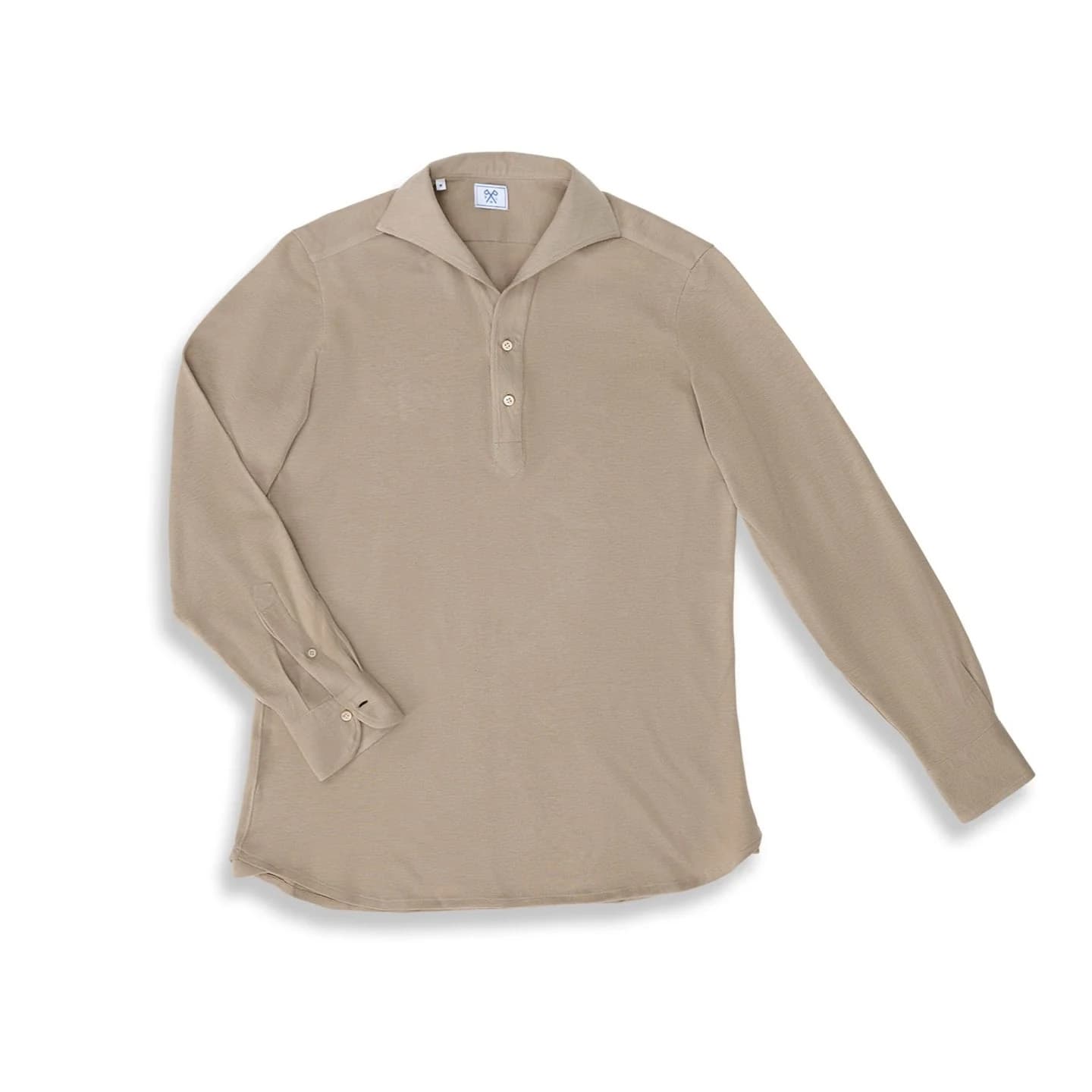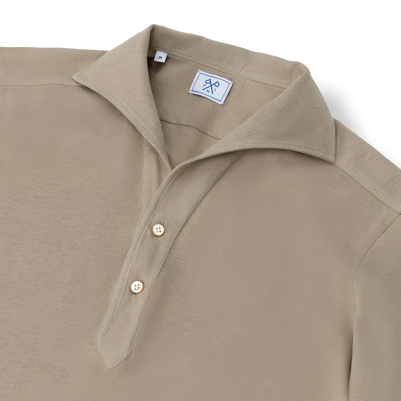 This cotton polo has a collar made with a single piece of cotton, which gives it a generous, elegant roll. It’s the perfect piece for summer, to be worn with jeans, chinos, or with a cotton suit.