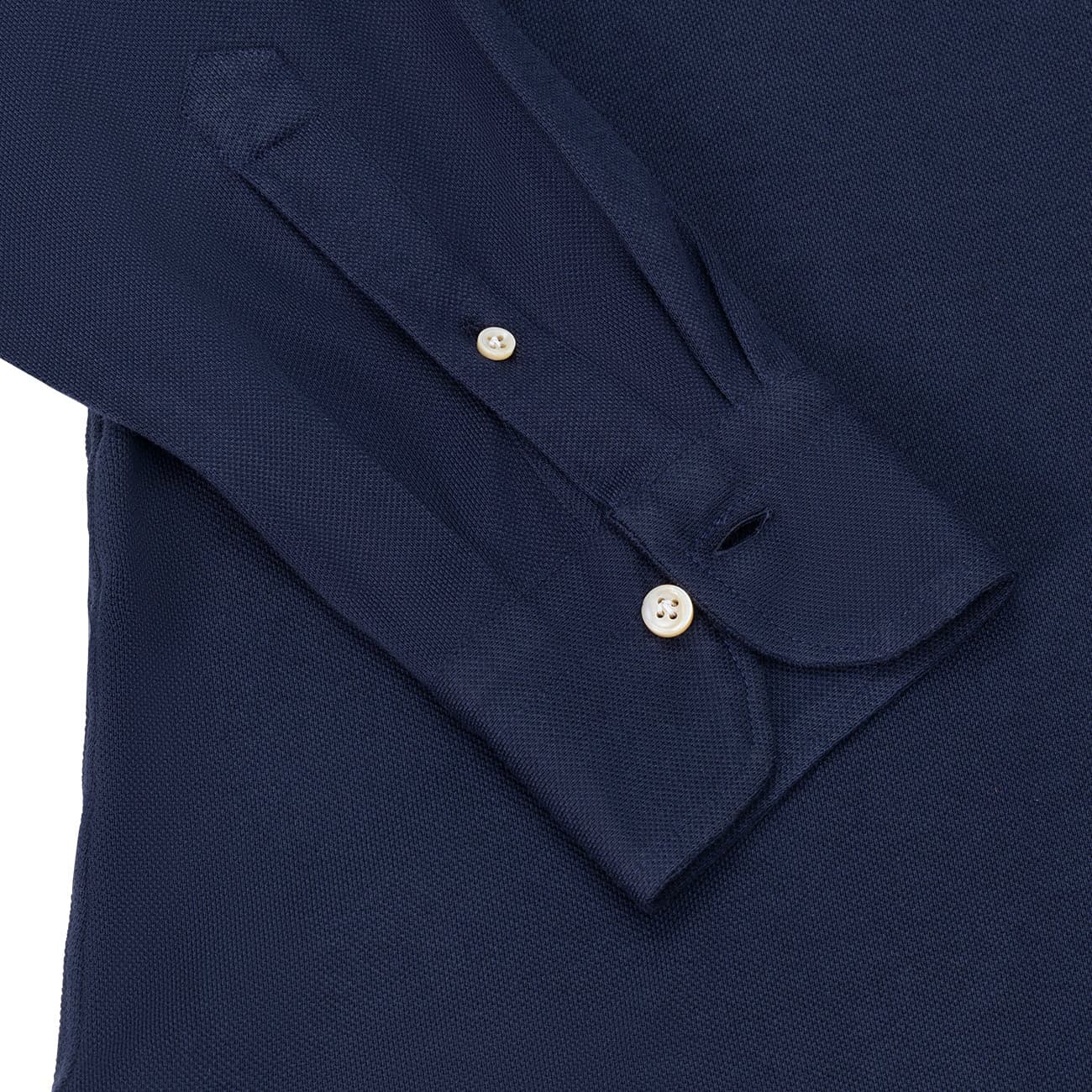This cotton polo has a collar made with a single piece of cotton, which gives it a generous, elegant roll. It’s the perfect piece for summer, to be worn with jeans, chinos, or with a cotton suit.