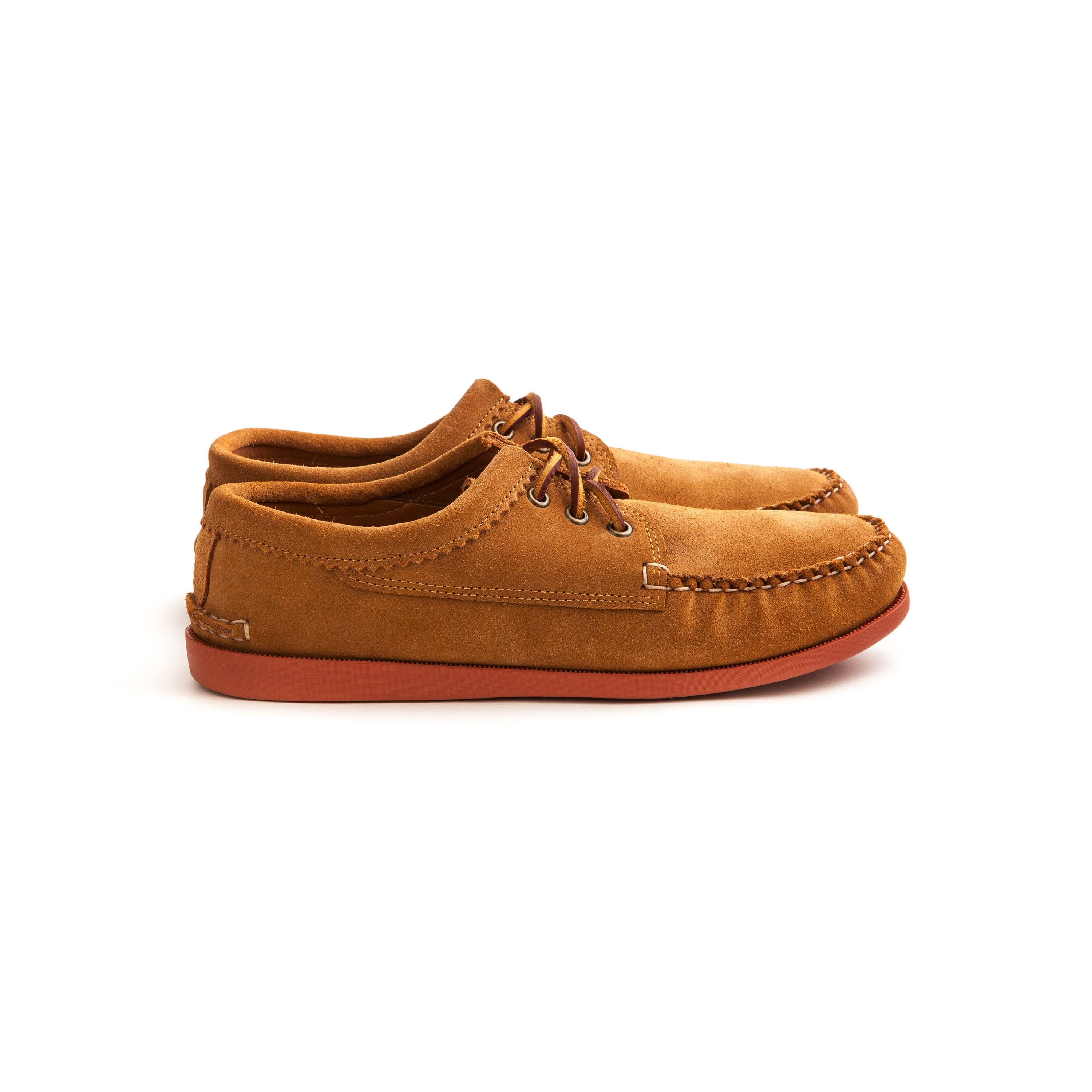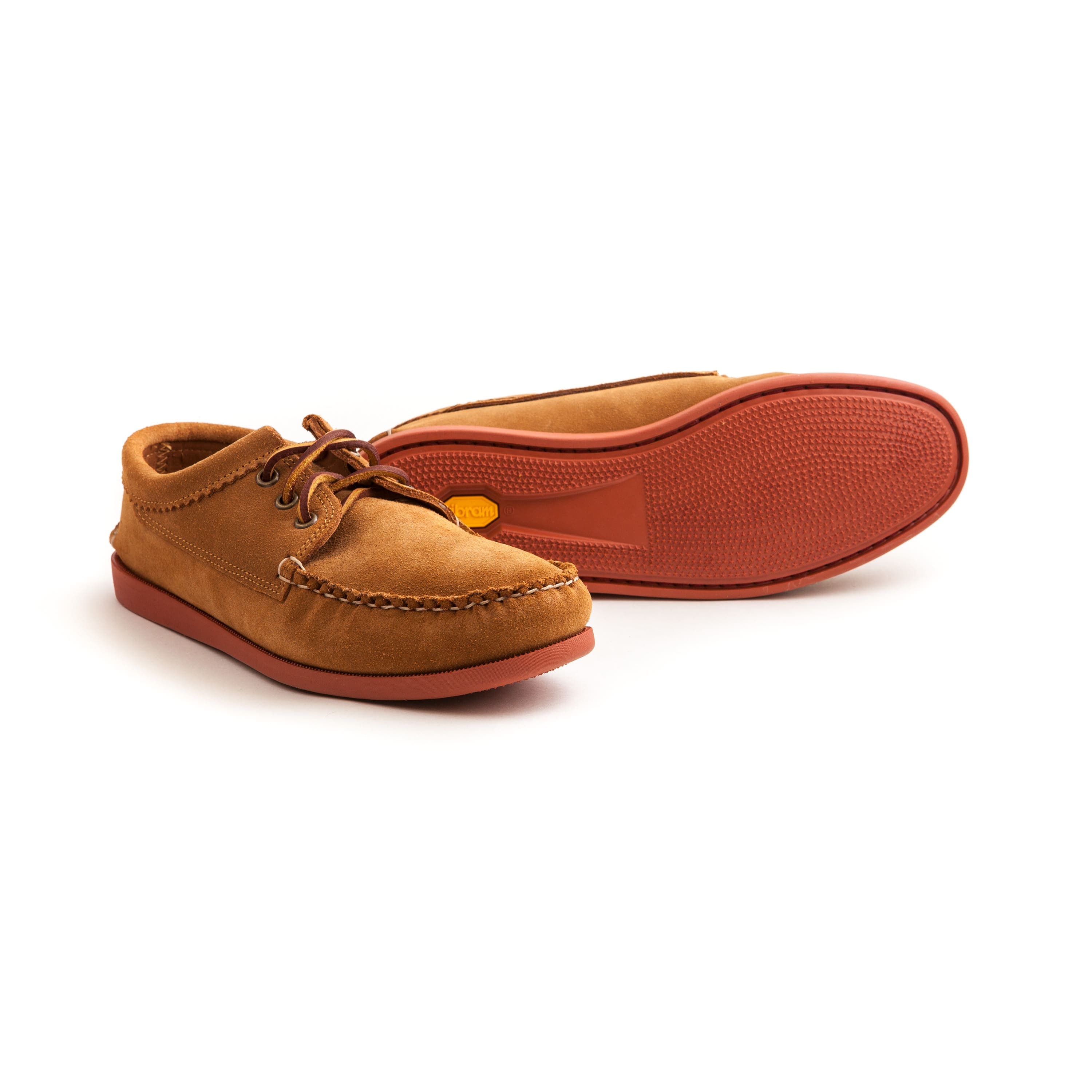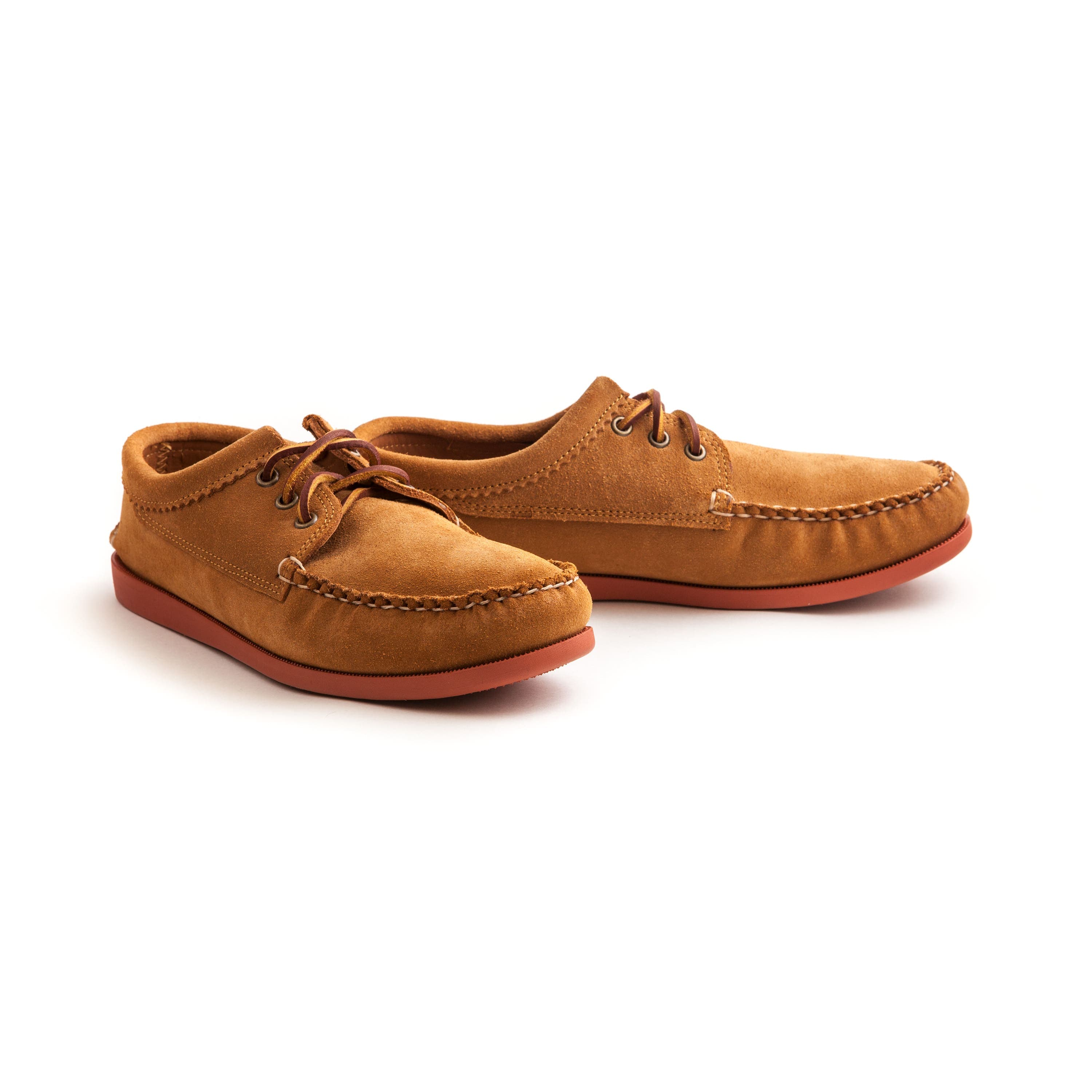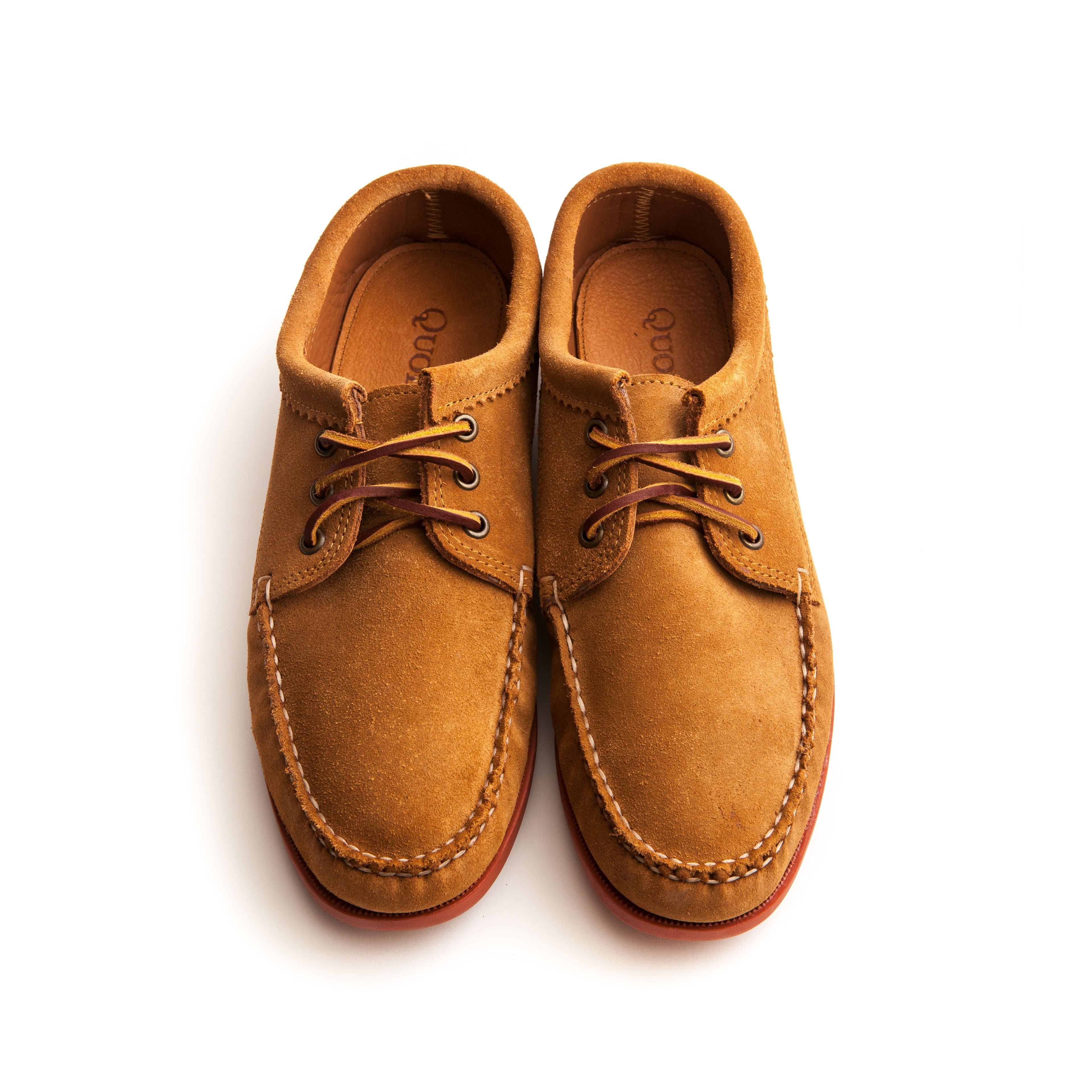 Quoddy’s Blucher is a durable and casual shoe for versat­ile and comfort­able wear. Made in toast­suede with brick camp soles, they are perfect for jeans, khakis, or shorts in the summer.