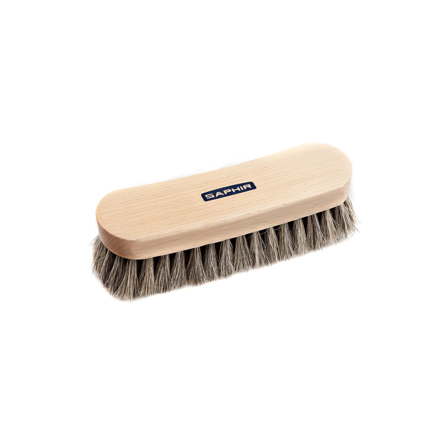 A horse hair brush is the most important tool for polishing your shoes. It is essential for buffing after polish application. These medium brushes are of the highest quality, made by Saphir. They cover a large area and are made from densely packed horse hair.