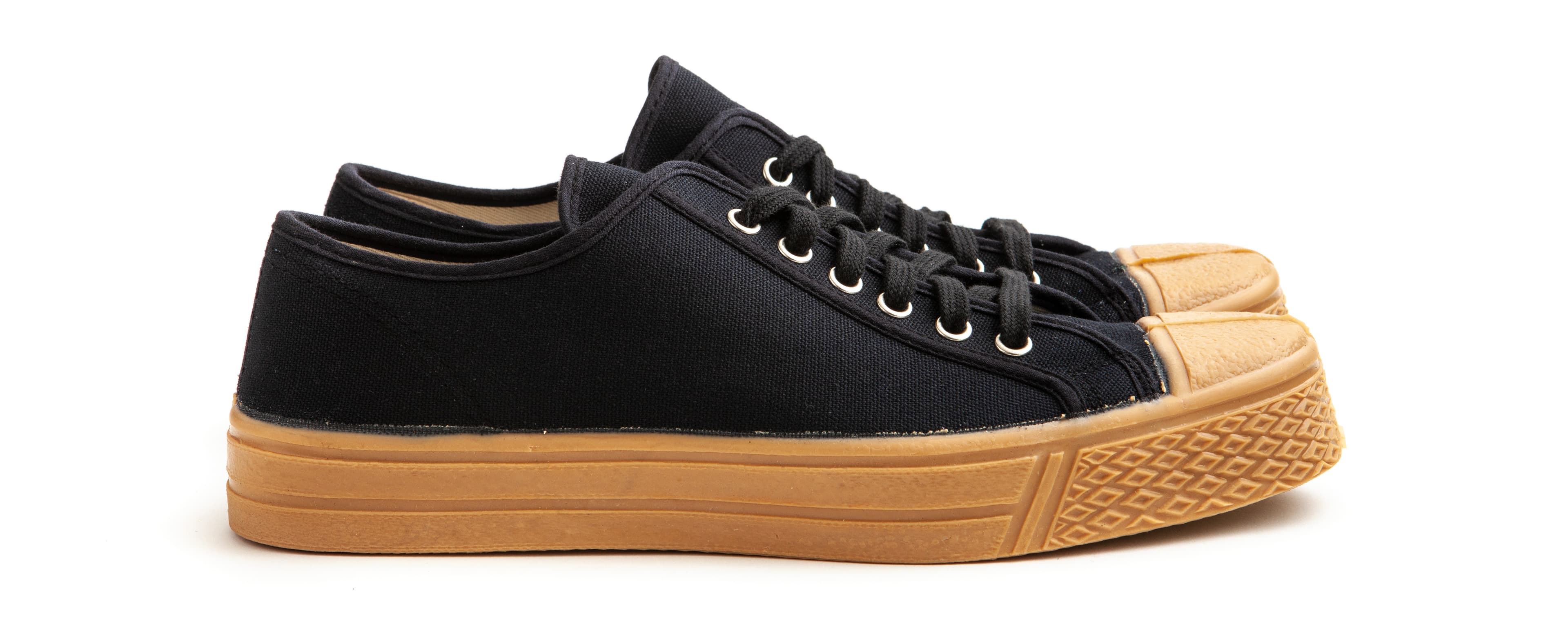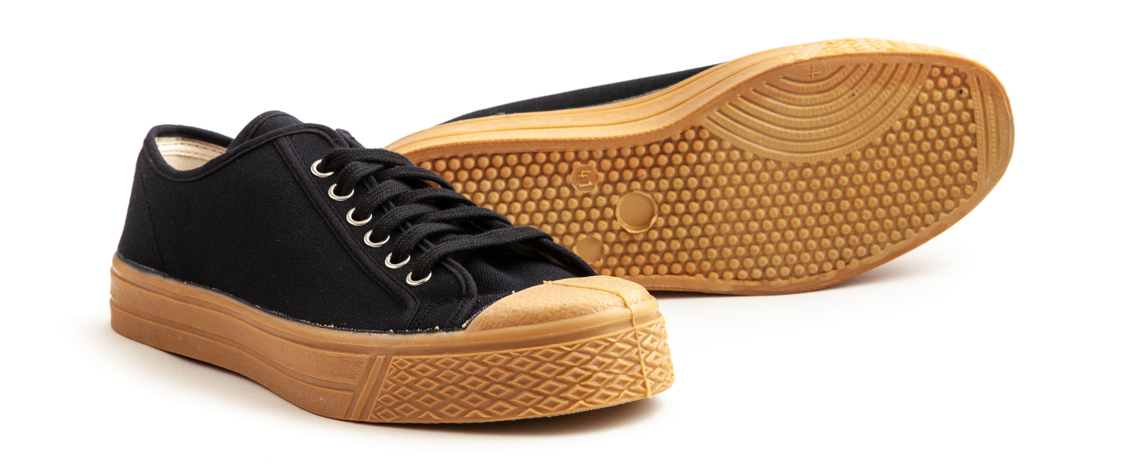2019 saw the relaunch of the iconic brand with the reissue of the classic military sneaker. Made in one of the oldest rubber factories in Europe, the sneakers feature a vulcanised sole, which makes them extremely durable and flexible.