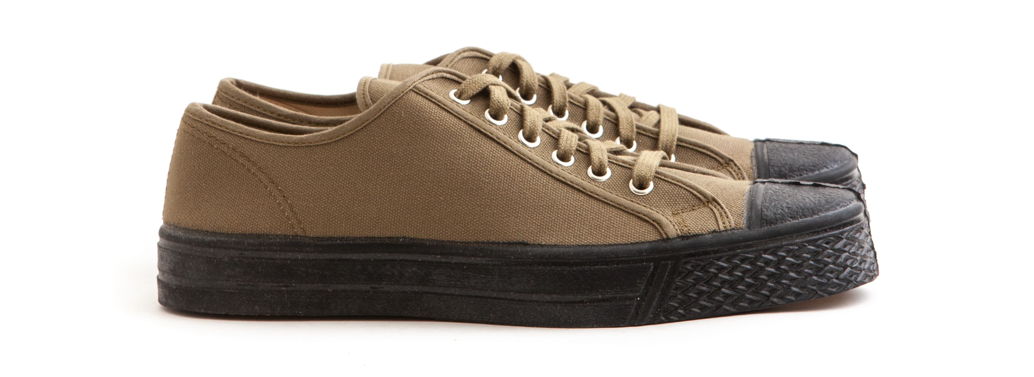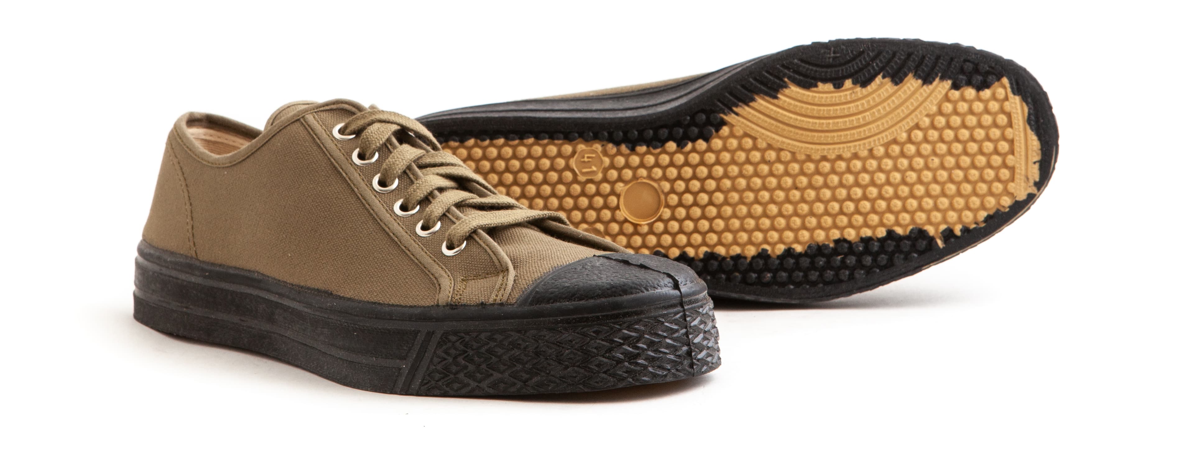 2019 saw the relaunch of the iconic brand with the reissue of the classic military sneaker. Made in one of the oldest rubber factories in Europe, the sneakers feature a vulcanised sole, which makes them extremely durable and flexible.