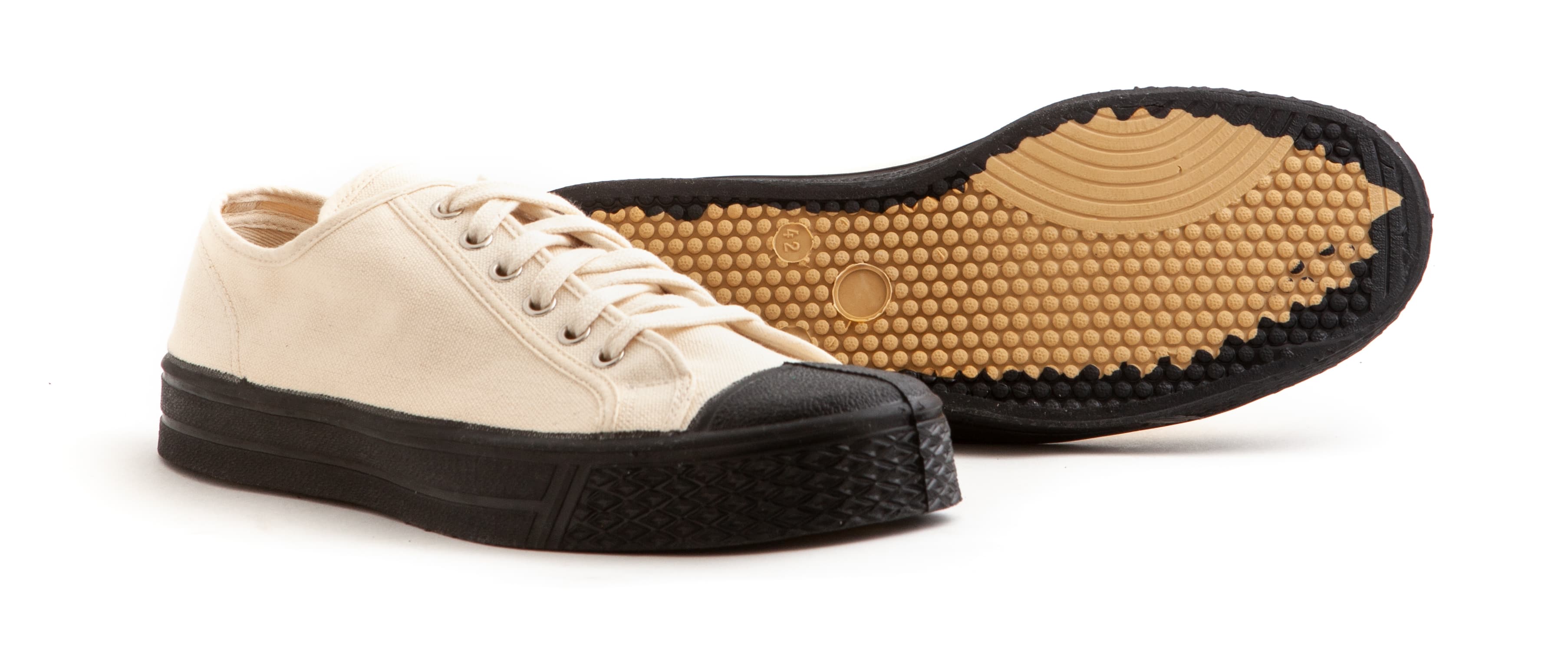 2019 saw the relaunch of the iconic brand with the reissue of the classic military sneaker. Made in one of the oldest rubber factories in Europe, the sneakers feature a vulcanised sole, which makes them extremely durable and flexible.
