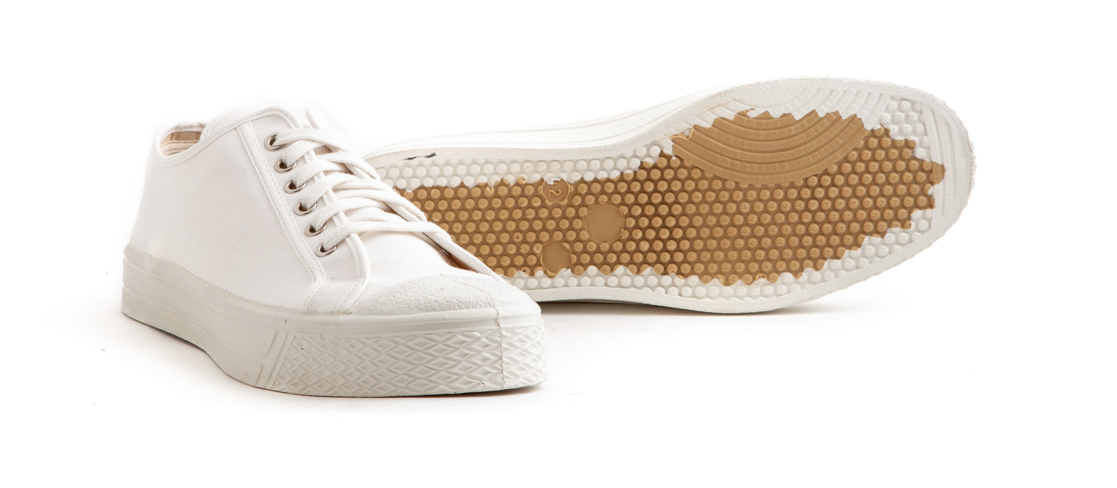2019 saw the relaunch of the iconic brand with the reissue of the classic military sneaker. Made in one of the oldest rubber factories in Europe, the sneakers feature a vulcanised sole, which makes them extremely durable and flexible.