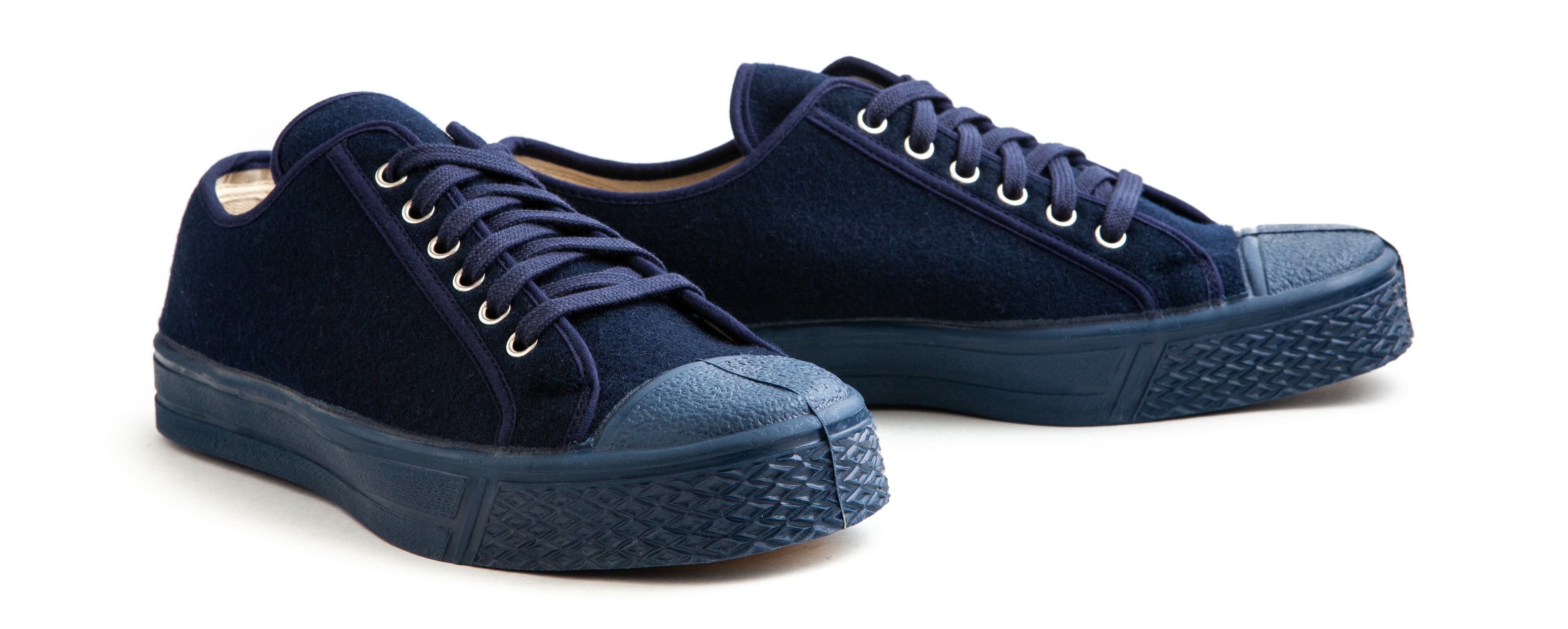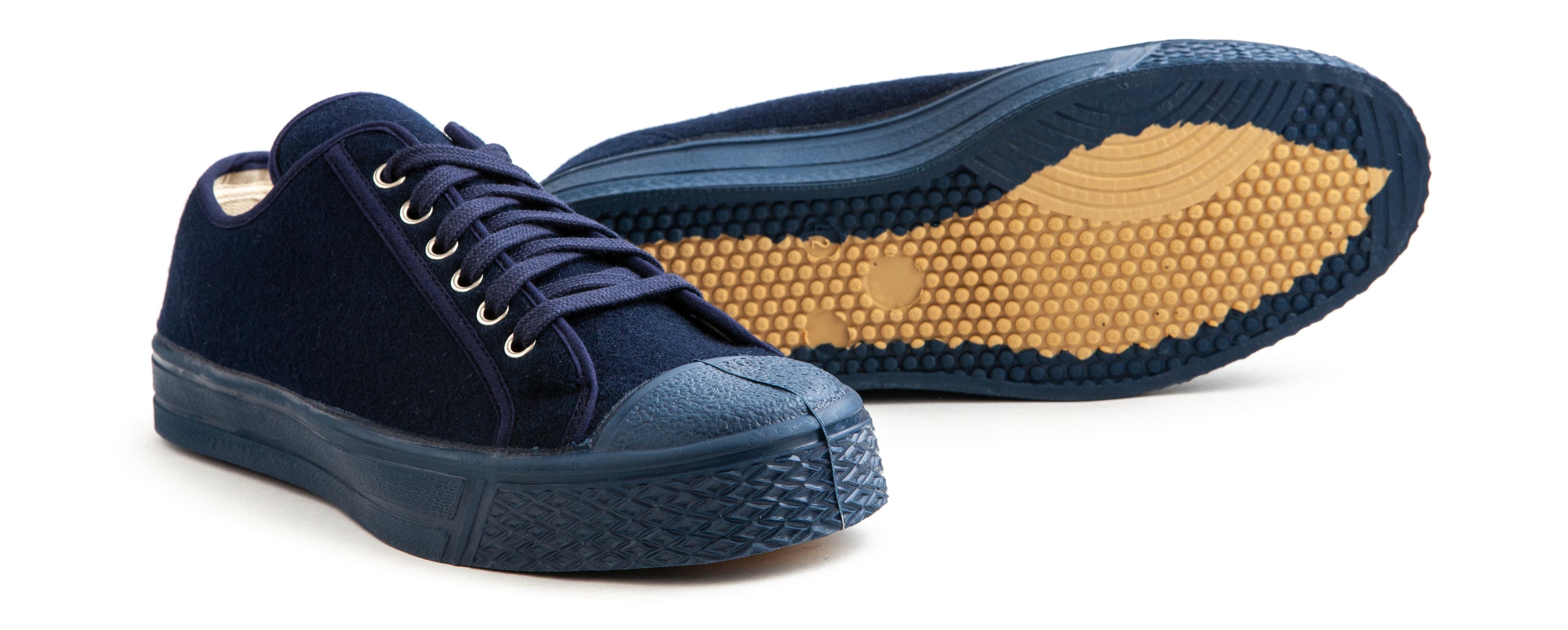 2019 saw the relaunch of the iconic brand with the reissue of the classic military sneaker. Made in one of the oldest rubber factories in Europe, the sneakers feature a vulcanised sole, which makes them extremely durable and flexible.