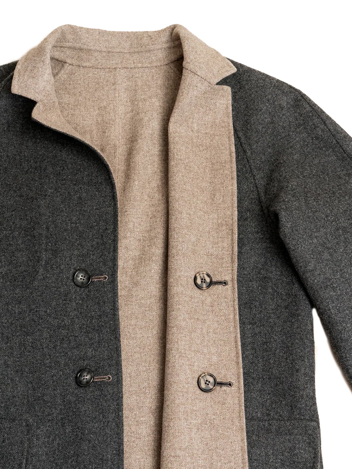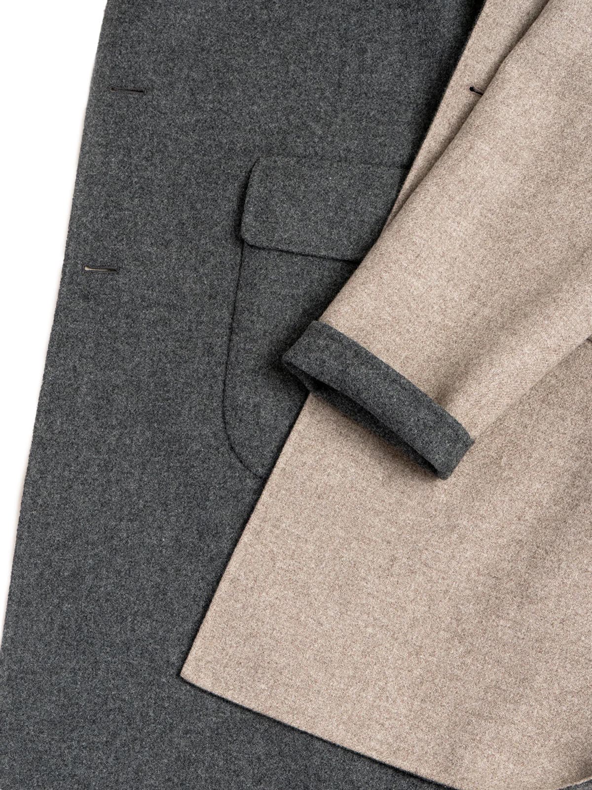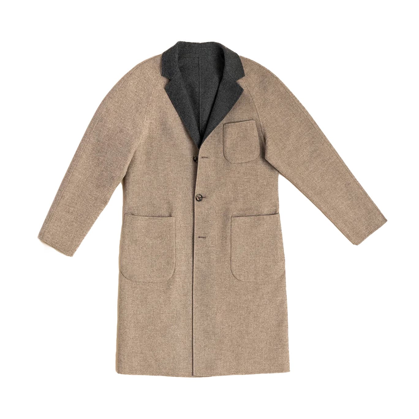 PML’s single-breasted Weekend overcoat is unlined and unstructured. It’s the perfect piece for short trips, with its light weight and reversibility. Made in Italy from 100% wool, with real horn buttons.